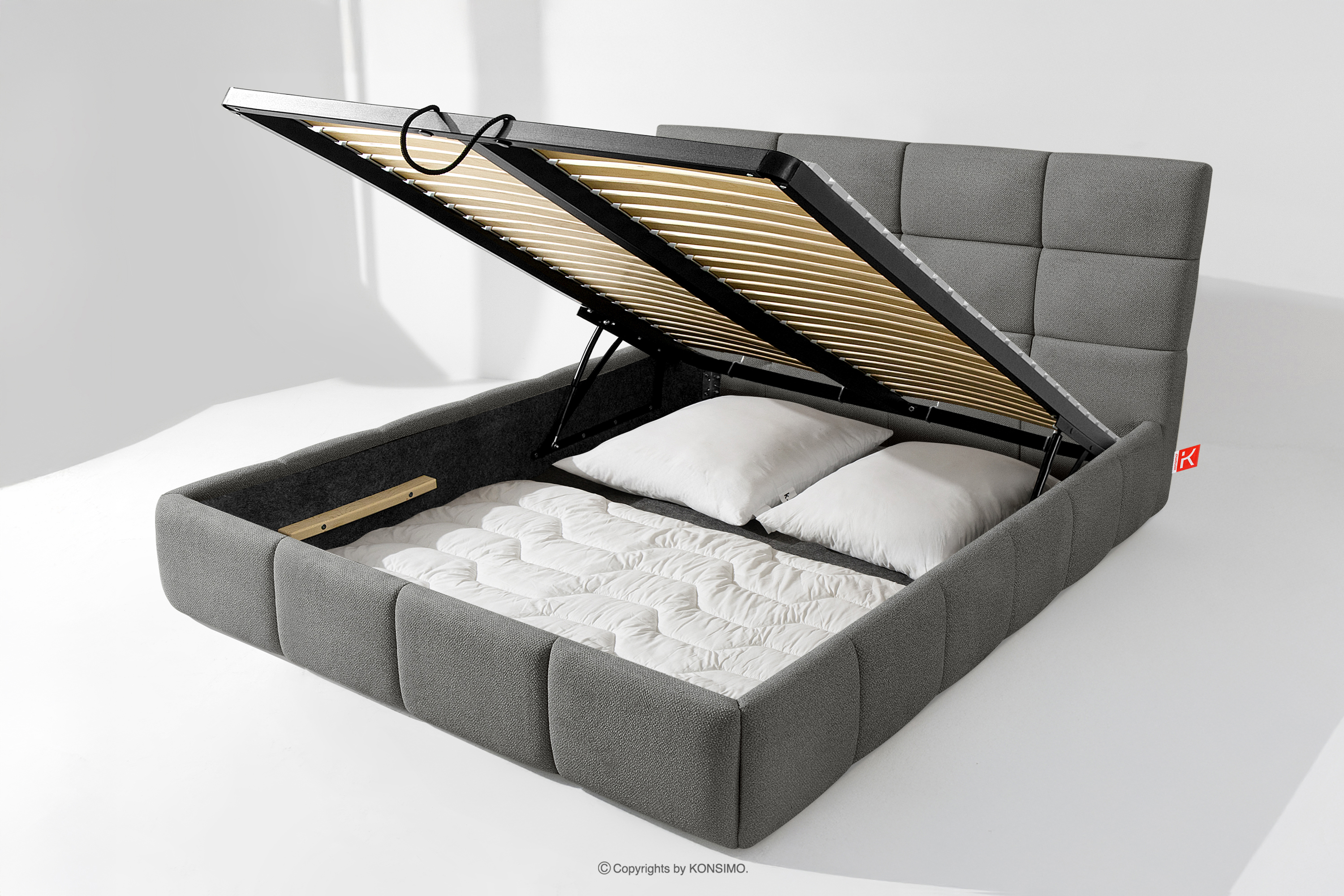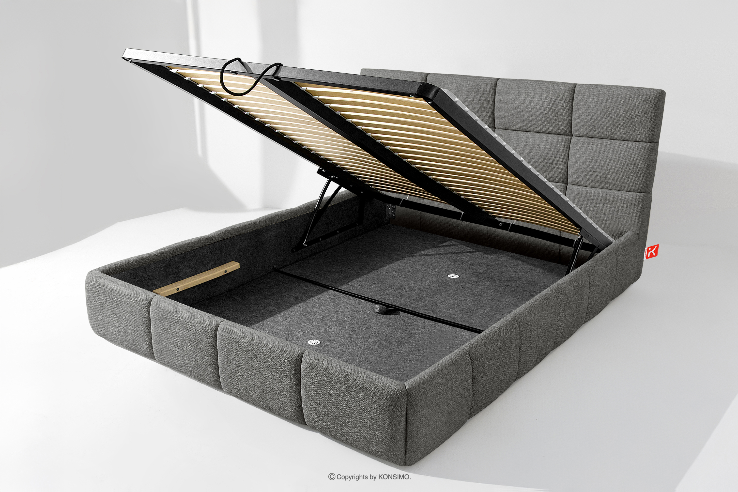 Ďalším komfortom je pohodlný kontajner na lôžkoviny, ktorý sa otvára vďaka moderným plynovým fľašiam - bez námahy a plne automaticky. Toto praktické riešenie umožňuje rýchly prístup k uloženej posteľnej bielizni bez nutnosti ručného zdvíhania ťažkého matraca.