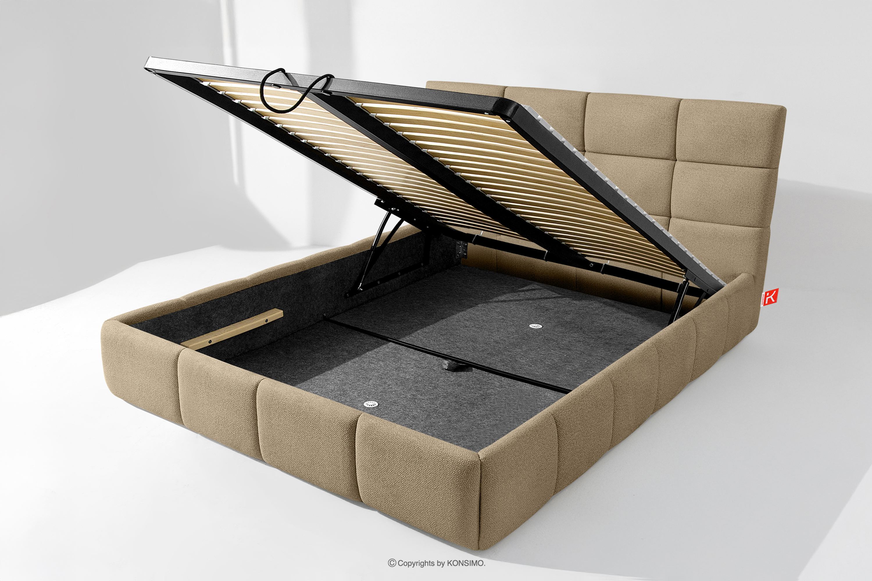 Ďalším komfortom je pohodlný kontajner na lôžkoviny, ktorý sa otvára vďaka moderným plynovým fľašiam - bez námahy a plne automaticky. Toto praktické riešenie umožňuje rýchly prístup k uloženej posteľnej bielizni bez nutnosti ručného zdvíhania ťažkého matraca.