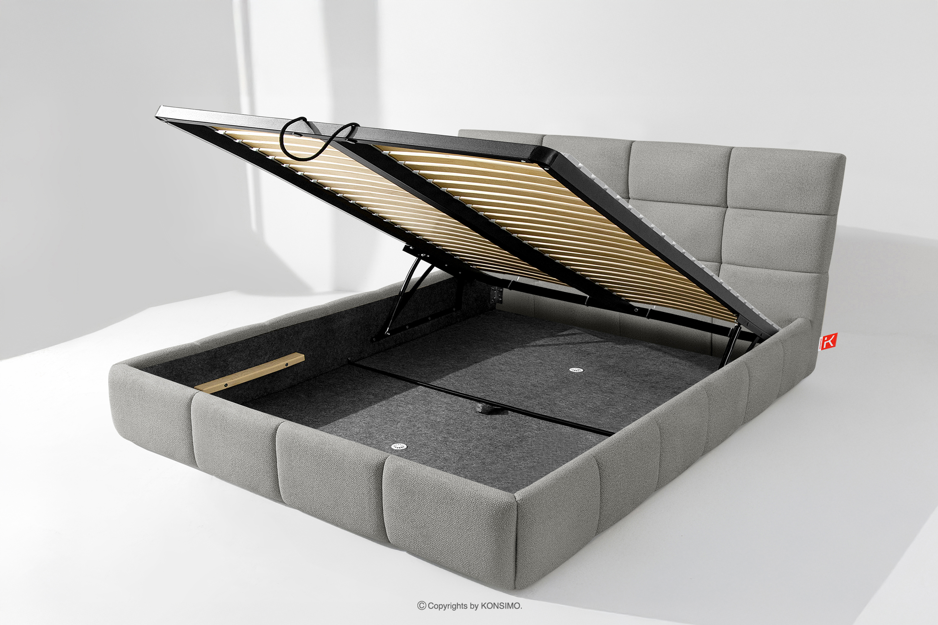 Ďalším komfortom je pohodlný kontajner na lôžkoviny, ktorý sa otvára vďaka moderným plynovým fľašiam - bez námahy a plne automaticky. Toto praktické riešenie umožňuje rýchly prístup k uloženej posteľnej bielizni bez nutnosti ručného zdvíhania ťažkého matraca.