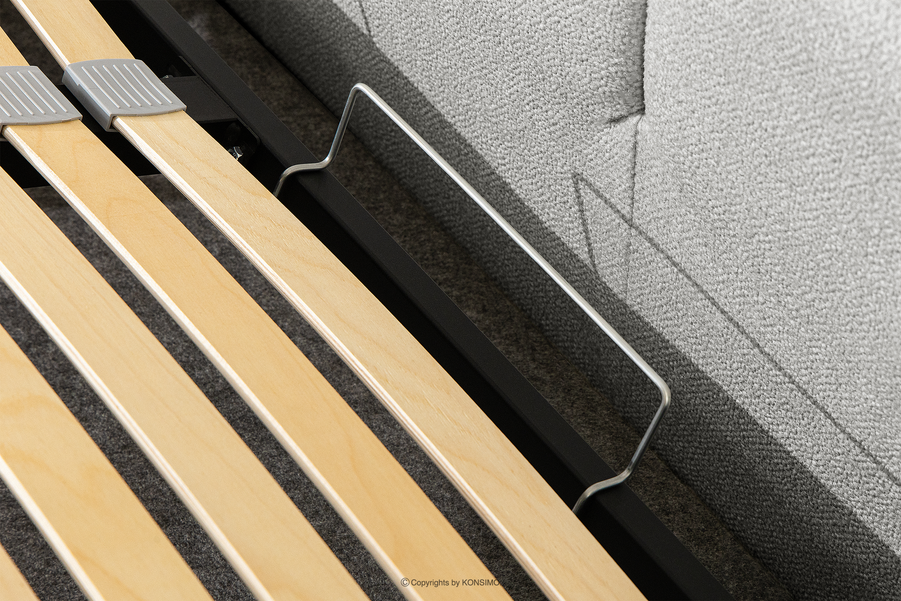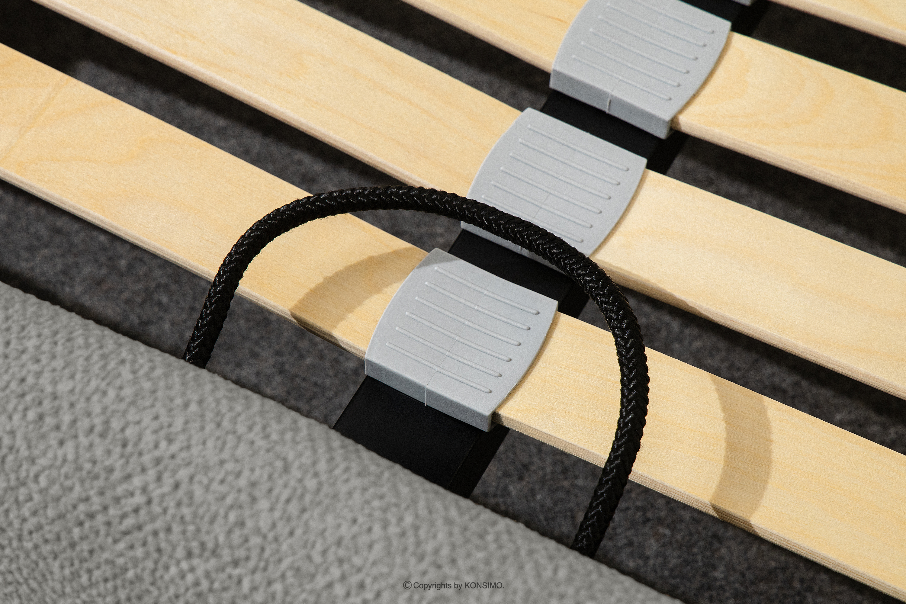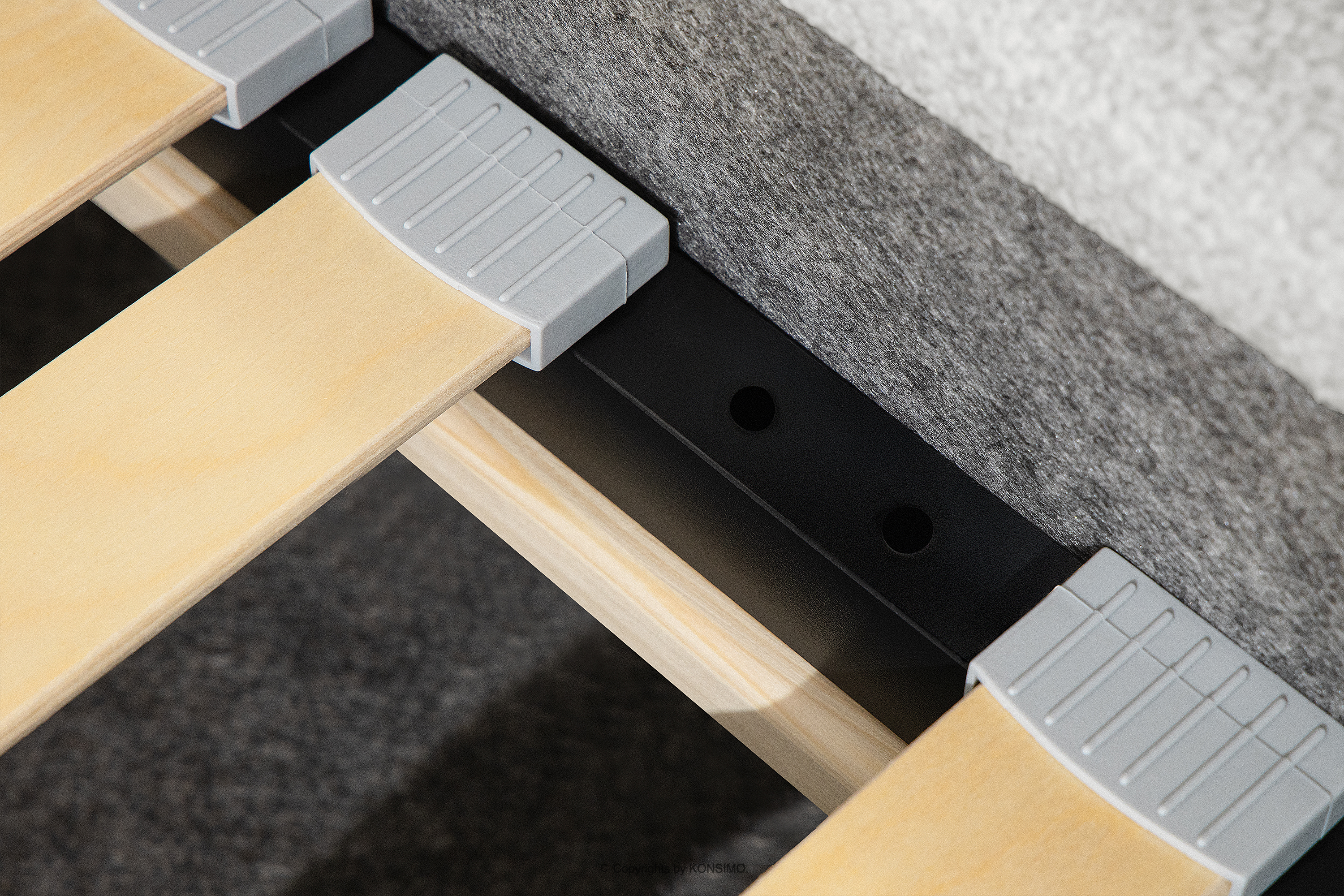 Posteľ s dĺžkou 180 cm v látke boucle gray spája minimalistický dizajn s maximálnym komfortom. Vďaka svojmu jedinečnému tvaru nielenže pozoruhodne vyzerá, ale ponúka aj pohodlie na najvyššej úrovni. Posteľ je vybavená pevným rámom z pružných drevených lamiel, ktoré poskytujú optimálnu oporu matracu a prispôsobujú sa prirodzeným pohybom tela. Používateľ má navyše možnosť prispôsobiť si tvrdosť postele - vďaka odnímateľným lamelám možno dosiahnuť mäkší alebo tvrdší základ.