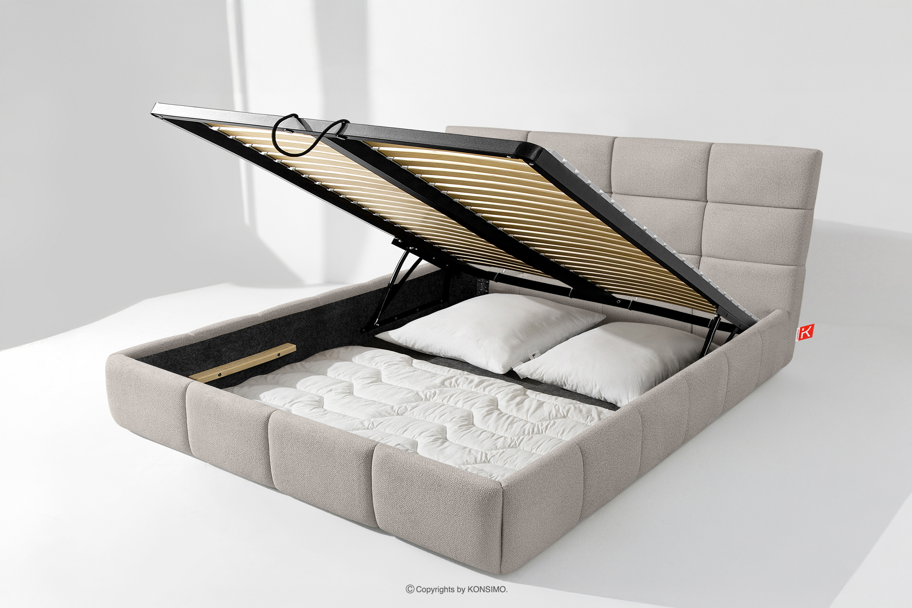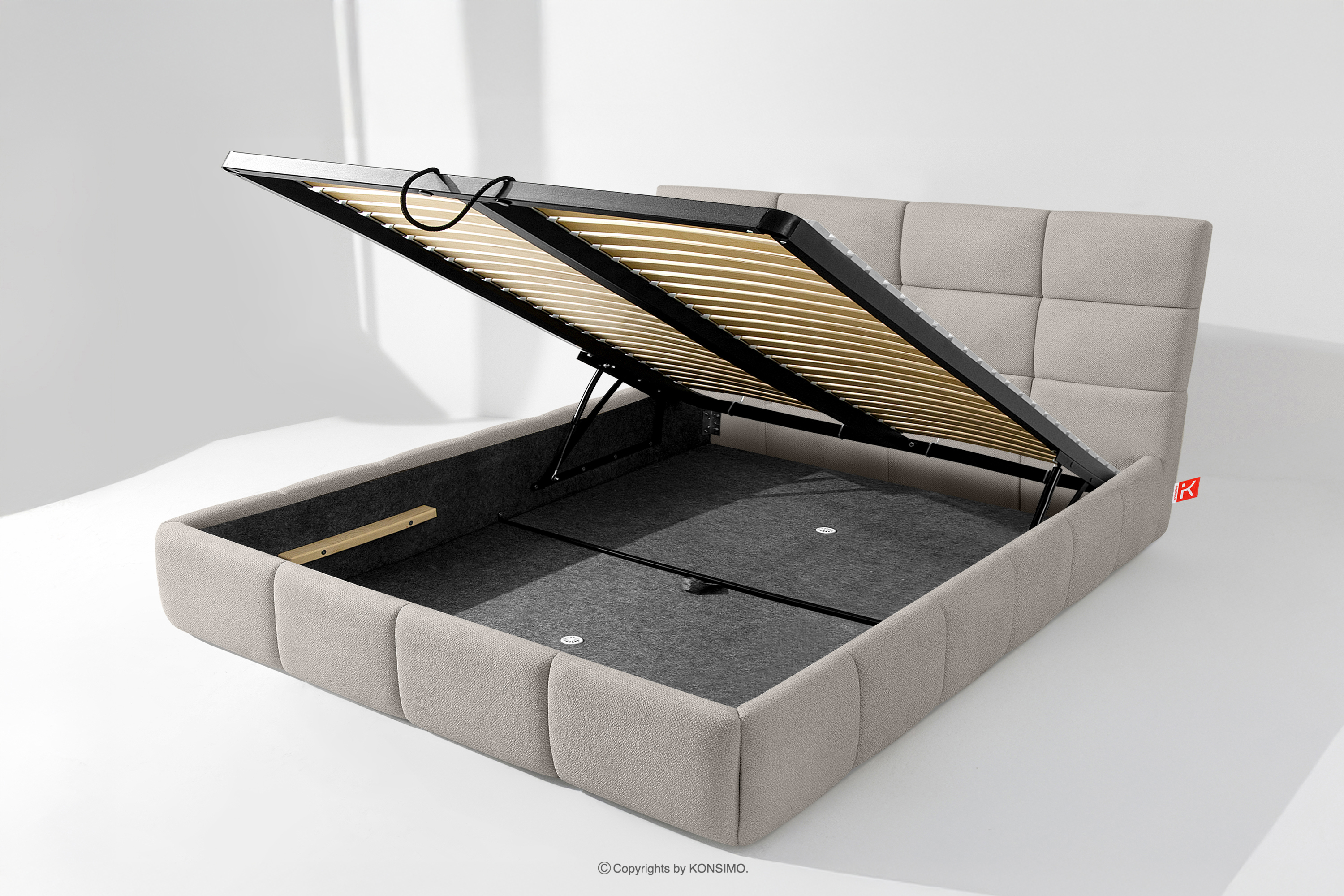 Ďalším komfortom je pohodlný kontajner na lôžkoviny, ktorý sa otvára vďaka moderným plynovým fľašiam - bez námahy a plne automaticky. Toto praktické riešenie umožňuje rýchly prístup k uloženej posteľnej bielizni bez nutnosti ručného zdvíhania ťažkého matraca.