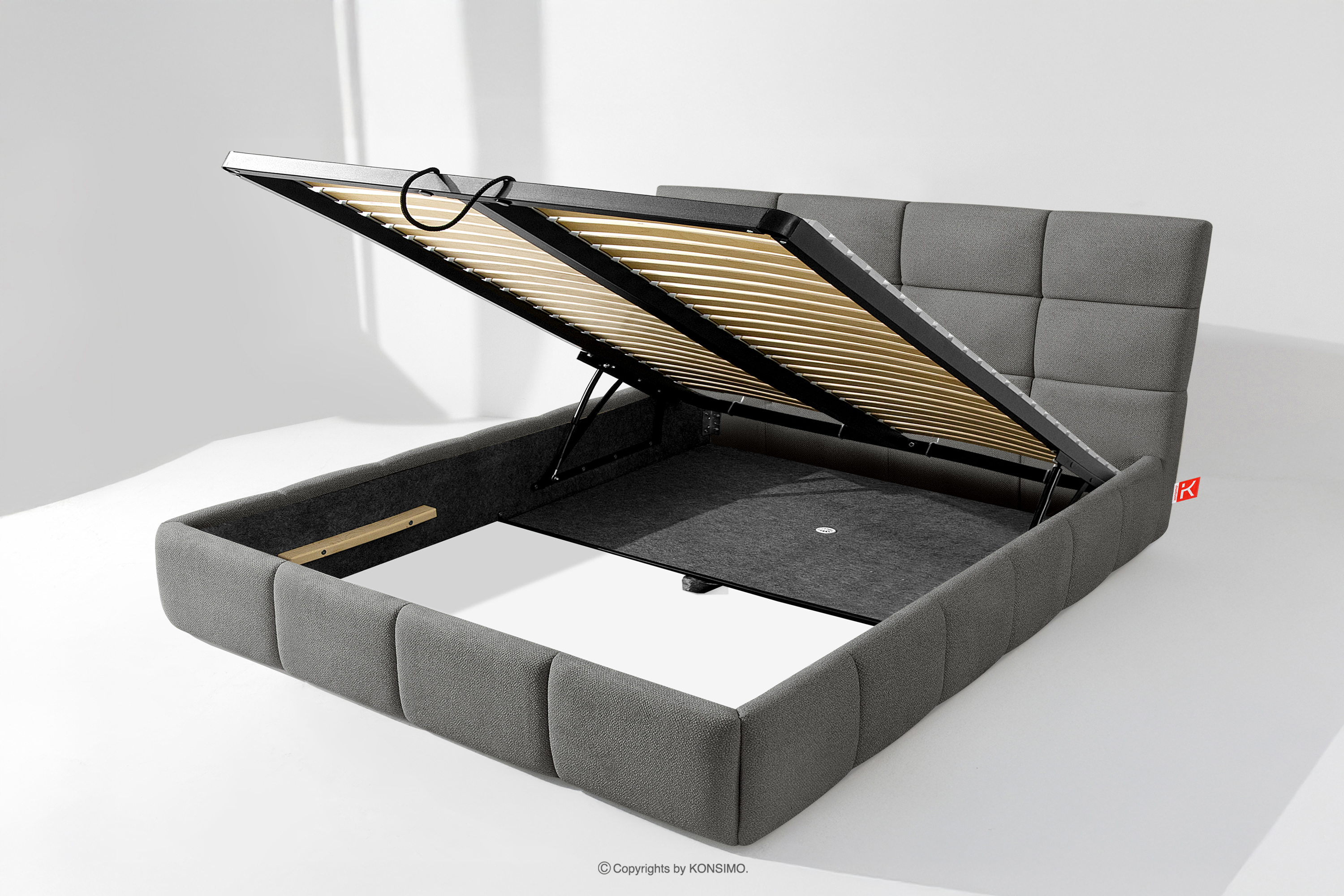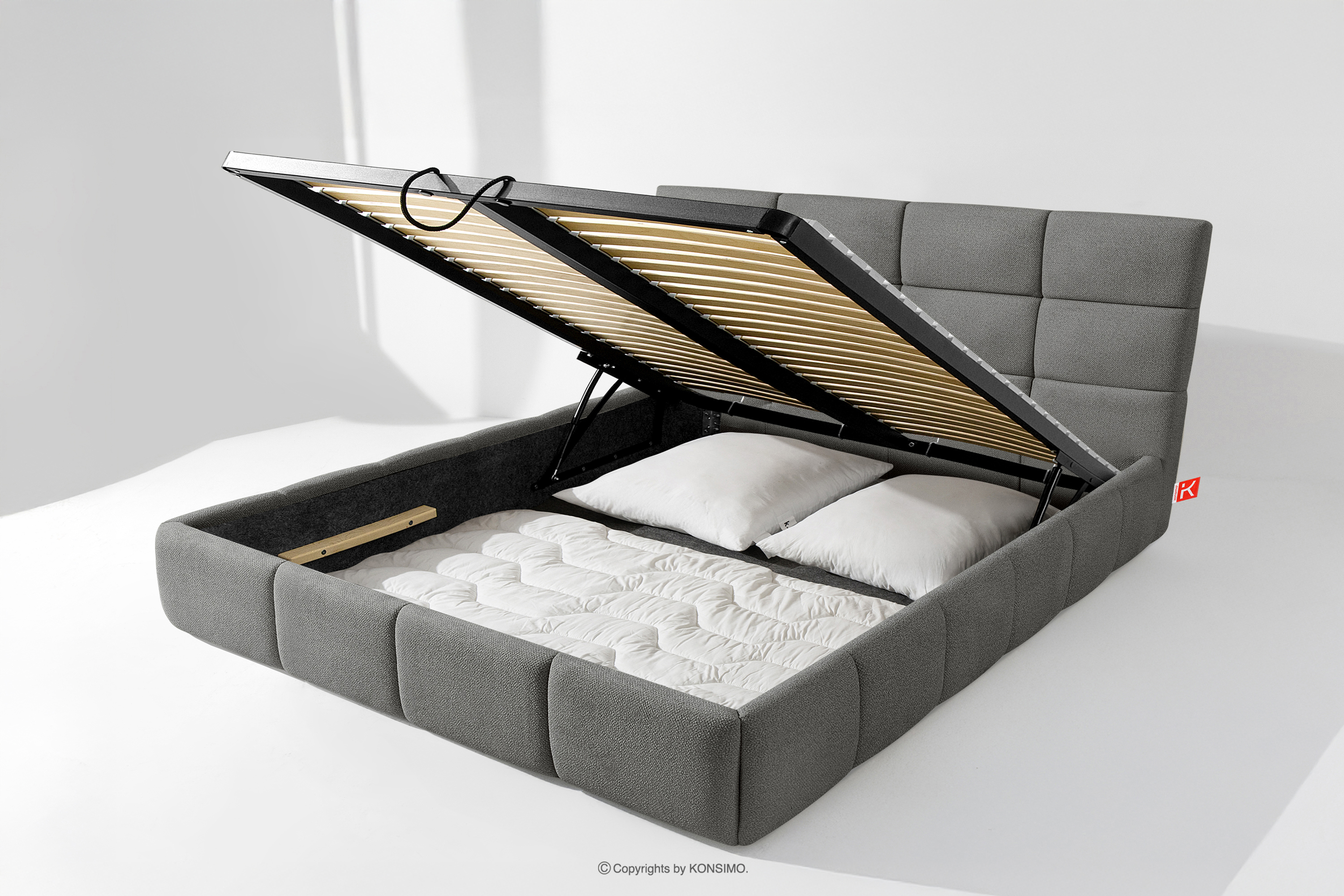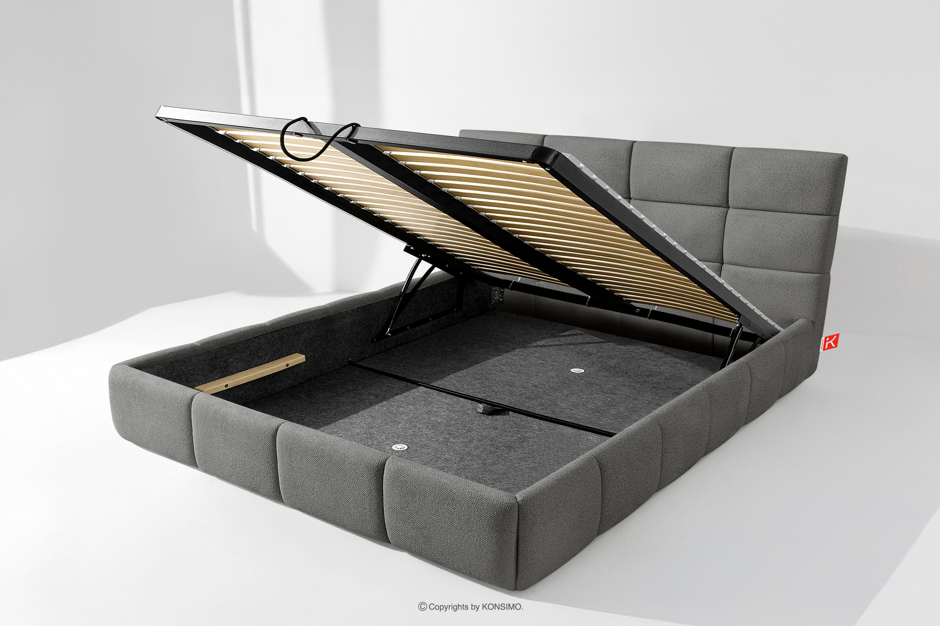 Ďalším komfortom je pohodlný kontajner na lôžkoviny, ktorý sa otvára vďaka moderným plynovým fľašiam - bez námahy a plne automaticky. Toto praktické riešenie umožňuje rýchly prístup k uloženej posteľnej bielizni bez nutnosti ručného zdvíhania ťažkého matraca.