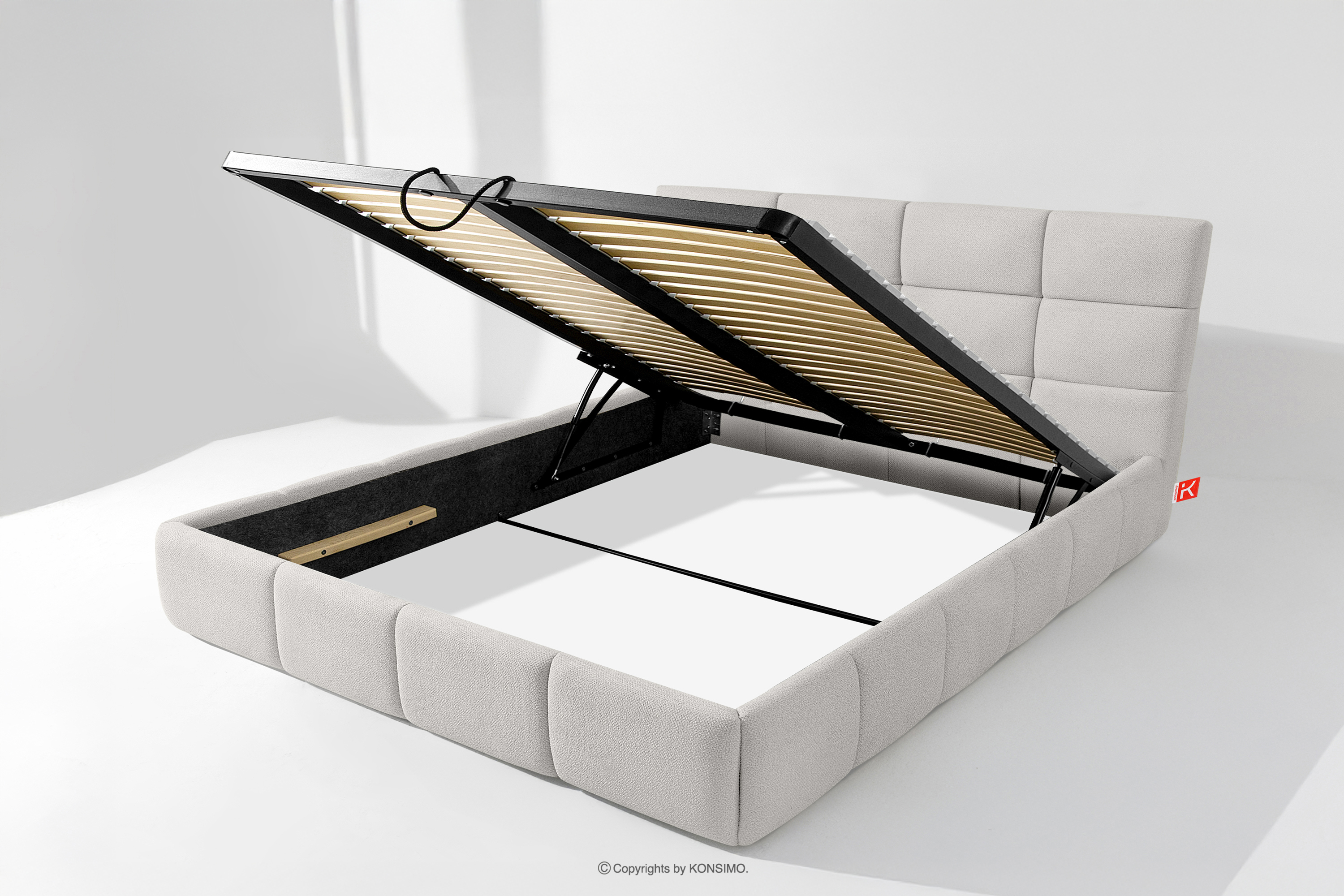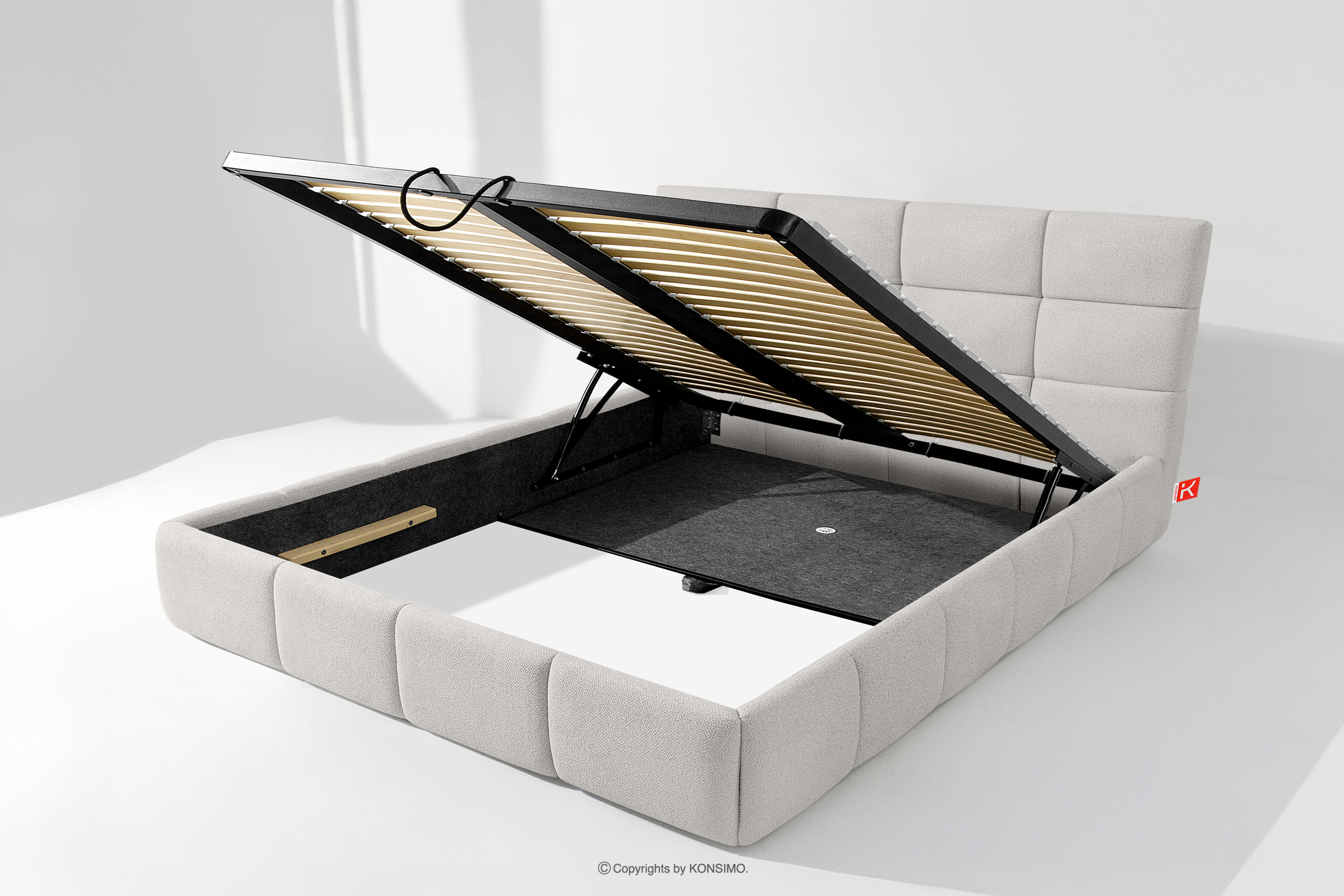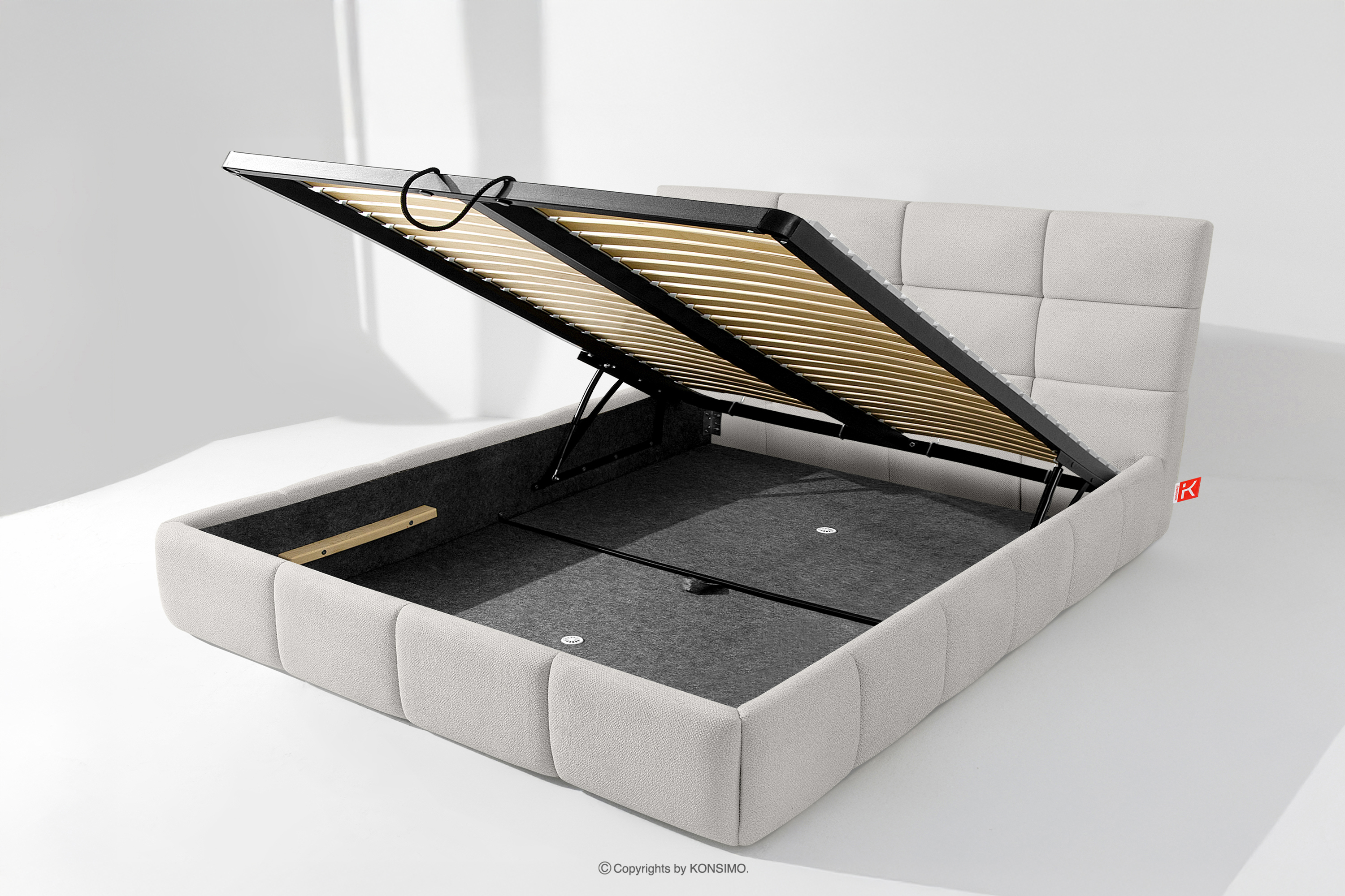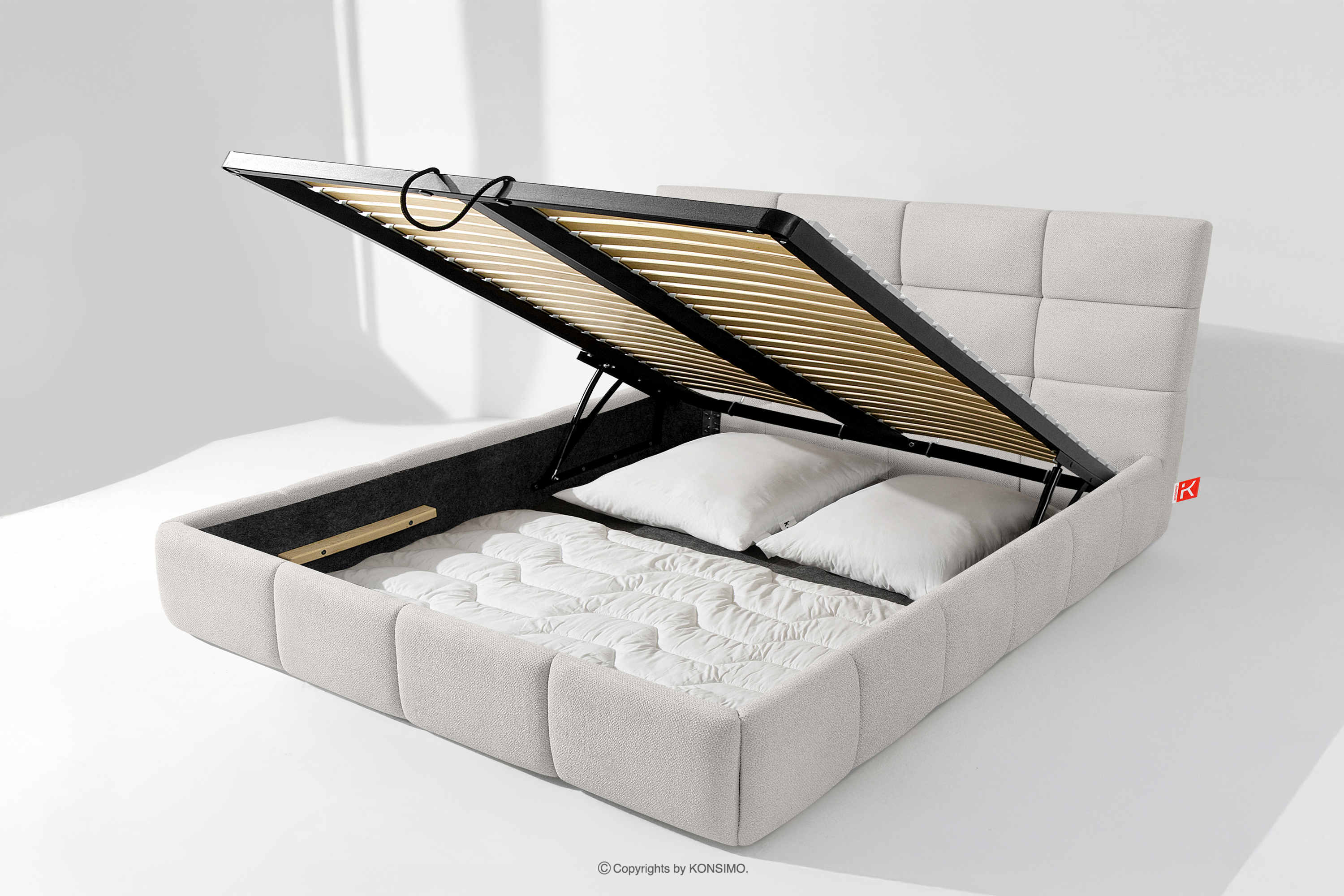 Ďalším komfortom je pohodlný kontajner na lôžkoviny, ktorý sa otvára vďaka moderným plynovým fľašiam - bez námahy a plne automaticky. Toto praktické riešenie umožňuje rýchly prístup k uloženej posteľnej bielizni bez nutnosti ručného zdvíhania ťažkého matraca.