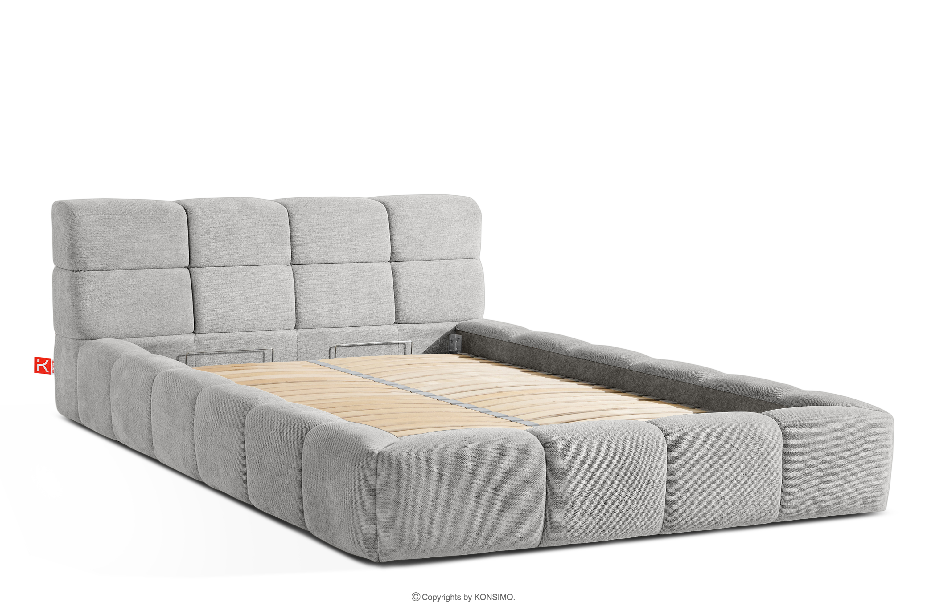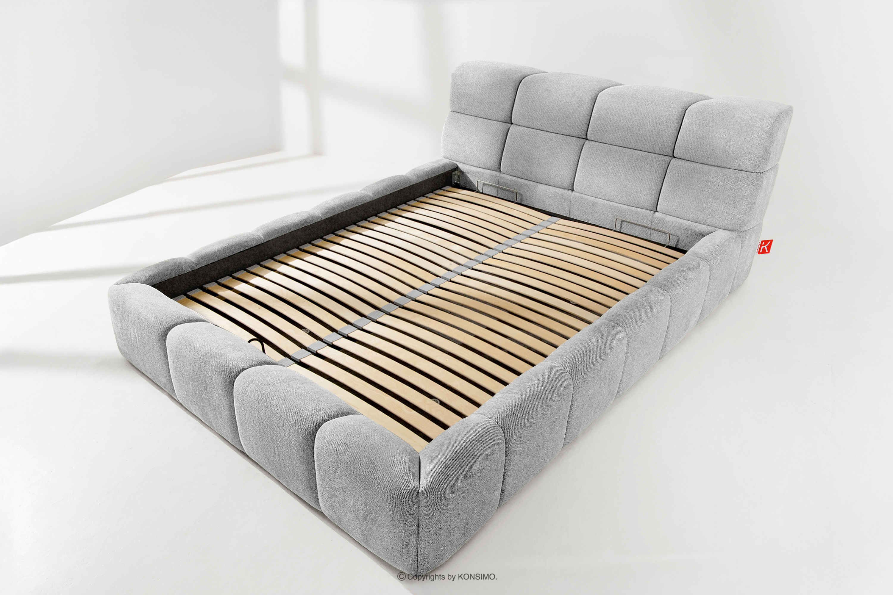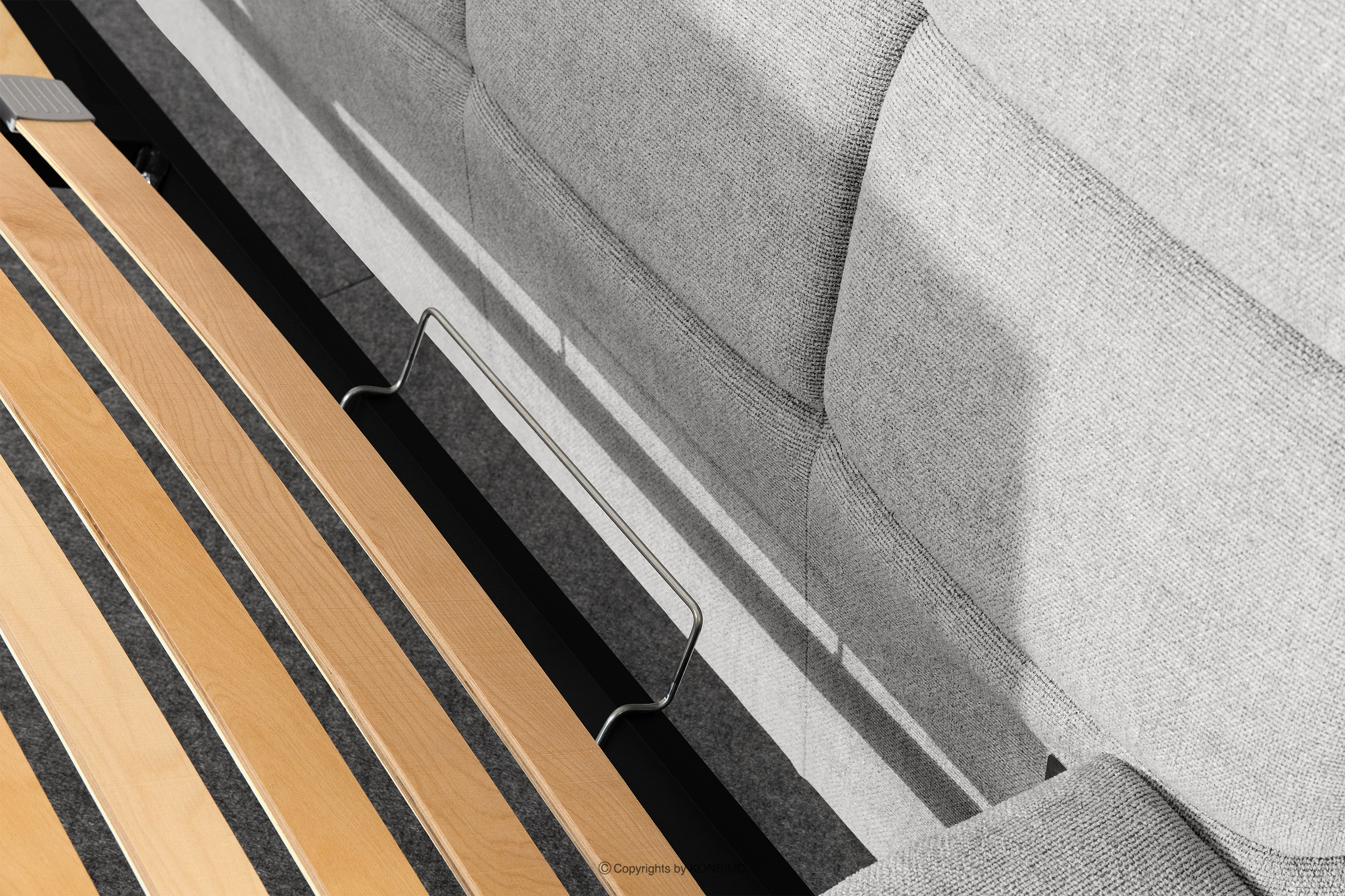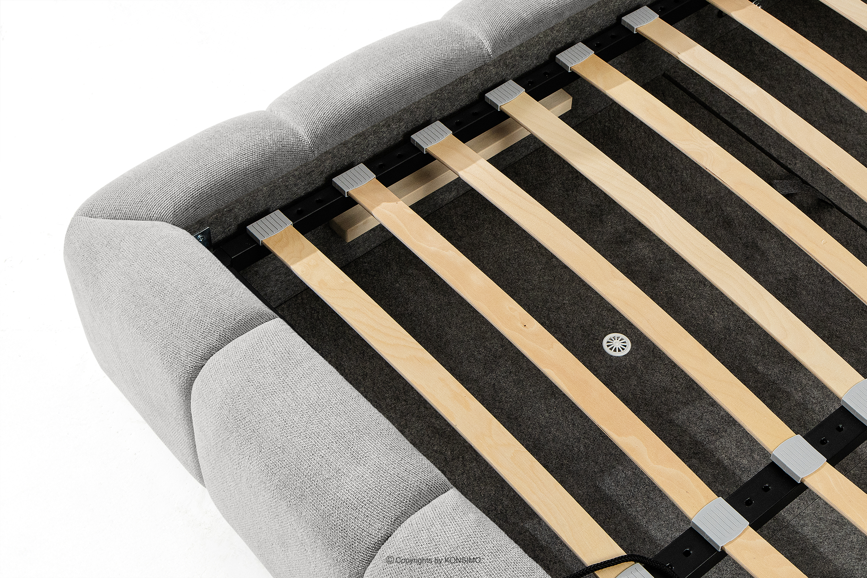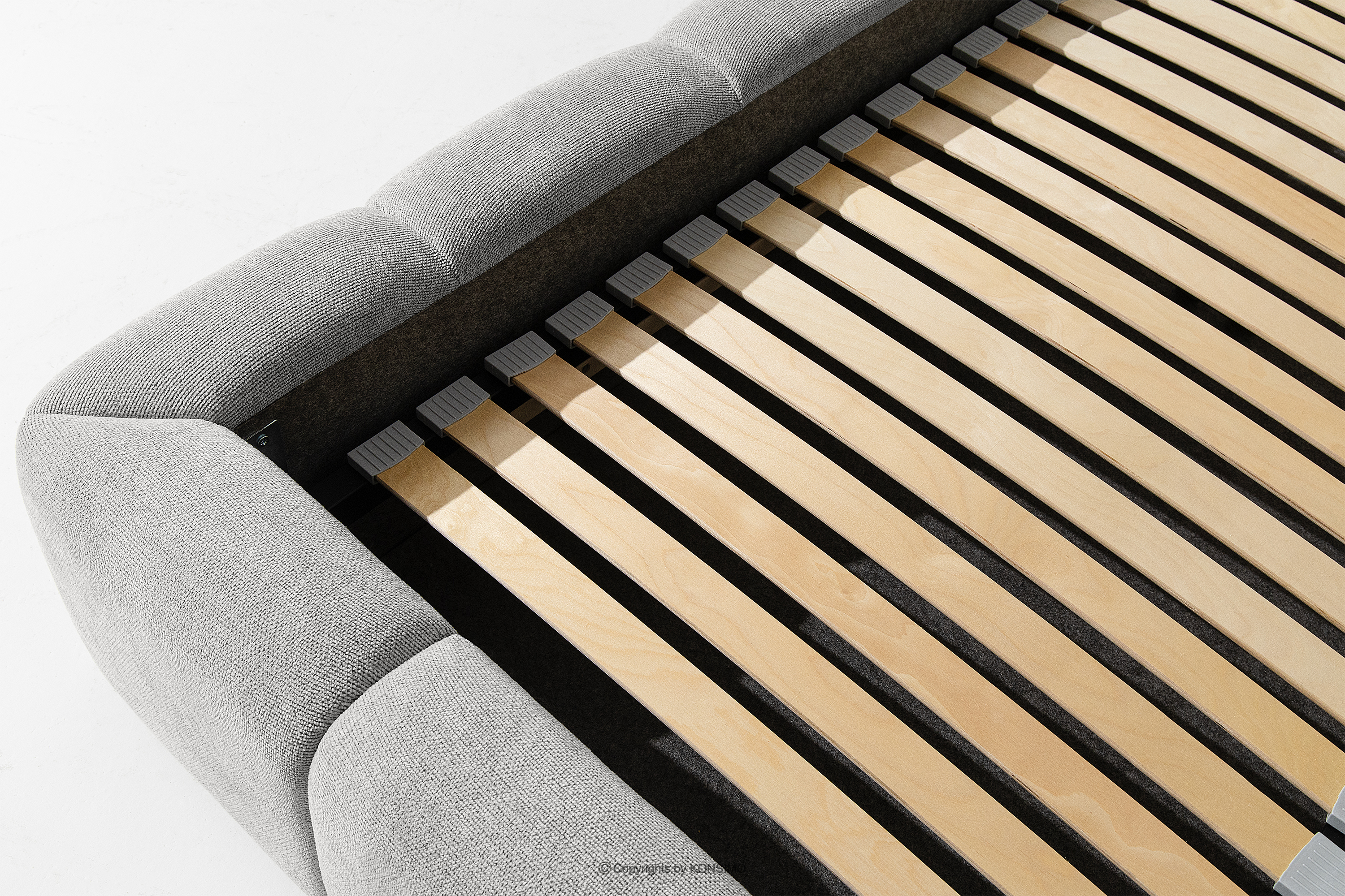 Posteľ 140 s opierkou hlavy svetlosivá je harmonickým spojením jednoduchosti škandinávskeho štýlu s výnimočným komfortom používania. Jej jedinečný tvar inšpirovaný tvarom oblaku upúta pozornosť originálnym dizajnom a zároveň poskytuje pohodlie na najvyššej úrovni. Základom konštrukcie je pružný rám z drevených lamiel, ktorého ďalšou výhodou je možnosť nastavenia tvrdosti lôžka - vďaka odnímateľným lamelám môžete úroveň mäkkosti prispôsobiť individuálnym preferenciám.