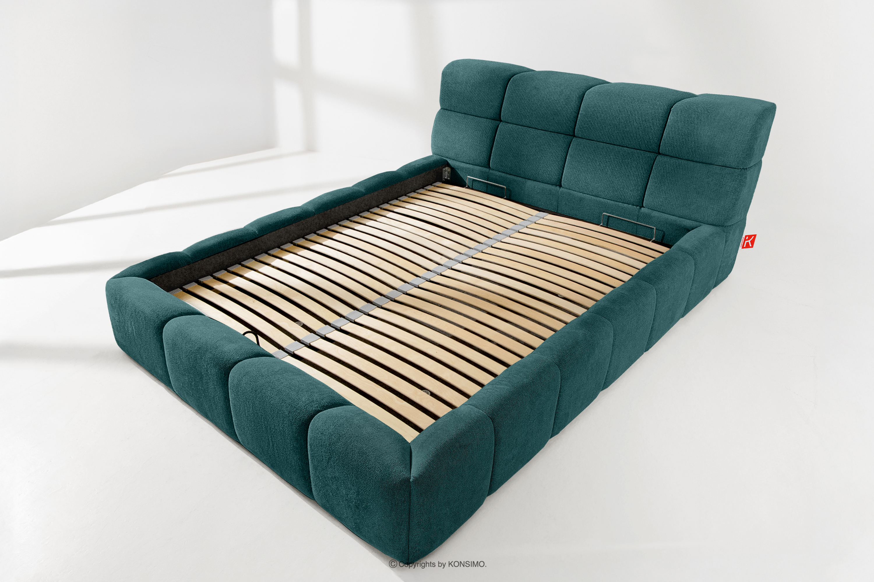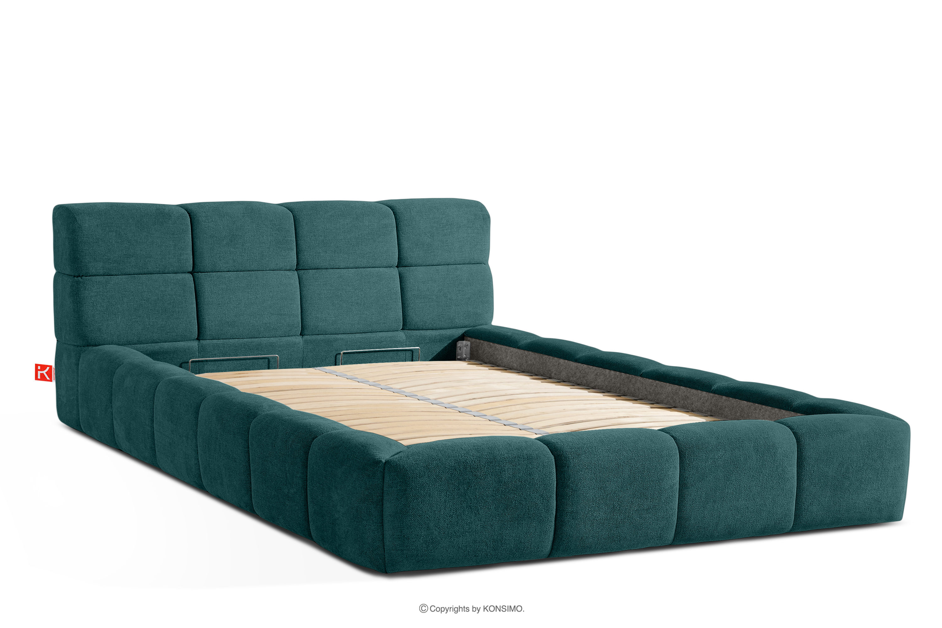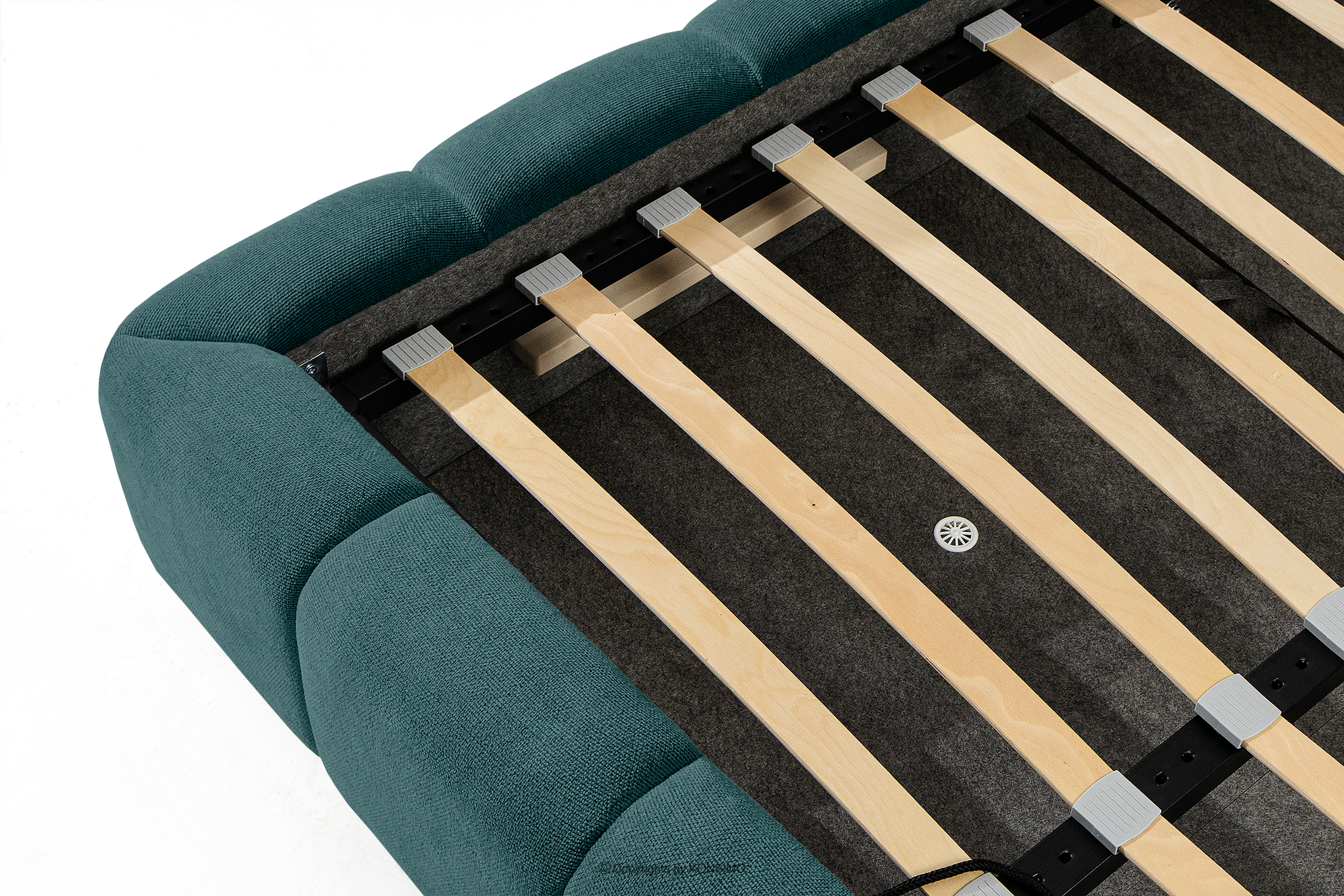 Posteľ 140 s modrou opierkou hlavy je harmonickým spojením jednoduchosti škandinávskeho štýlu s výnimočným komfortom používania. Jej jedinečný tvar inšpirovaný tvarom oblaku upúta pozornosť originálnym dizajnom a zároveň poskytuje pohodlie na najvyššej úrovni. Základom konštrukcie je pružný rám z drevených lamiel, ktorého ďalšou výhodou je možnosť nastavenia tvrdosti postele - vďaka vyberateľným lamelám si môžete úroveň mäkkosti prispôsobiť individuálnym preferenciám.