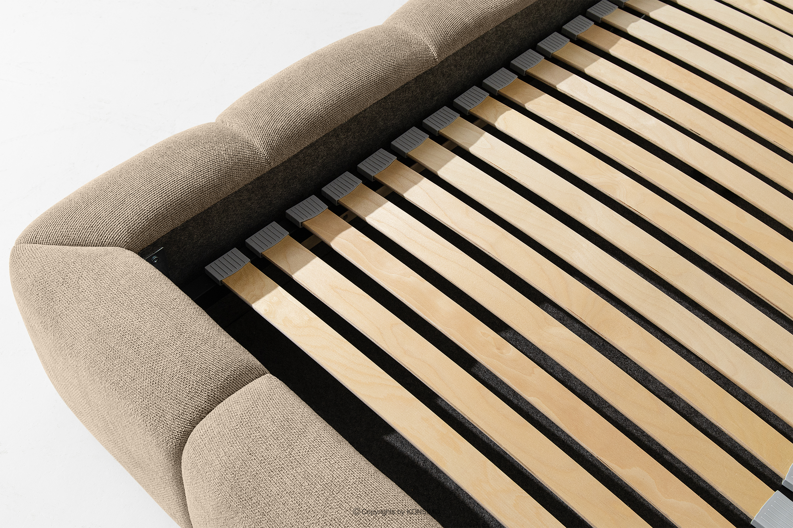 Čalúnená posteľ s opierkou hlavy béžová 140 cm je harmonickým spojením jednoduchosti škandinávskeho štýlu s výnimočným komfortom používania. Jej jedinečný tvar inšpirovaný tvarom oblaku upúta pozornosť originálnym dizajnom a zároveň poskytuje pohodlie na najvyššej úrovni. Základom konštrukcie je pružný rám z drevených lamiel, ktorého ďalšou výhodou je možnosť nastavenia tvrdosti postele - vďaka vyberateľným lamelám môžete úroveň mäkkosti prispôsobiť individuálnym preferenciám.