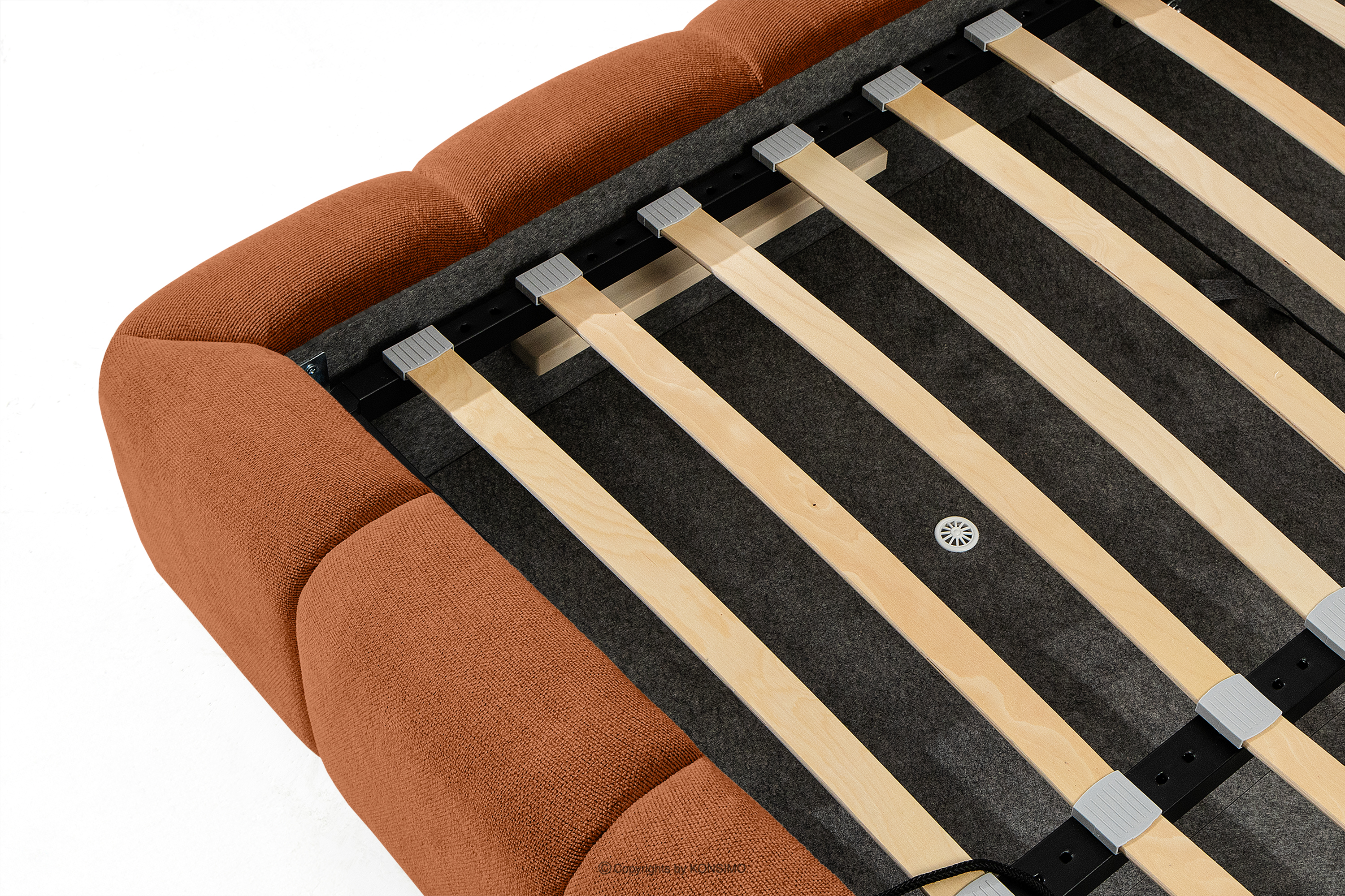 Čalúnená posteľ Ore 160 cm s opierkou hlavy je harmonickým spojením jednoduchosti škandinávskeho štýlu s výnimočným komfortom používania. Jej jedinečný tvar inšpirovaný tvarom oblaku upúta pozornosť originálnym dizajnom a zároveň poskytuje pohodlie na najvyššej úrovni. Základom konštrukcie je pružný rám z drevených lamiel, ktorého ďalšou výhodou je možnosť nastavenia tvrdosti postele - vďaka odnímateľným lamelám môžete úroveň mäkkosti prispôsobiť individuálnym preferenciám.