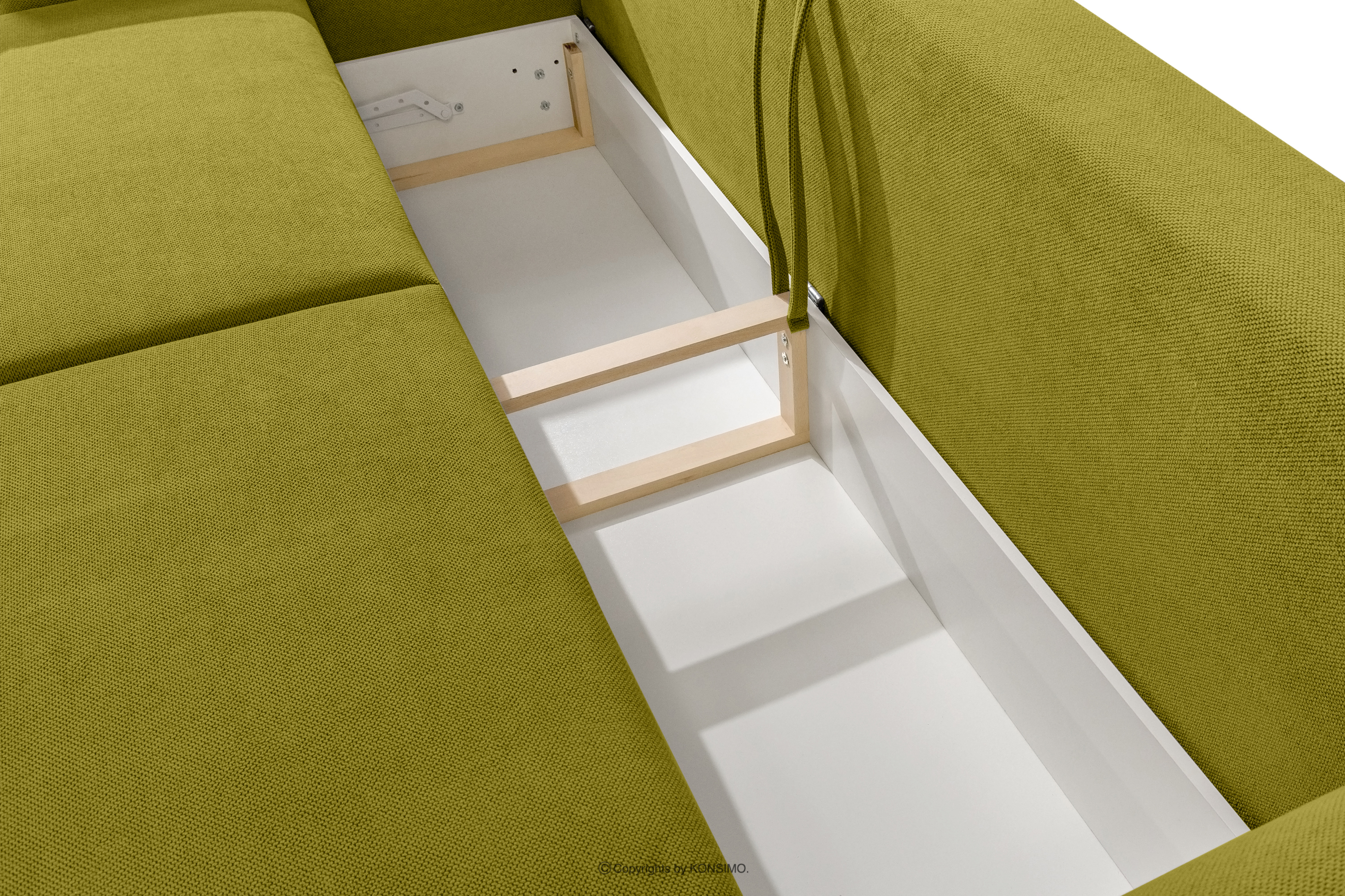 LAVIS Moderná pohovka s úložným priestorom na posteľnú bielizeň v olivovej farbe