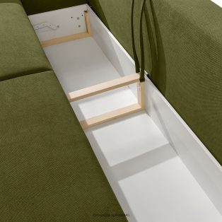 Moderná pohovka s úložným priestorom na posteľnú bielizeň v tmavozelenej farbeje kombináciou elegancie a funkčnosti, vytvorená s ohľadom na najnáročnejších používateľov. Čalúnenie z vysoko kvalitnej tkaniny nielenže poteší svojím vzhľadom, ale je aj mimoriadne praktické. Priedušná štruktúra materiálu zaisťuje pohodlie počas celého roka a vďaka ľahkej údržbe je udržiavanie pohovky v ideálnom stave mimoriadne jednoduché.