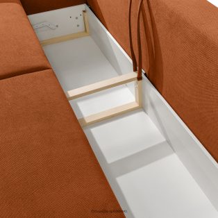 Moderná pohovka s úložným priestorom na posteľnú bielizeň v červenej farbeje kombináciou elegancie a funkčnosti, vytvorená s ohľadom na najnáročnejších používateľov. Čalúnenie z vysoko kvalitnej tkaniny nielenže poteší svojím vzhľadom, ale je aj mimoriadne praktické. Priedušná štruktúra materiálu zaisťuje pohodlie počas celého roka a vďaka ľahkej údržbe je udržiavanie pohovky v ideálnom stave mimoriadne jednoduché.
