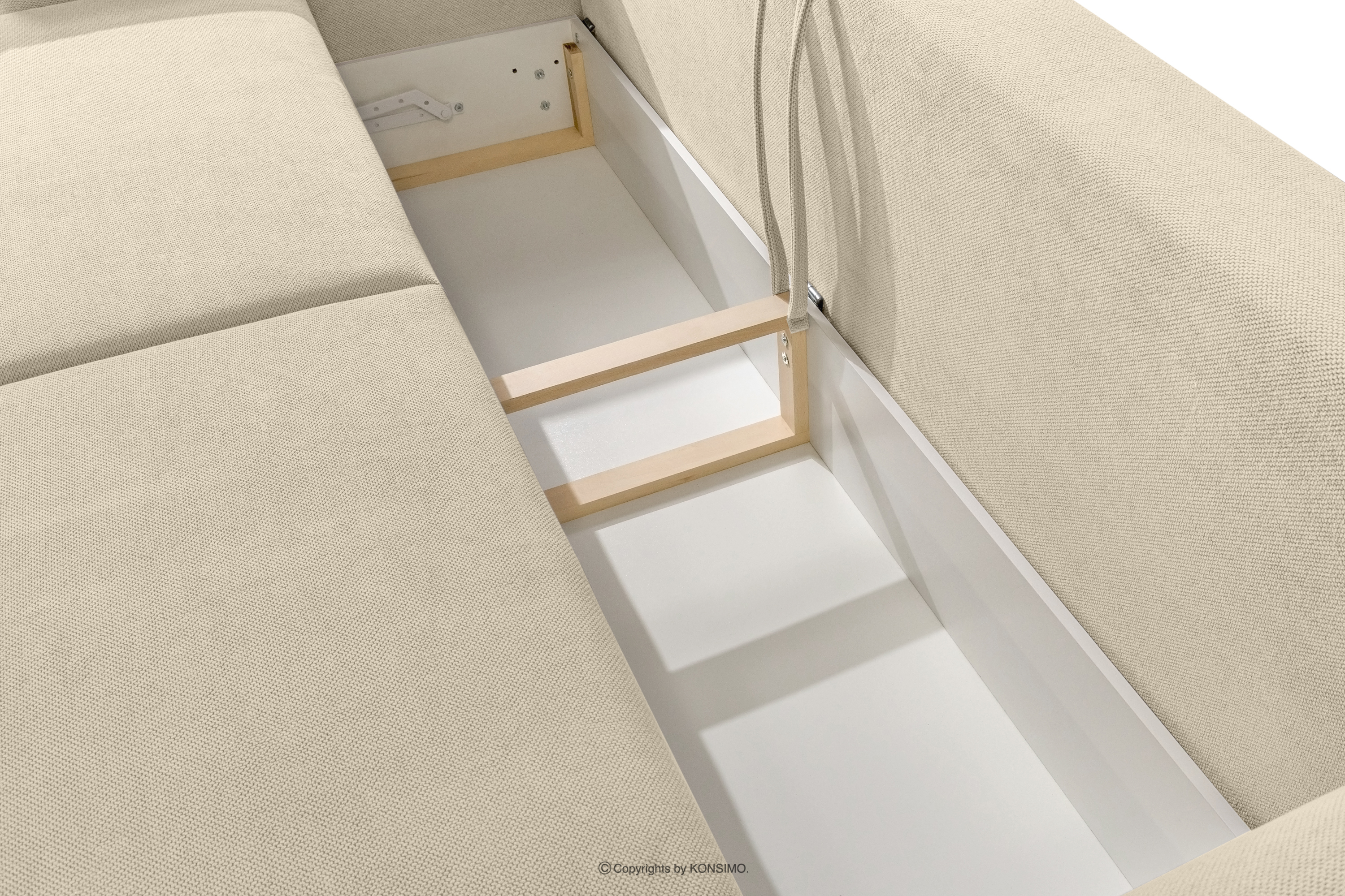 LAVIS Moderná pohovka s úložným priestorom na posteľnú bielizeň v ecru farbe