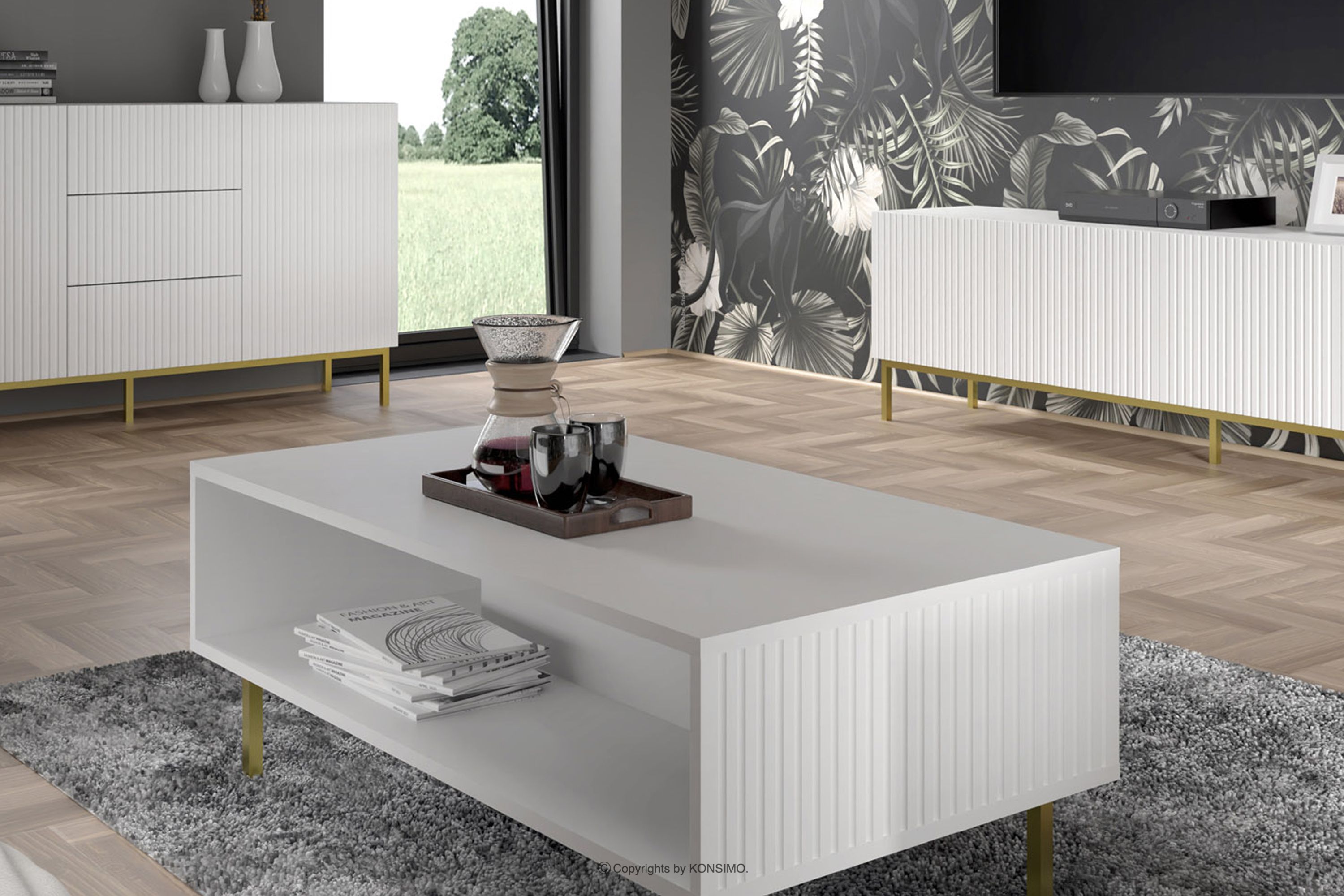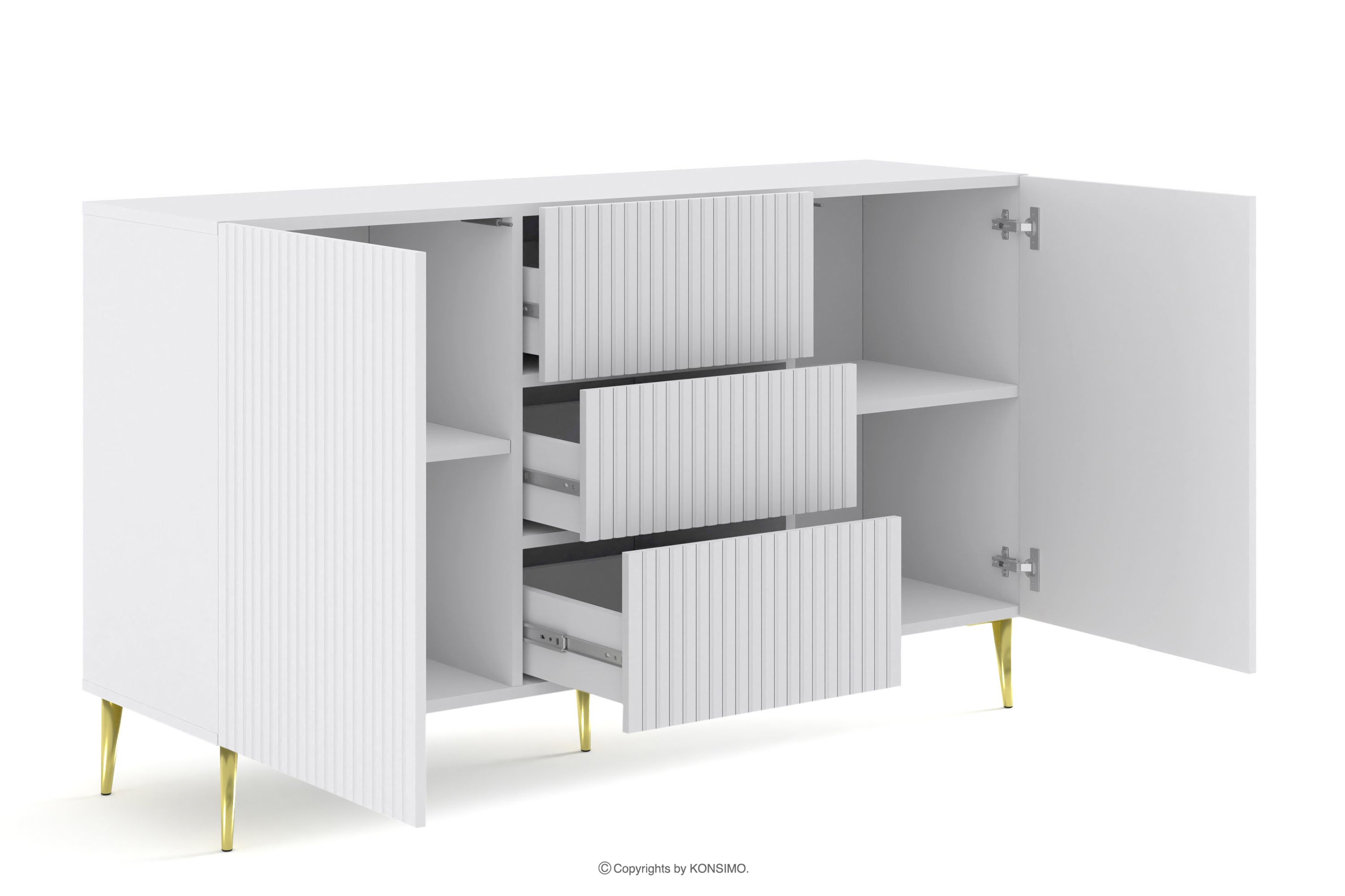 REMO Objav celú kolekciu Biela elegantná komoda na zlatých nohách- farba biela