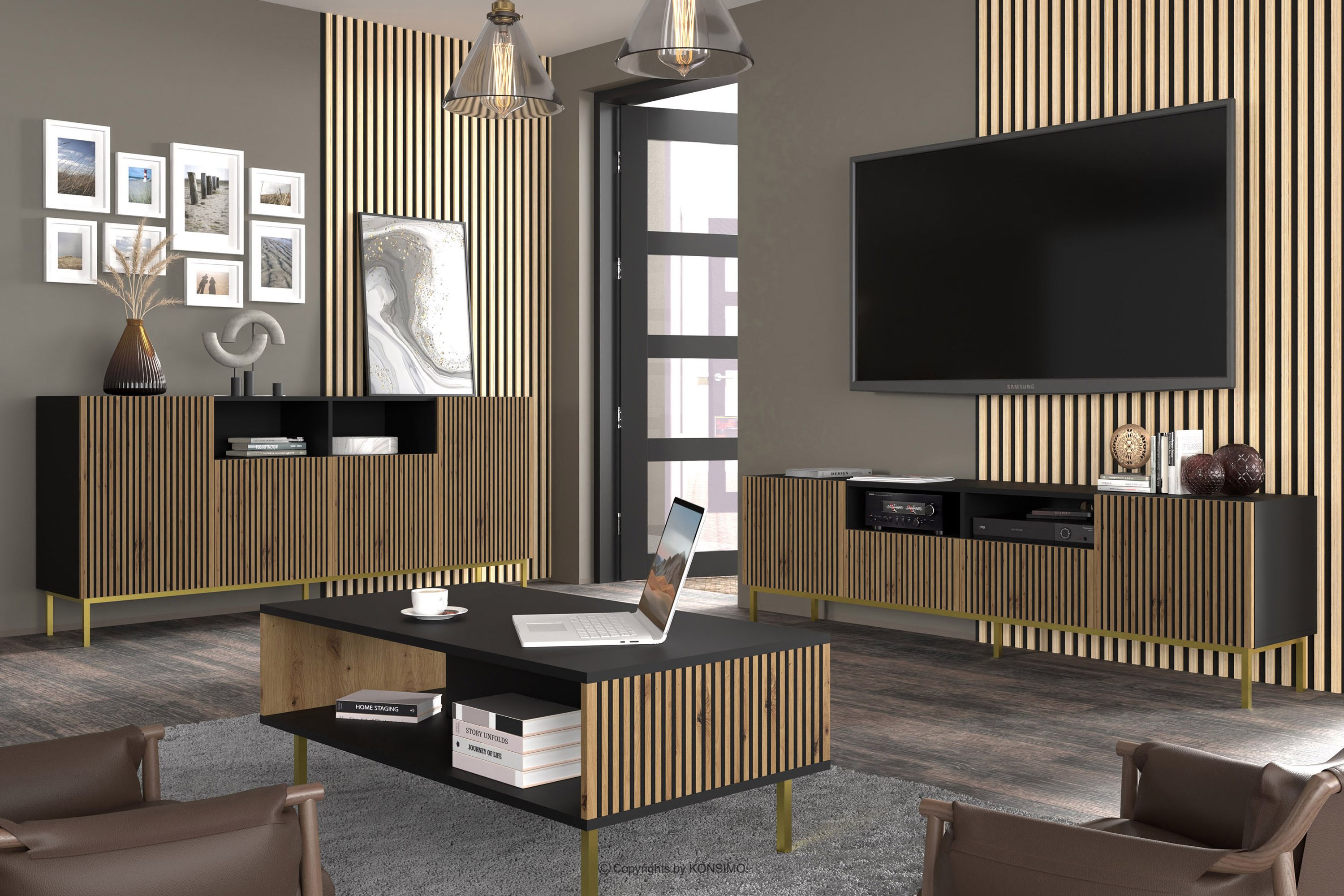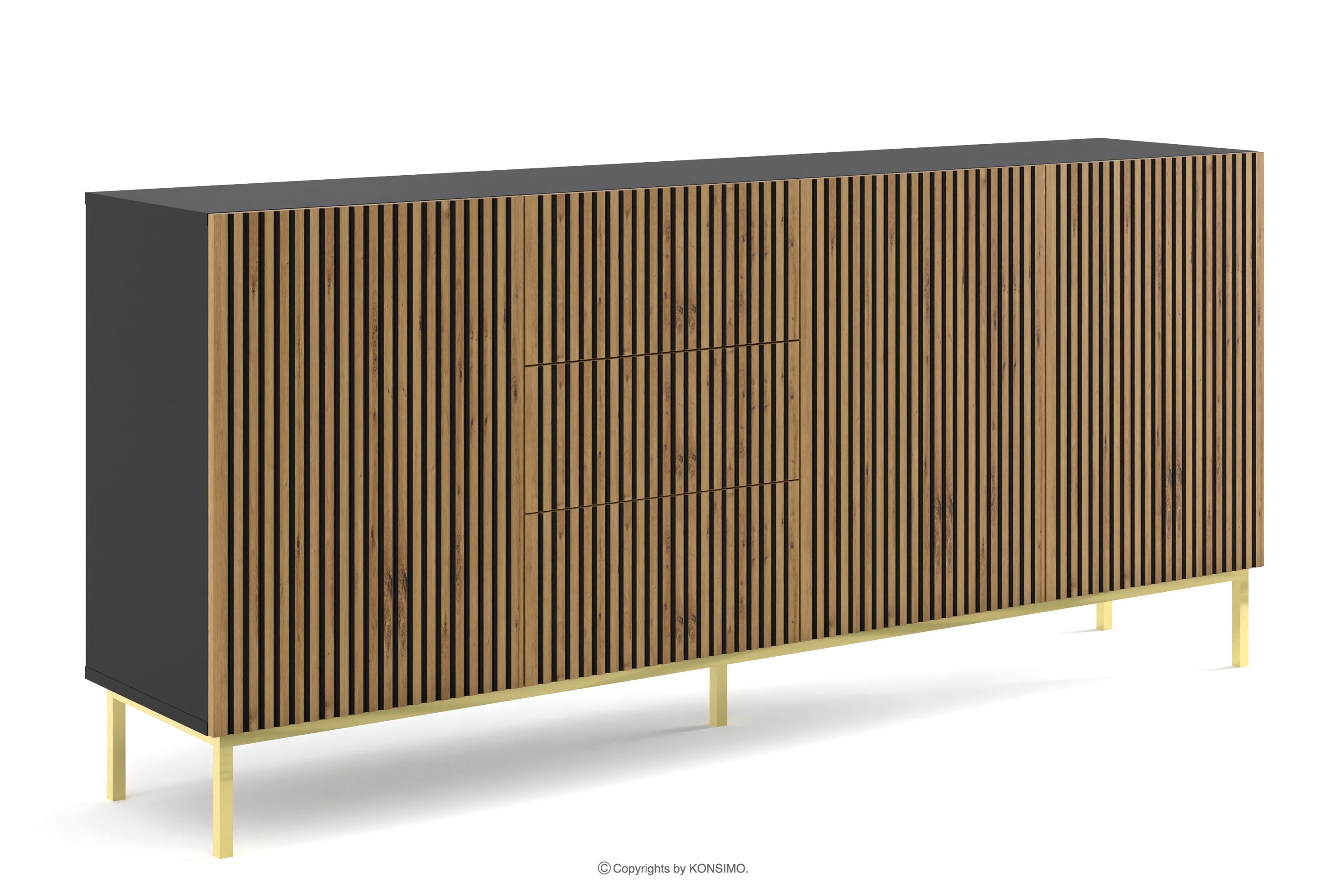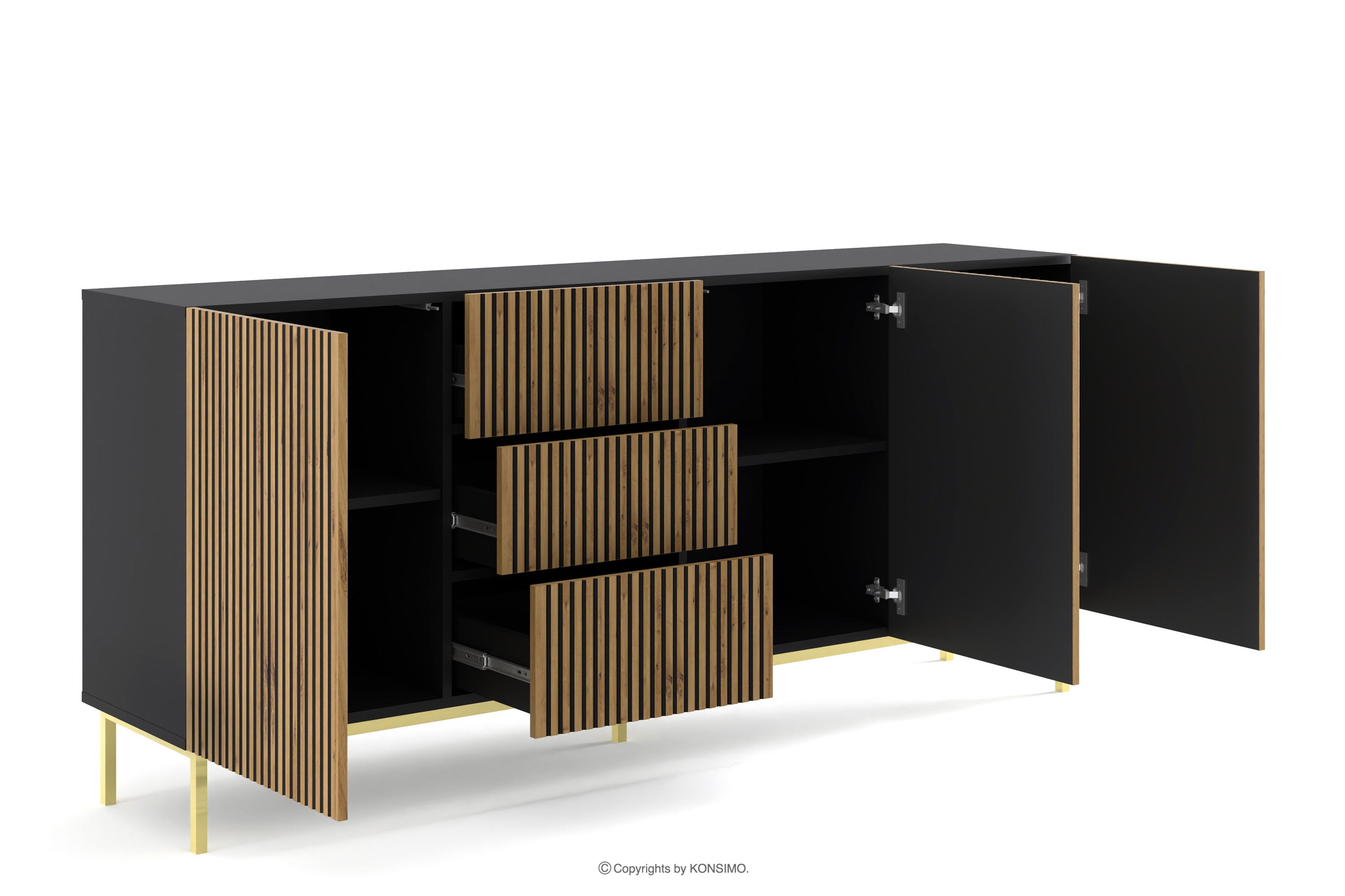 REMO Objav celú kolekciu Komoda s lamelami čierna/dubová artisan- farba čierna/dubová artisan
