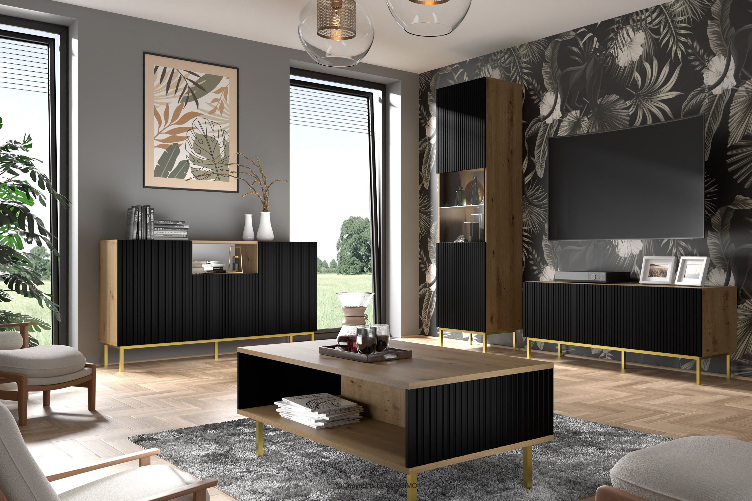 REMO Objav celú kolekciu Komoda na zlatých nožičkách do obývačky dub artisan/keramická- farba dub artisan/čierna