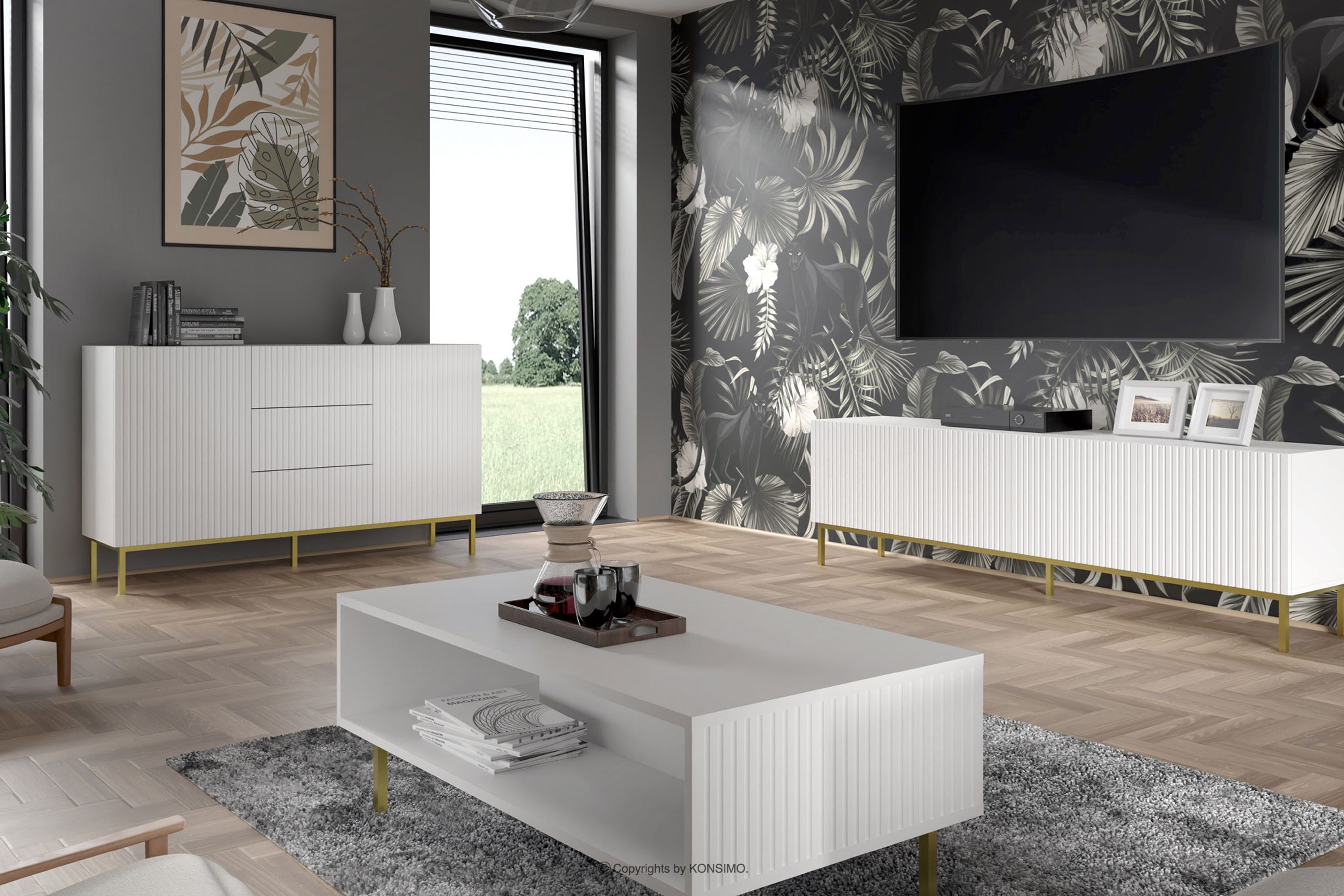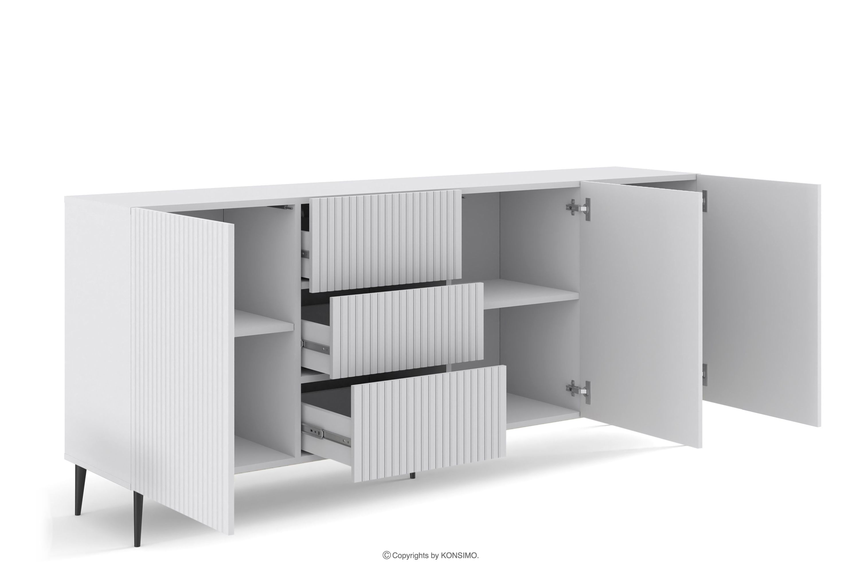 REMO Objav celú kolekciu Veľká biela komoda do izieb na masívnych nožičkách- farba biela