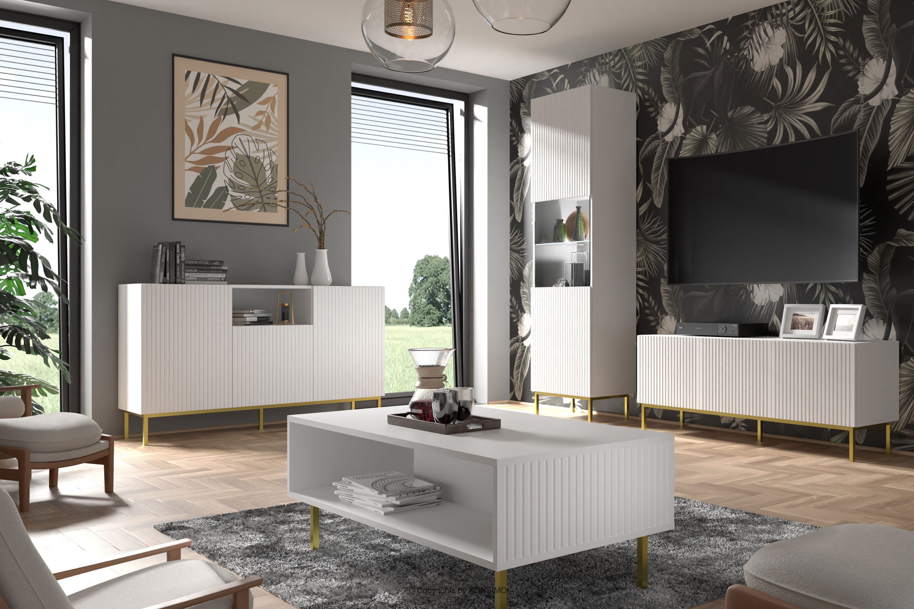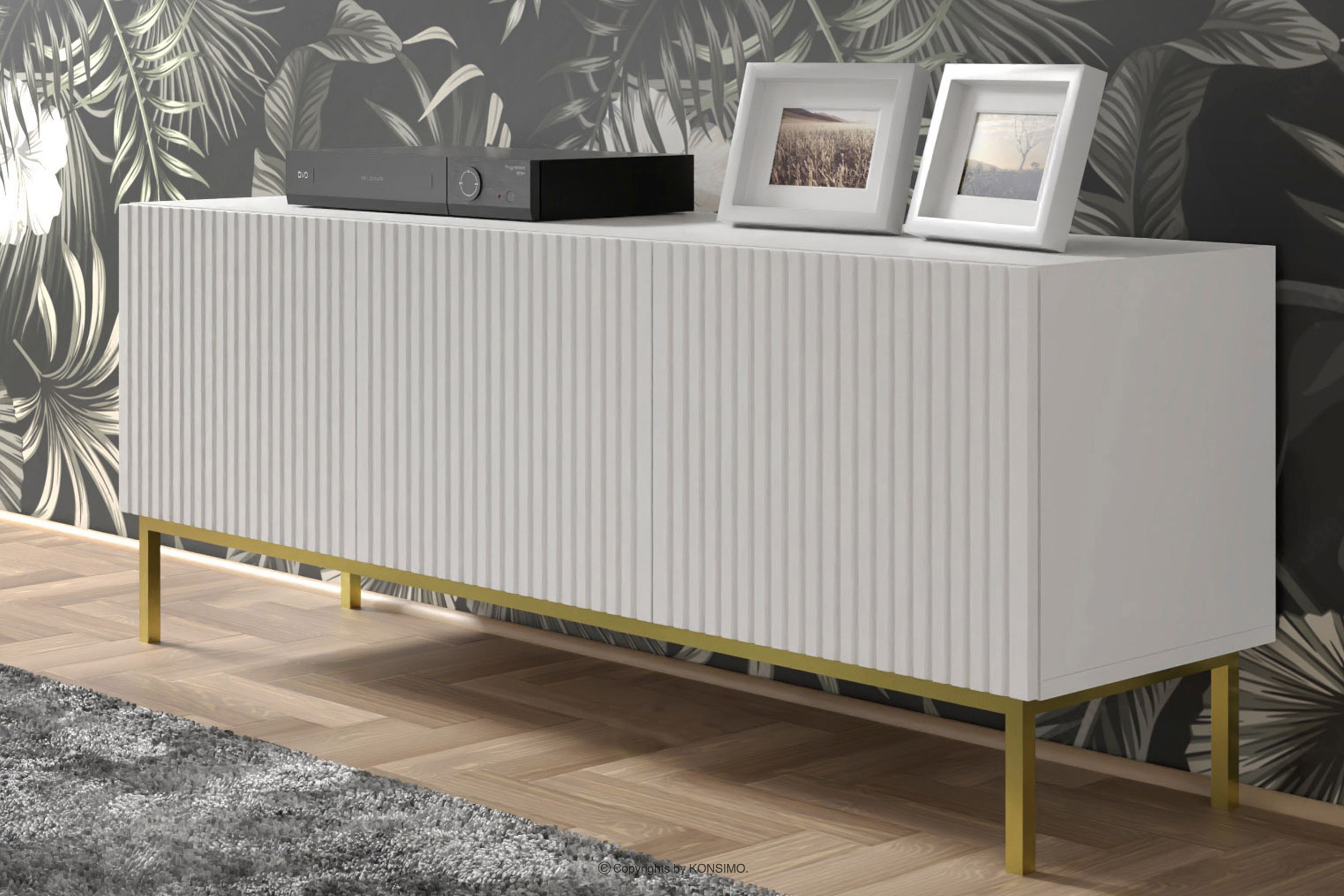 REMO Objav celú kolekciu Veľká RTV skrinka na masívnych nožičkách biela- farba biela