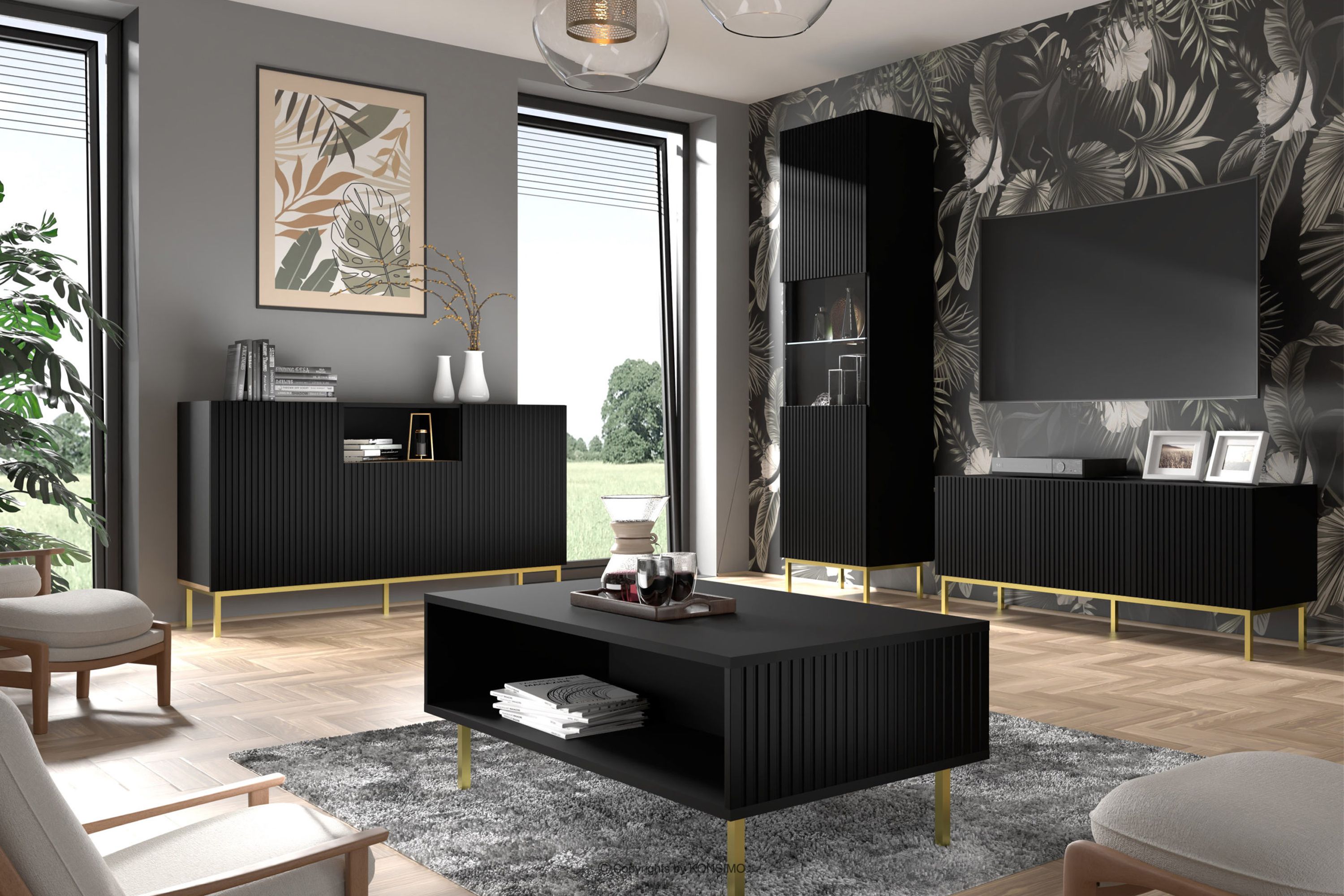 REMO Objav celú kolekciu Široká RTV skriňa na zlatých nožičkách čierna- farba čierna