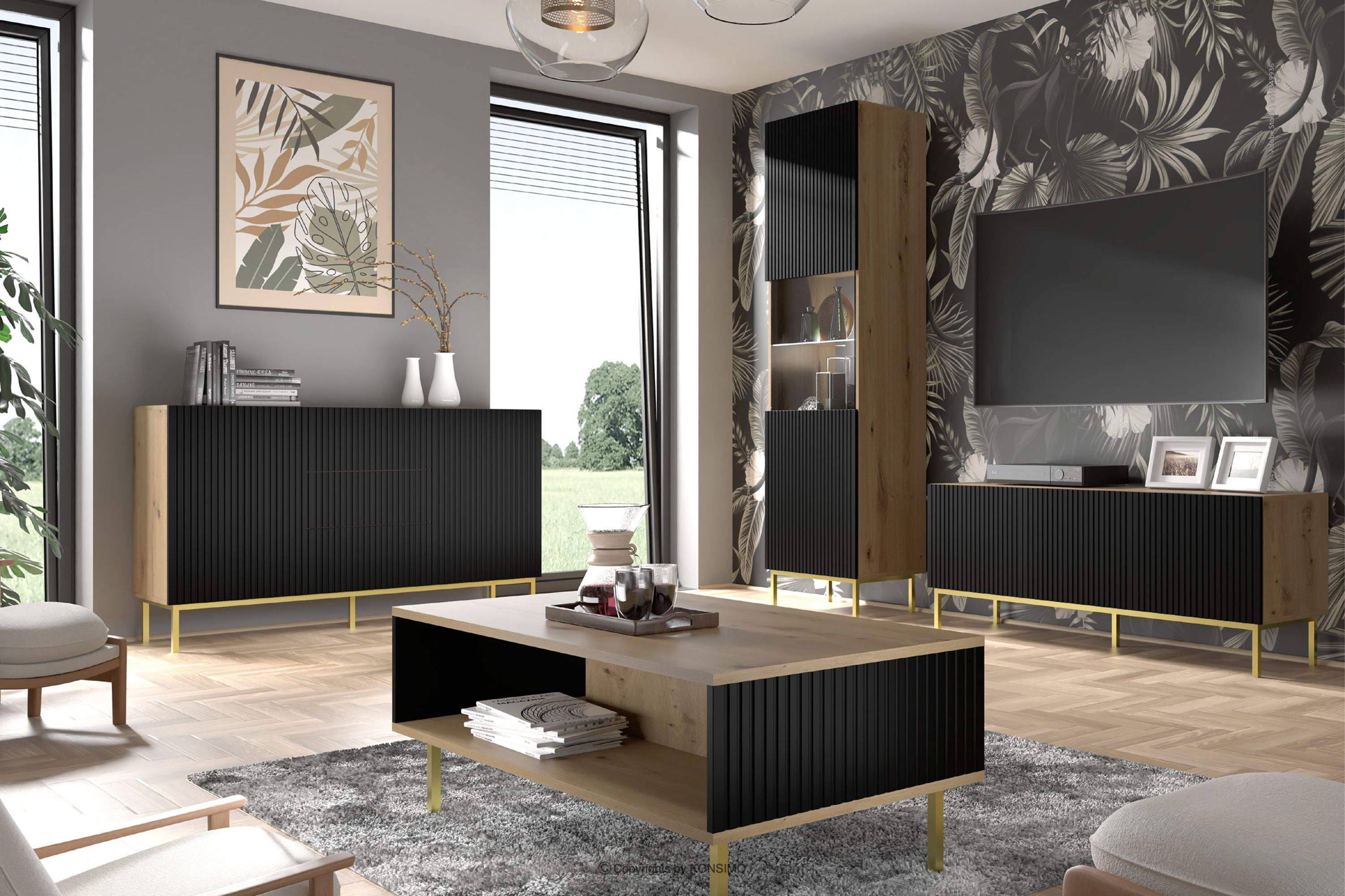 REMO Objav celú kolekciu Široká RTV skriňa na pevných nohách dub artisan/čierna- farba dub artisan/čierna