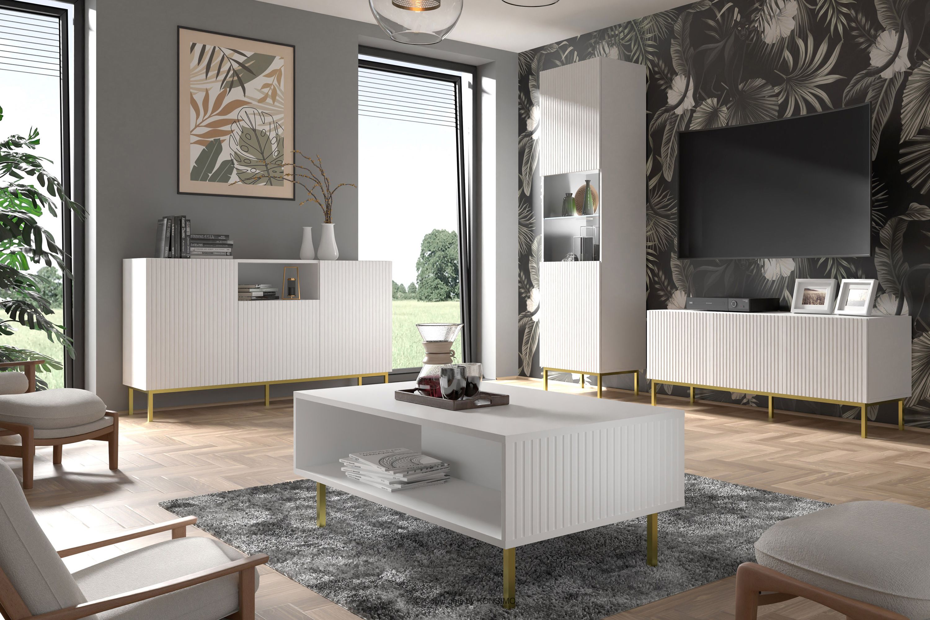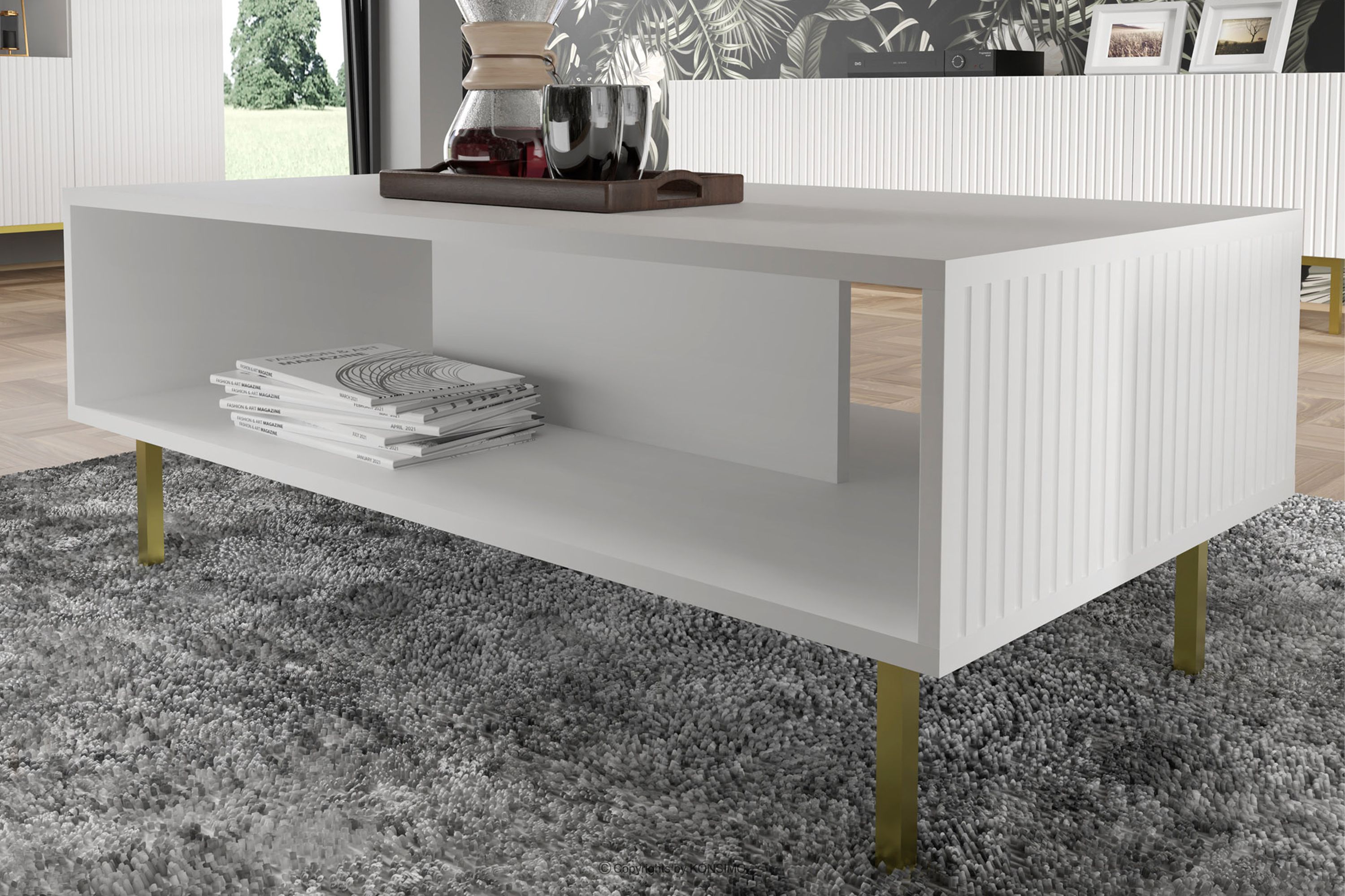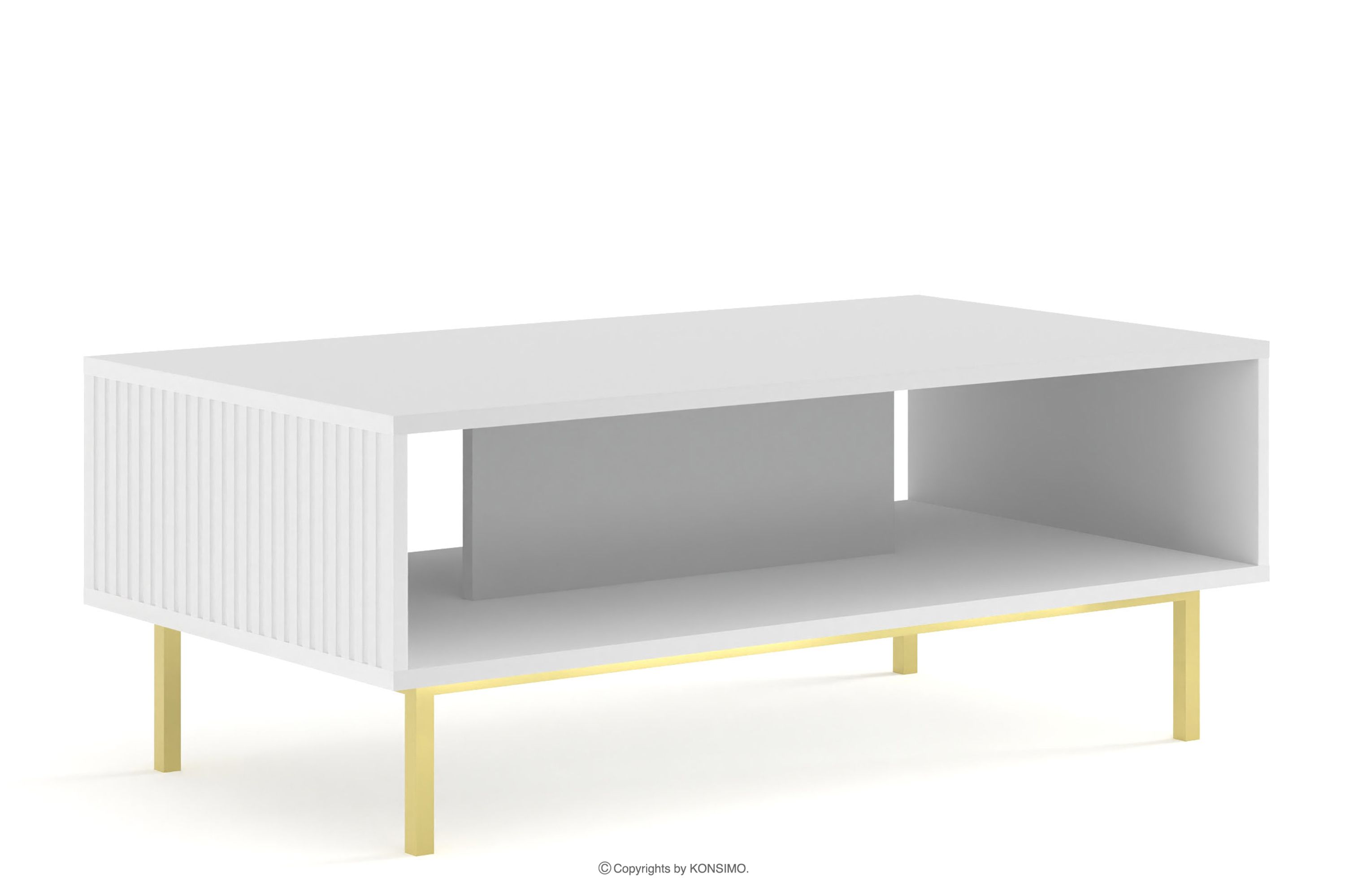 REMO Objav celú kolekciu Konferenčný stolík na zlatých nohách s policou bielej farby- farba biela