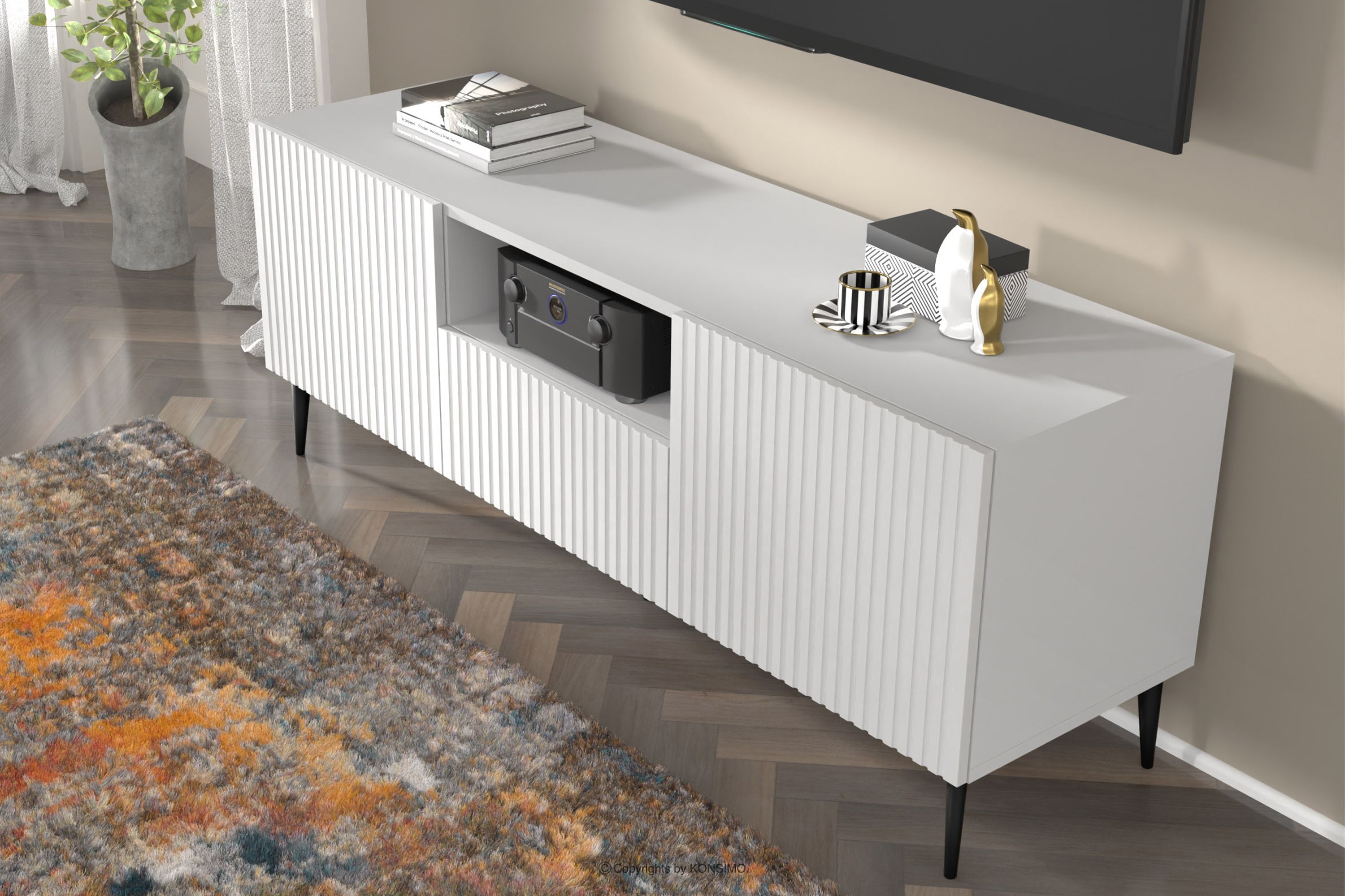Biela lamelová moderná komoda je kombináciou výnimočného dizajnu, solídneho spracovania a funkčnosti. Boli vytvorené pre ľudí, ktorí si cenia estetiku a pohodlie pri každodennom používaní. Jednoduché, minimalistické tvary obohatené o jemné detaily zapadajú do najnovších trendov interiérového dizajnu, vďaka čomu harmonicky zapadnú do rôznych aranžmánov. Tento nábytok je vynikajúcou voľbou pre každého, kto si chce vytvoriť moderný a zároveň útulný interiér, kde pohodlie a štýl idú ruka v ruke.