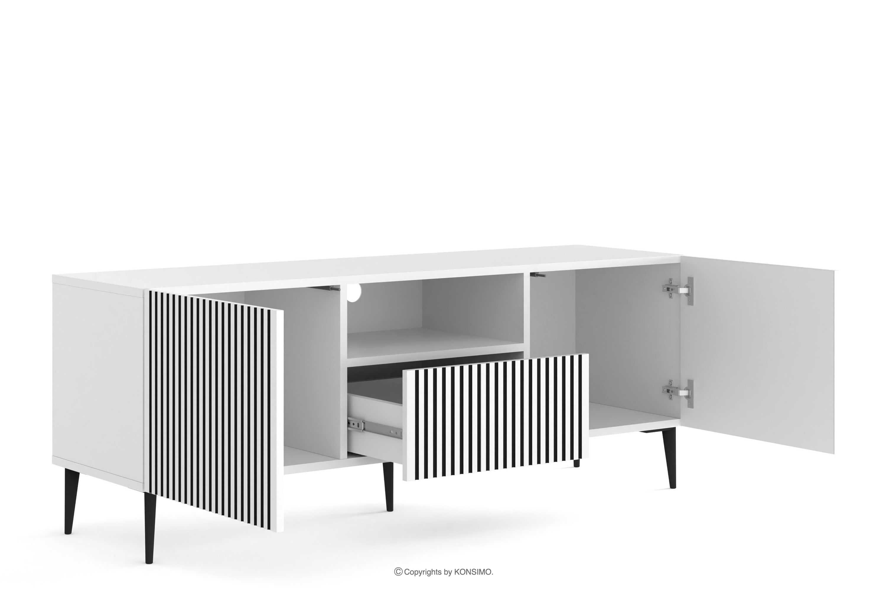 REMO Objav celú kolekciu RTV skrinka na nožičkách moderná s lemovaním biela/čistá biela- farba biela/čierna