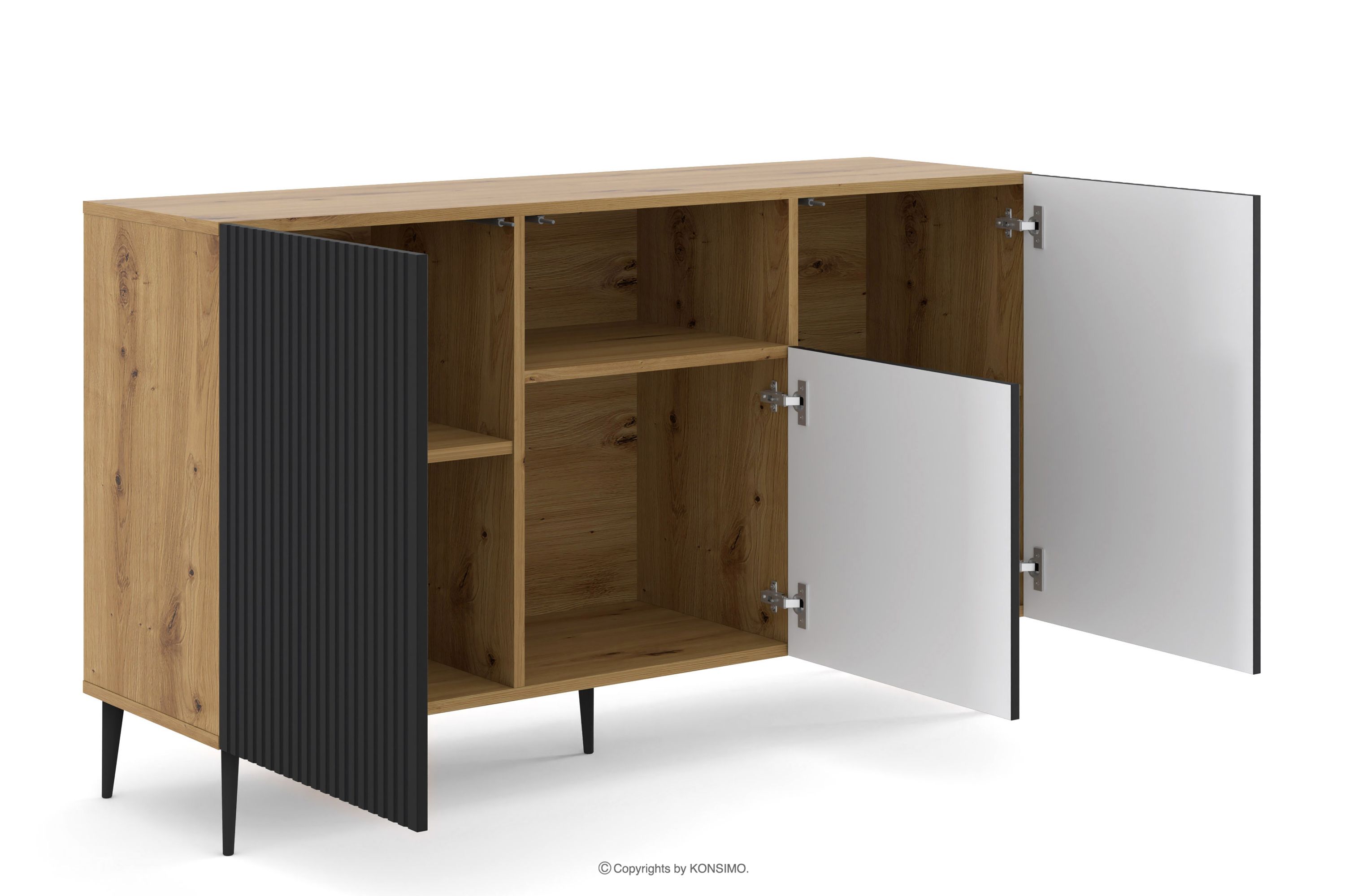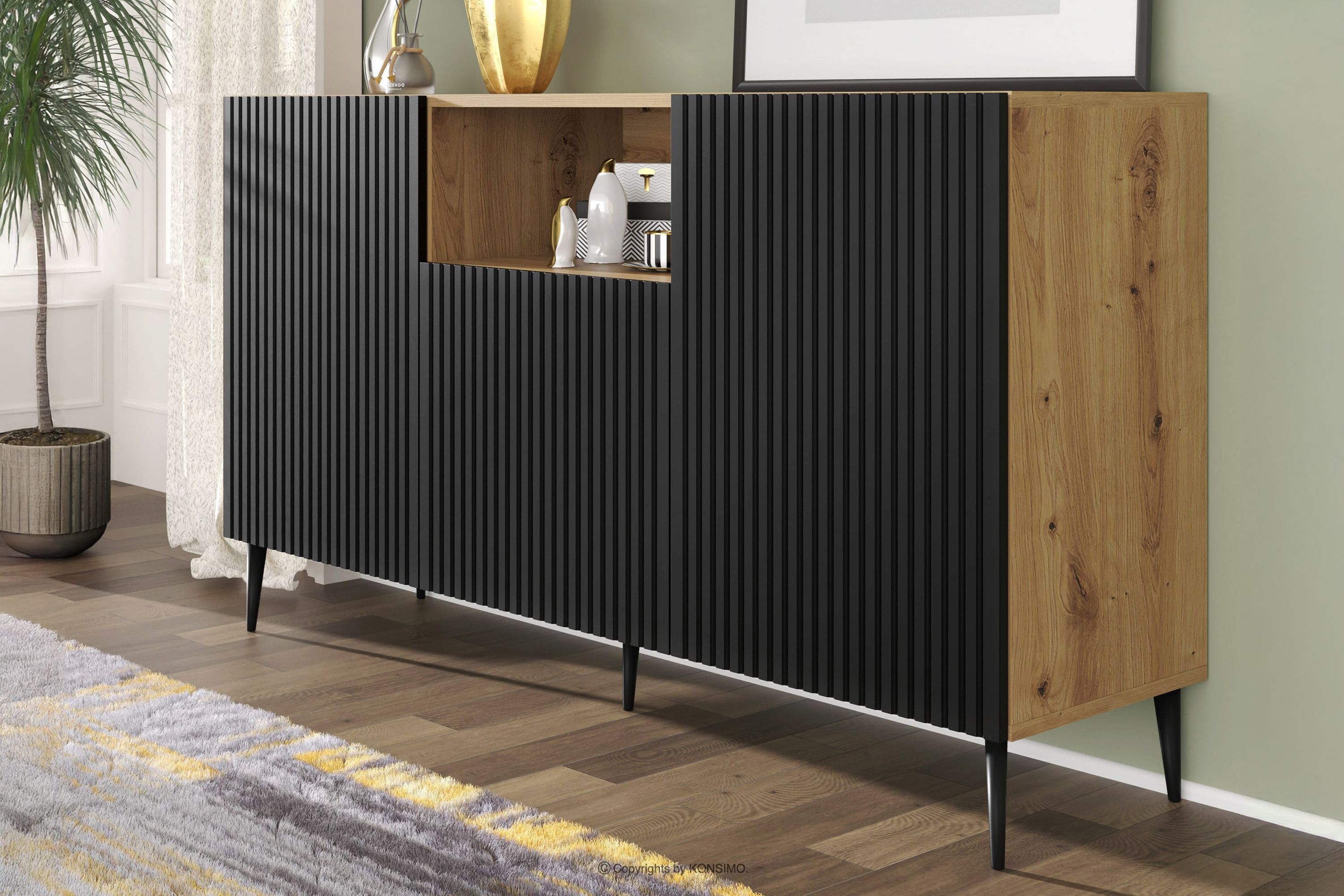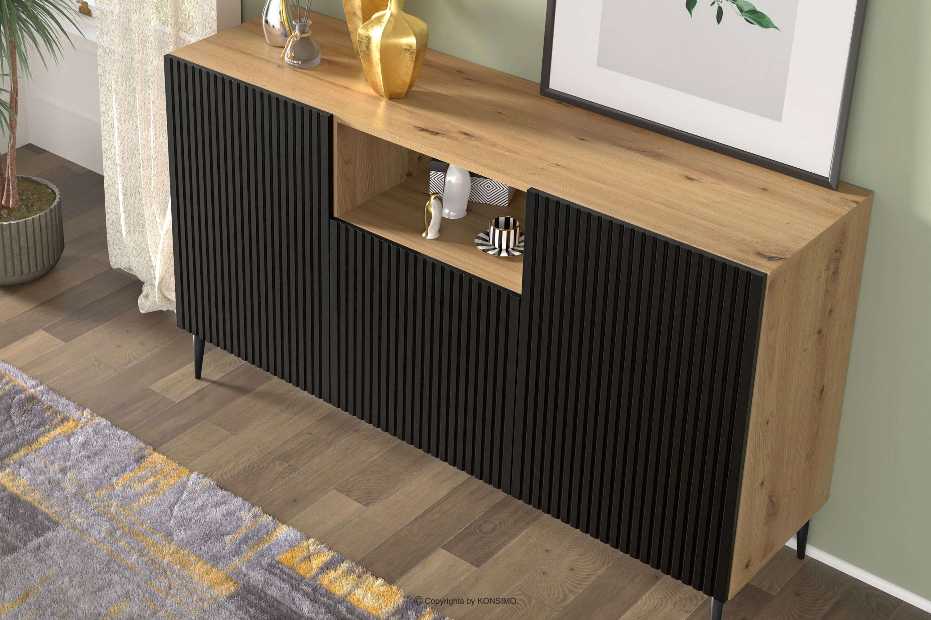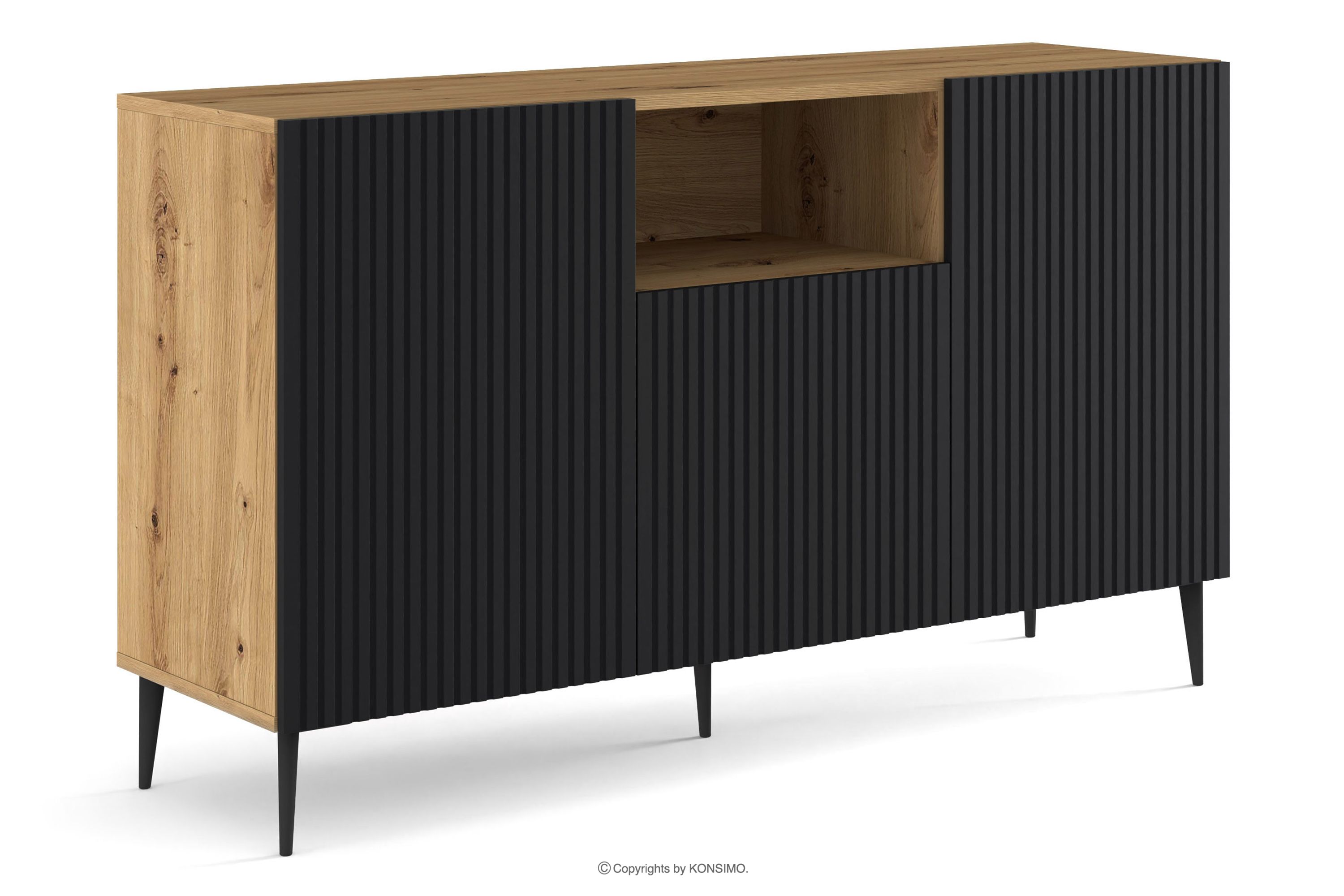 REMO Objav celú kolekciu Moderná komoda na nožičkách s lamelami dub artisan/cierne- farba dub artisan/čierna