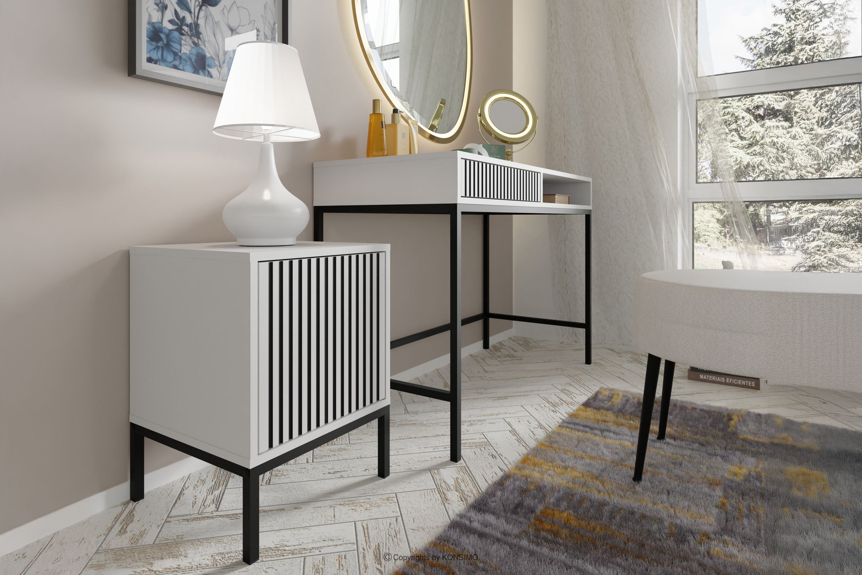 Písací stôl so zásuvkou na čiernych nohách biely/čierny je kombináciou výnimočného dizajnu, solídneho spracovania a funkčnosti. Boli vytvorené pre ľudí, ktorí si cenia estetiku a pohodlie pri každodennom používaní. Jednoduché, minimalistické formy obohatené o jemné detaily sú v súlade s najnovšími trendmi v interiérovom dizajne, vďaka čomu harmonicky zapadnú do rôznych usporiadaní.