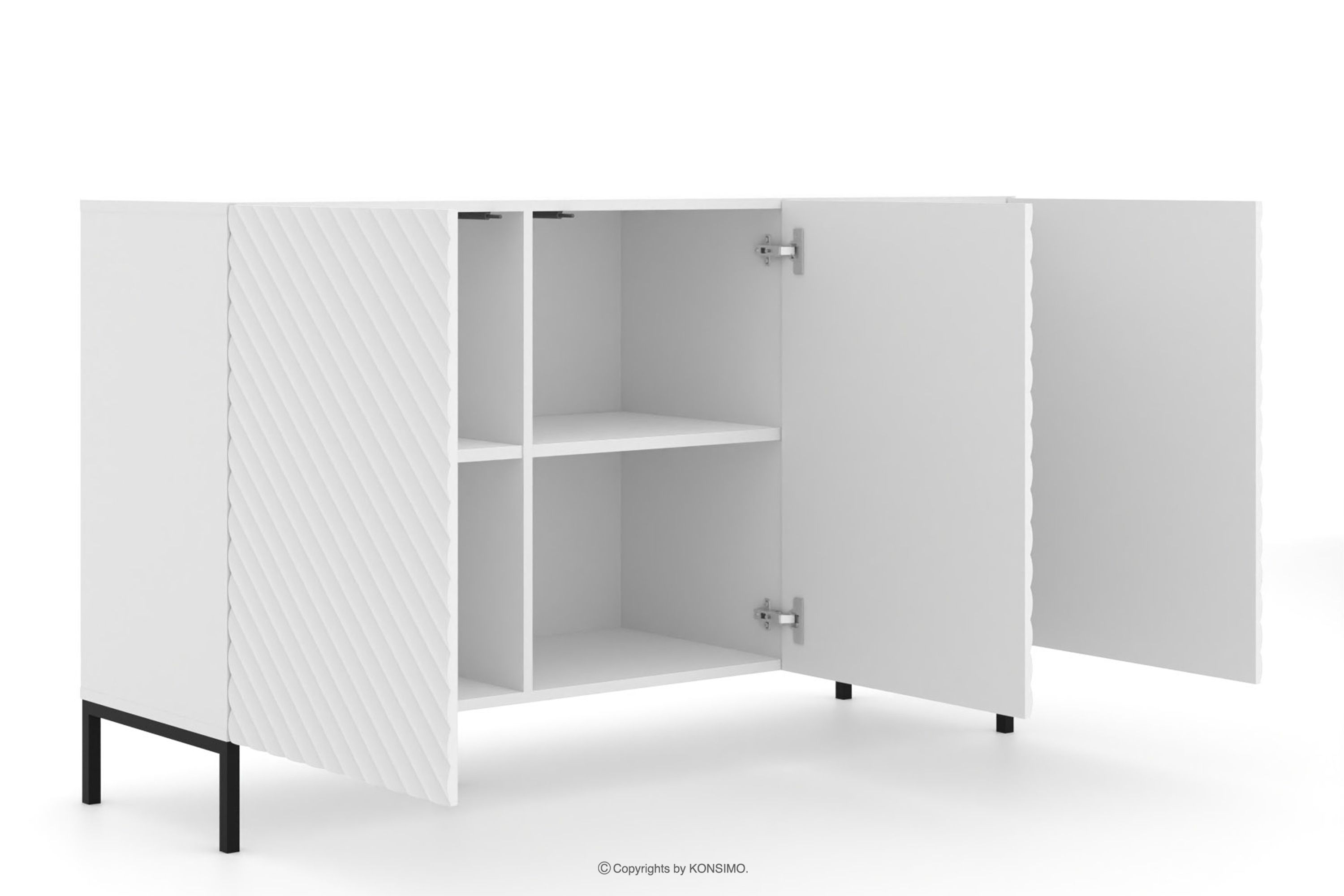 Moderná biela komoda na čiernych nožičkách je kombináciou výnimočného dizajnu, solídneho spracovania a funkčnosti. Boli vytvorené pre ľudí, ktorí si cenia estetiku a pohodlie pri každodennom používaní. Jednoduché, minimalistické formy obohatené o jemné detaily sú v súlade s najnovšími interiérovými trendmi, vďaka čomu harmonicky zapadnú do rôznych aranžmánov. Tento nábytok je vynikajúcou voľbou pre každého, kto si chce vytvoriť moderný a zároveň útulný interiér, kde pohodlie a štýl idú ruka v ruke.