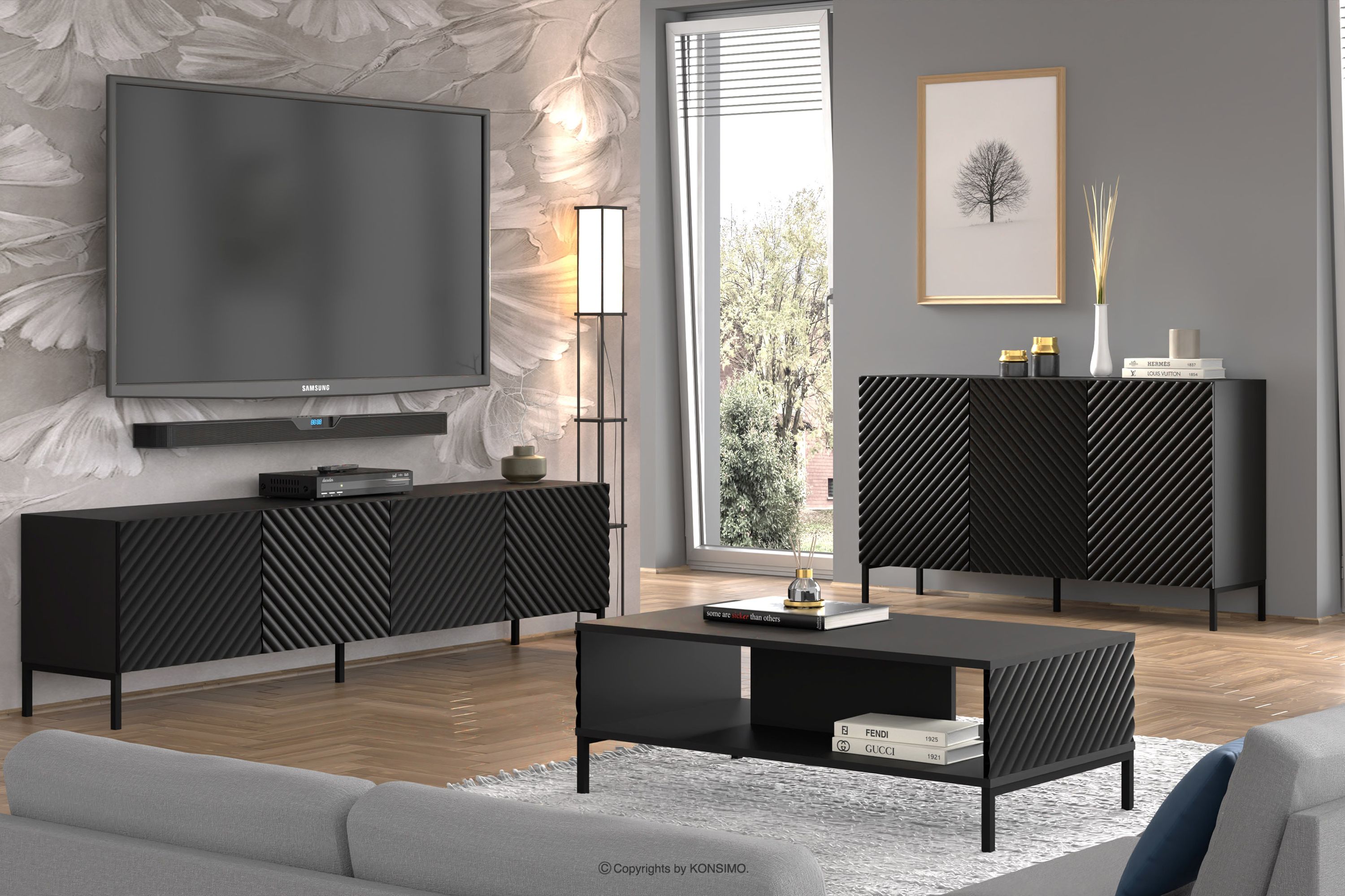 ADENO Objav celú kolekciu Veľká moderná čierna komoda na trecích nožičkách- farba čierna