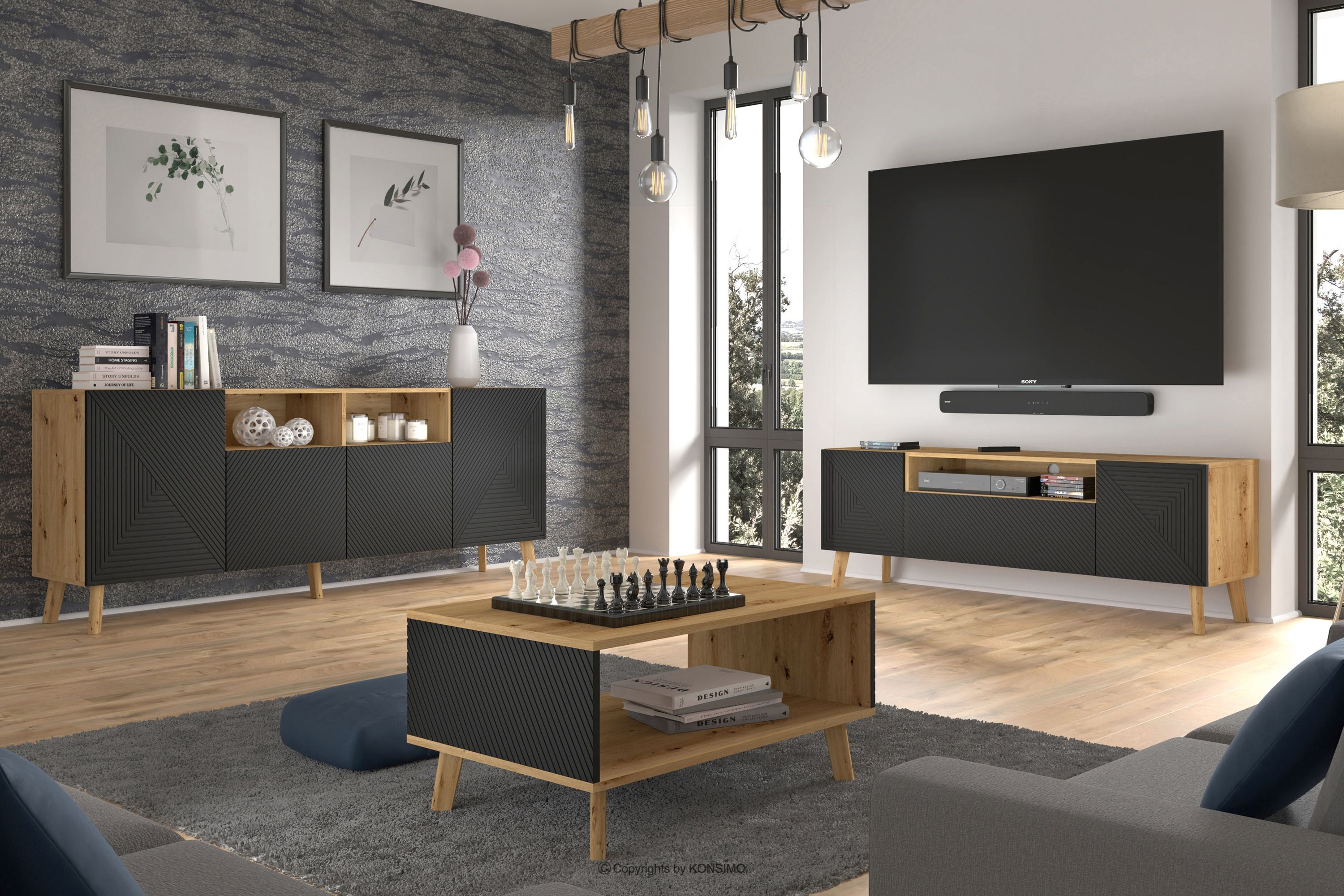 produktu RTV skrinka do obývačky dub artisan/čierna