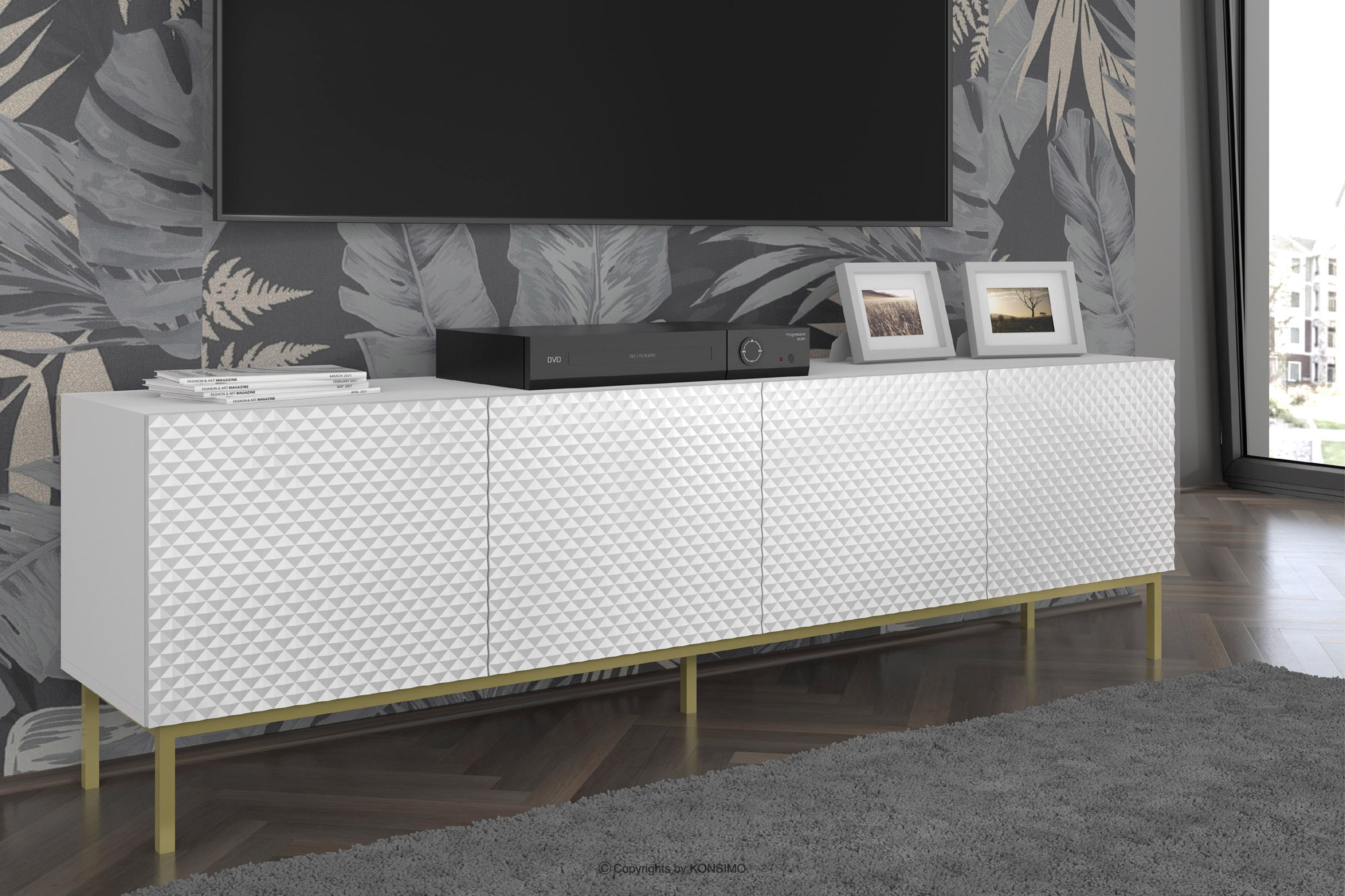 REMUS Objav celú kolekciu RTV skrinka 200 cm na zlatých nožičkách biela- farba biela