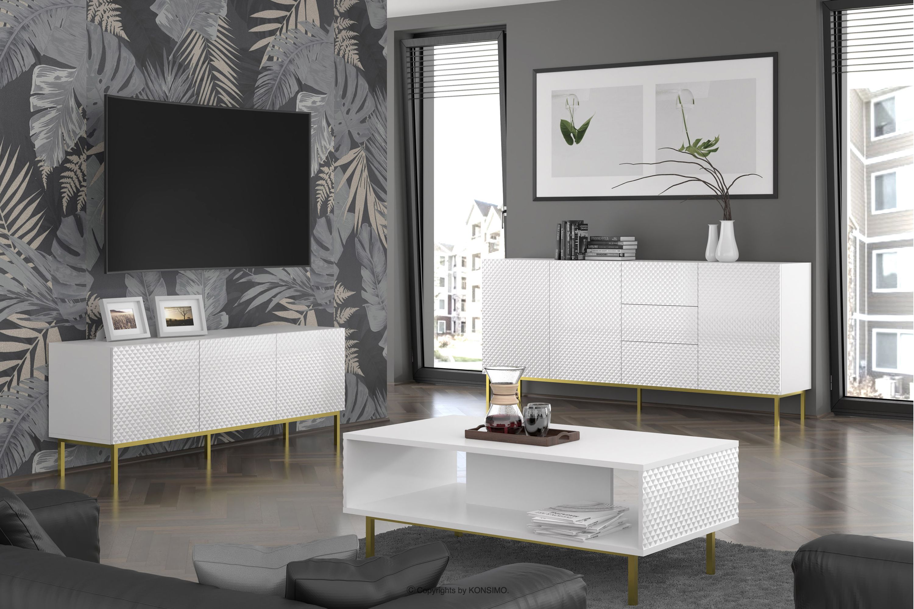 REMUS Objav celú kolekciu RTV skriňa 150 cm na zlatých nožičkách biela- farba biela