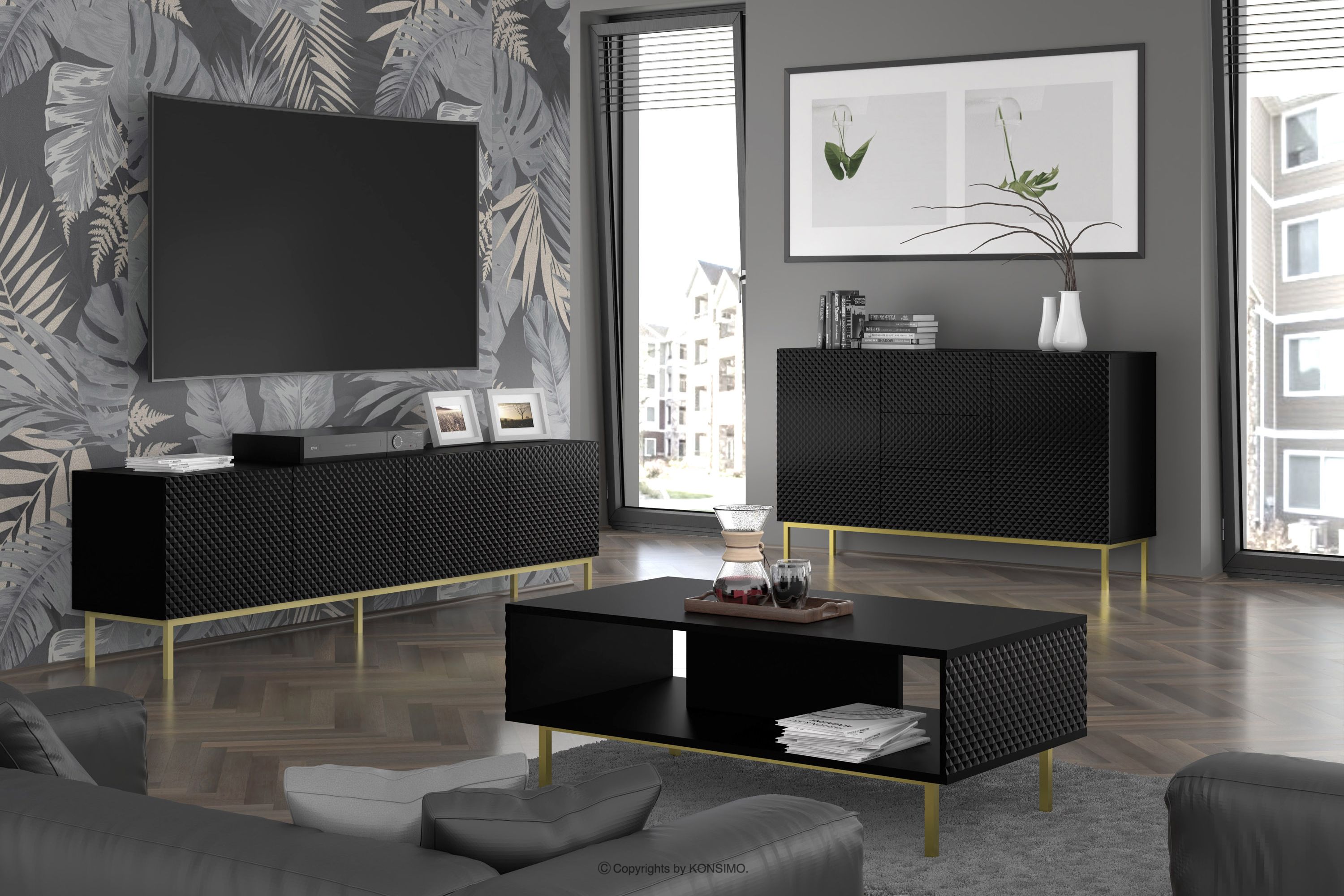 REMUS Objav celú kolekciu RTV skrinka na zlatých nožičkách čierna- farba čierna