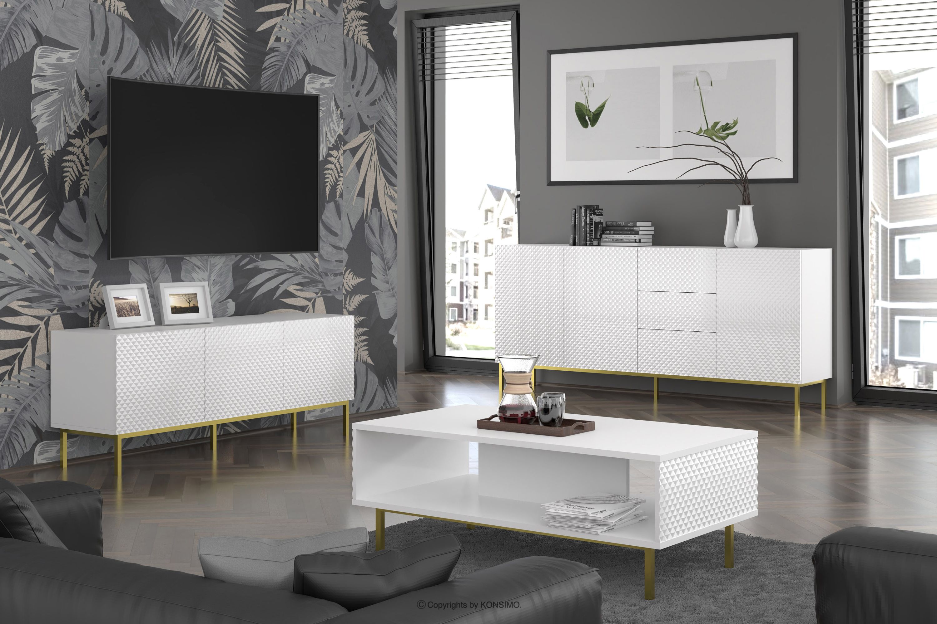 REMUS Objav celú kolekciu RTV skrinka na zlatých nožičkách biela- farba biela