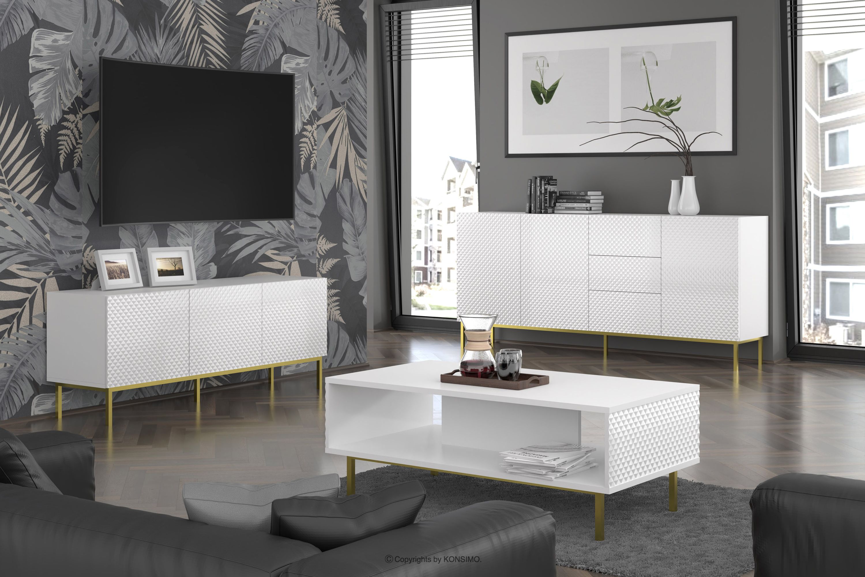 REMUS Objav celú kolekciu RTV skrinka na zlatých nožičkách biela- farba biela