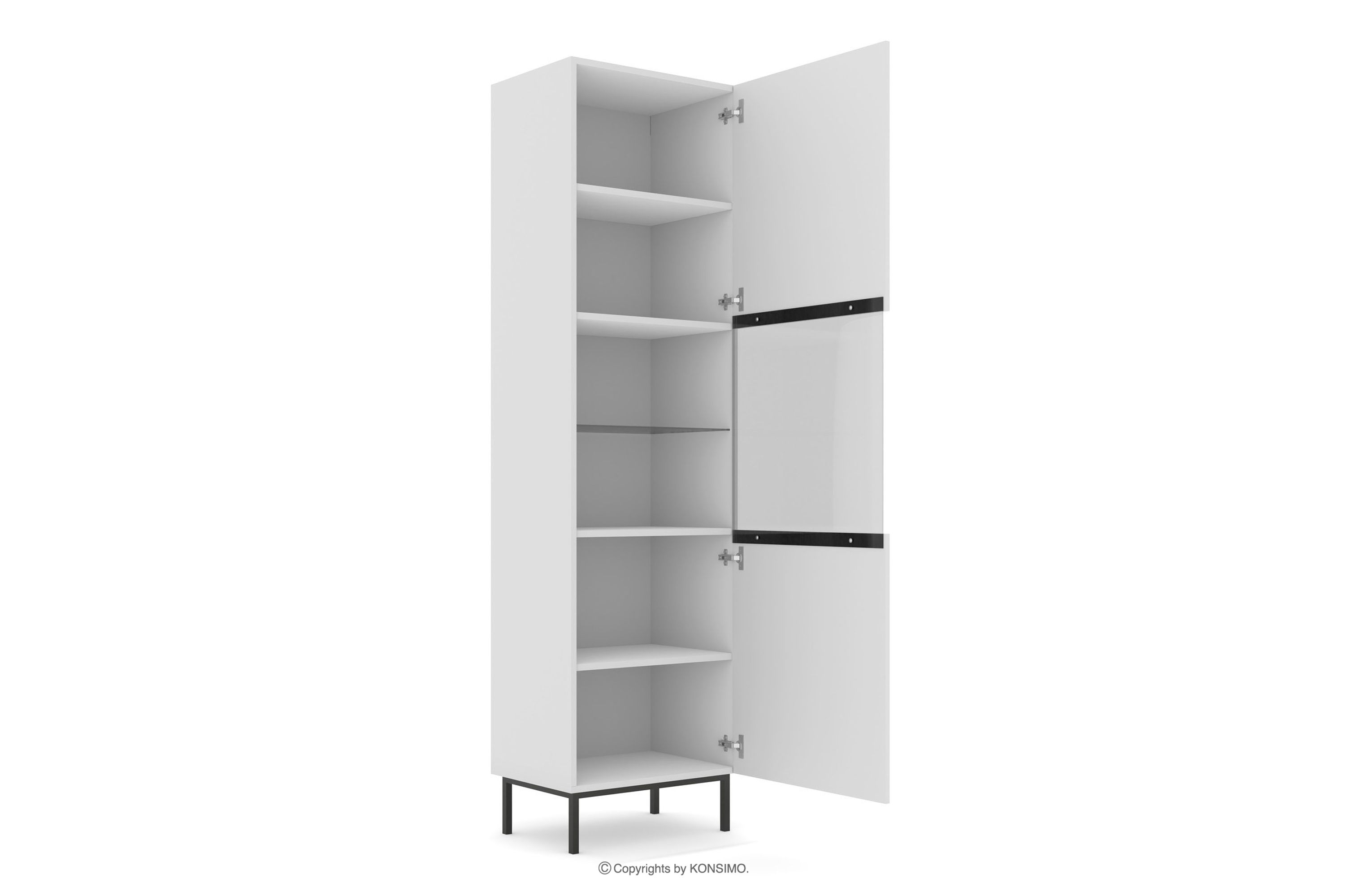 Biela vitrína na čiernych nohách je kombináciou výnimočného dizajnu, solídneho spracovania a funkčnosti. Boli vytvorené pre ľudí, ktorí si cenia estetiku a pohodlie pri každodennom používaní. Jednoduché, minimalistické formy obohatené o jemné detaily sú v súlade s najnovšími trendmi v interiérovom dizajne, vďaka čomu harmonicky zapadajú do rôznych aranžmánov. Tento nábytok je vynikajúcou voľbou pre každého, kto si chce vytvoriť moderný a zároveň útulný interiér, kde pohodlie a štýl idú ruka v ruke.