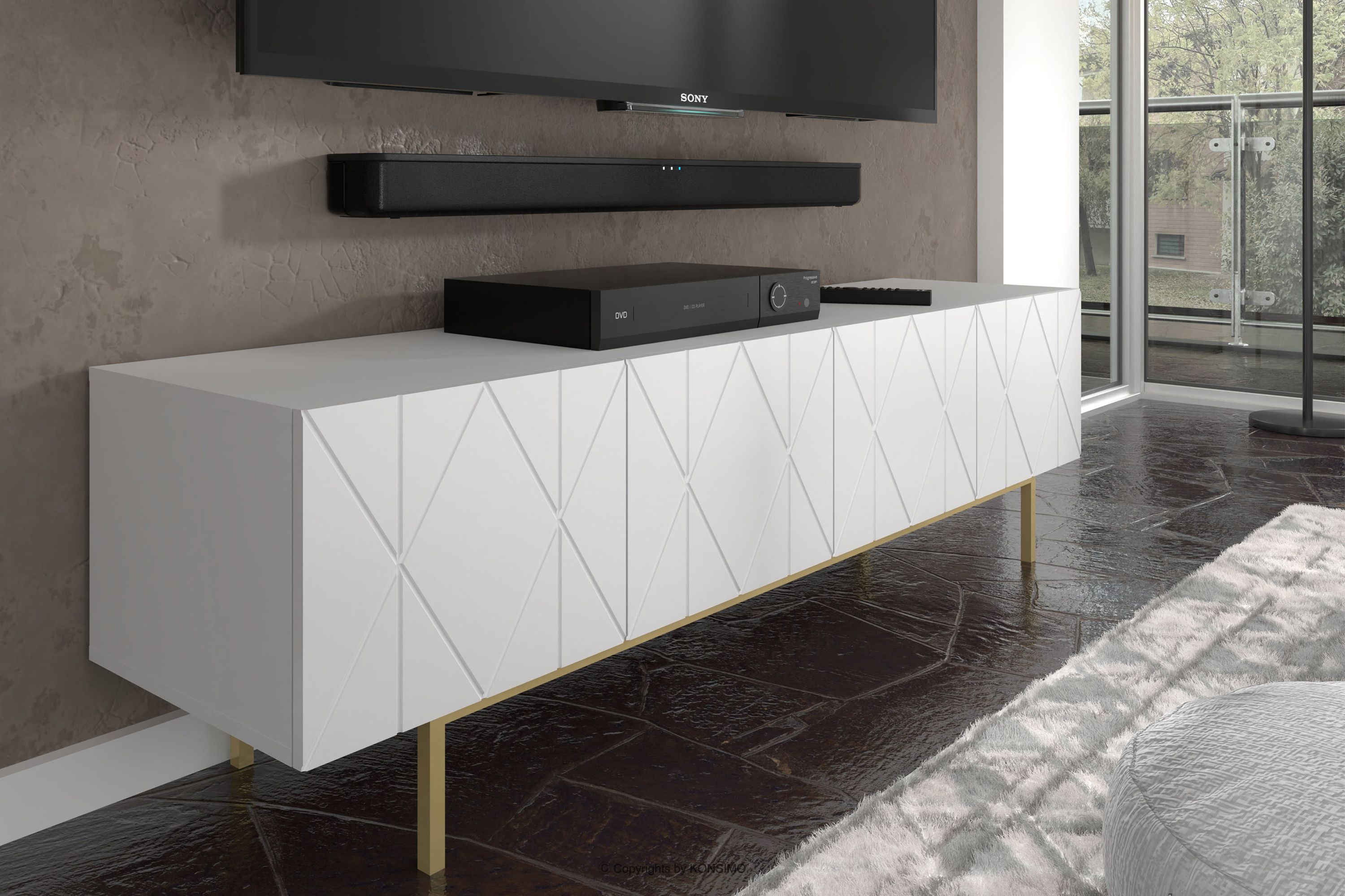NEMES Objav celú kolekciu RTV skrinka moderná na zlatých nohách matná biela- farba biela