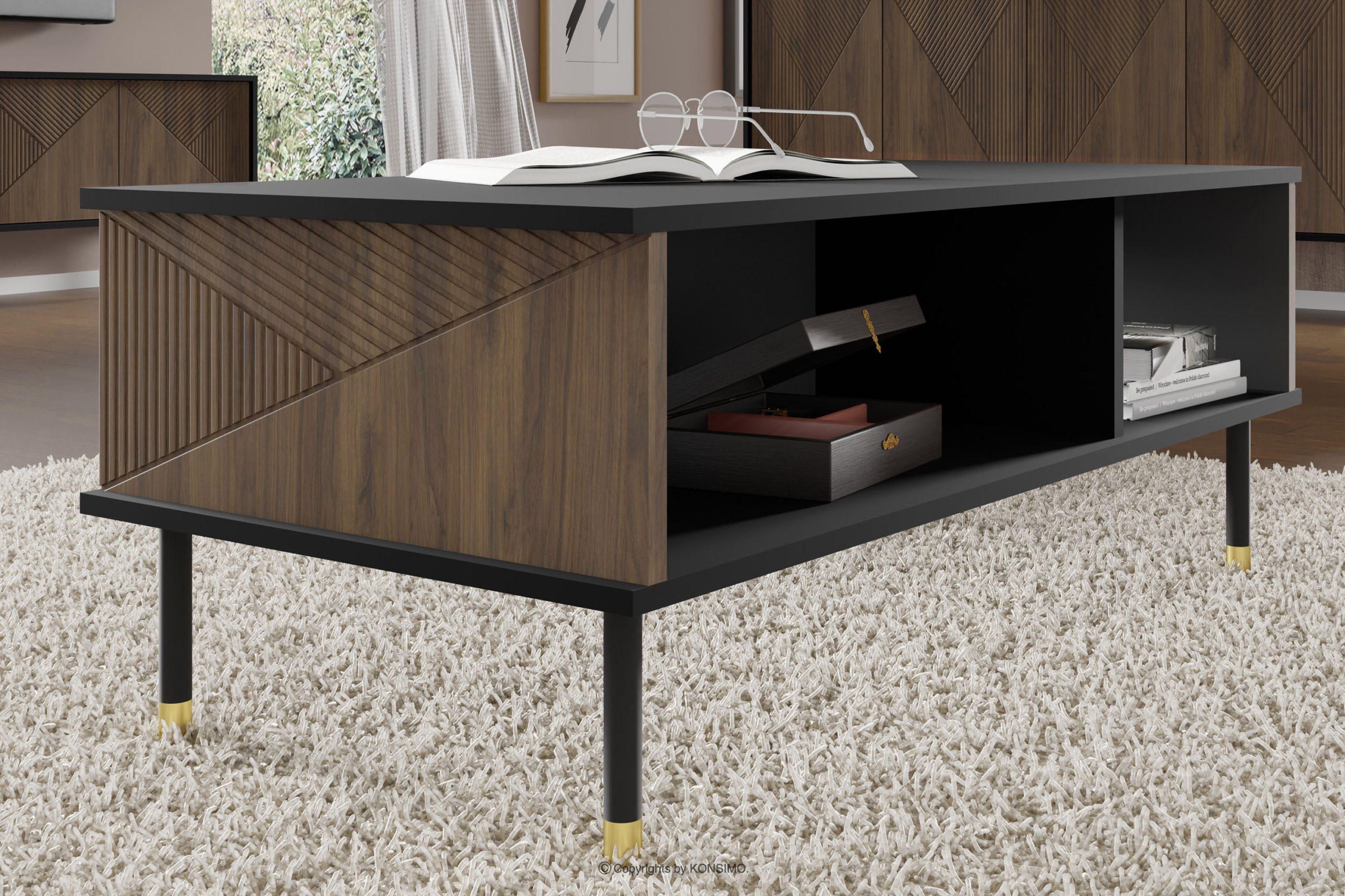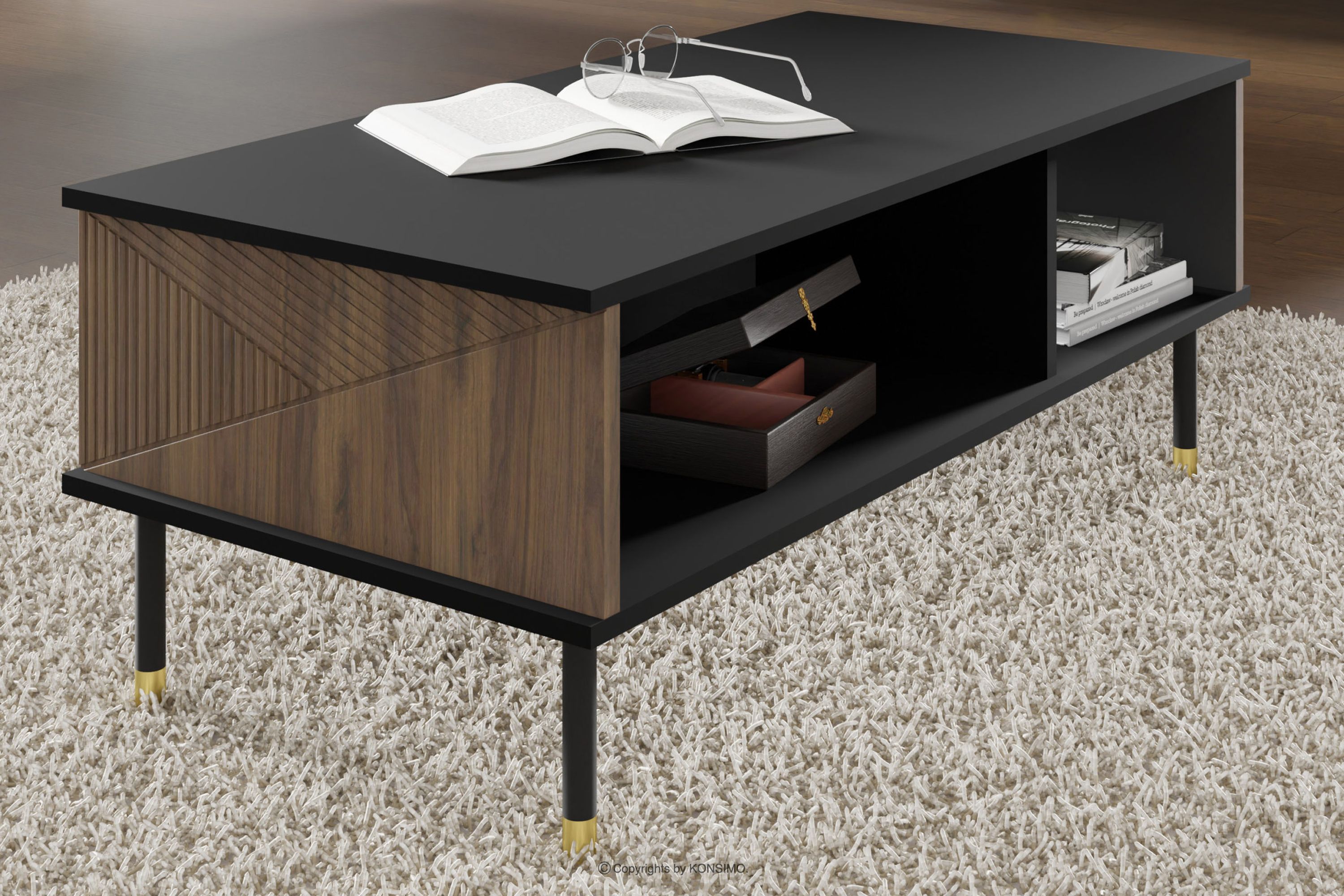 TULA Objav celú kolekciu Konferenčný stolík s policou čierna/dub catania- farba čierna/dub catania