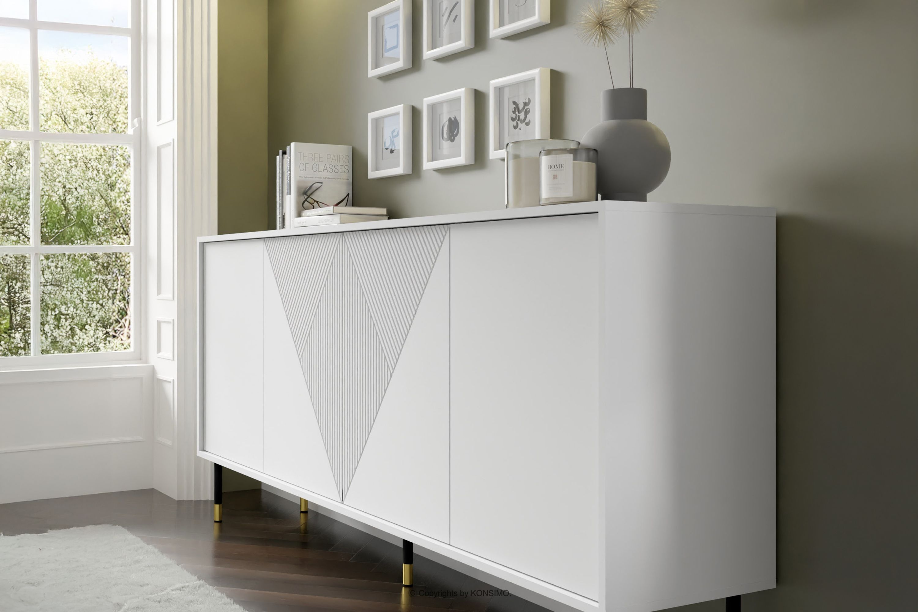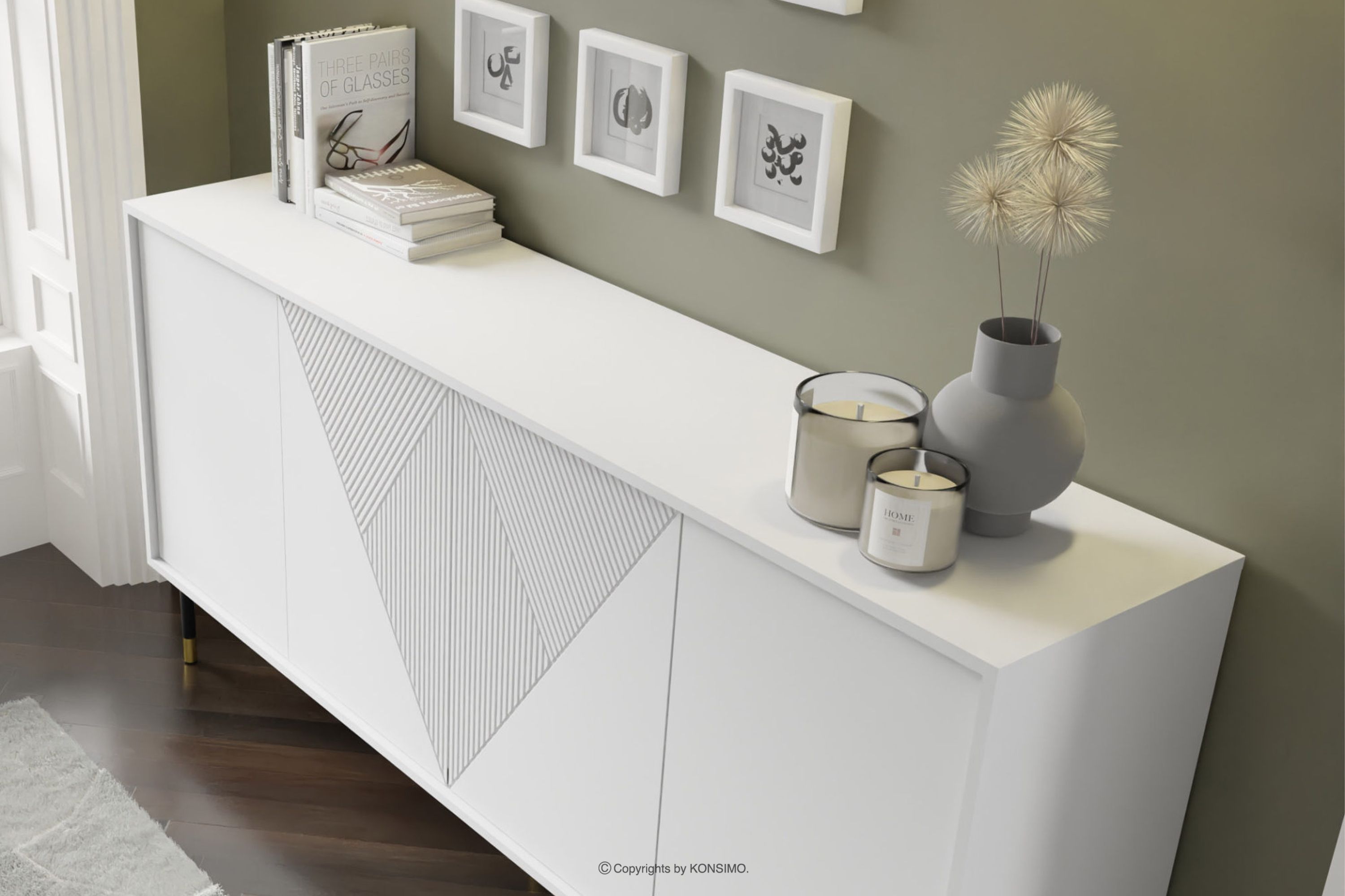 Elegantná veľká biela komoda do obývačky je kombináciou výnimočného dizajnu, solídneho spracovania a funkčnosti. Bola vytvorená pre ľudí, ktorí si cenia estetiku a pohodlie pri každodennom používaní. Jednoduché, minimalistické formy obohatené o jemné detaily sú v súlade s najnovšími trendmi v interiérovom dizajne, vďaka čomu harmonicky zapadnú do rôznych aranžmánov. Tento nábytok je vynikajúcou voľbou pre každého, kto si chce vytvoriť moderný a zároveň útulný interiér, kde pohodlie a štýl idú ruka v ruke.