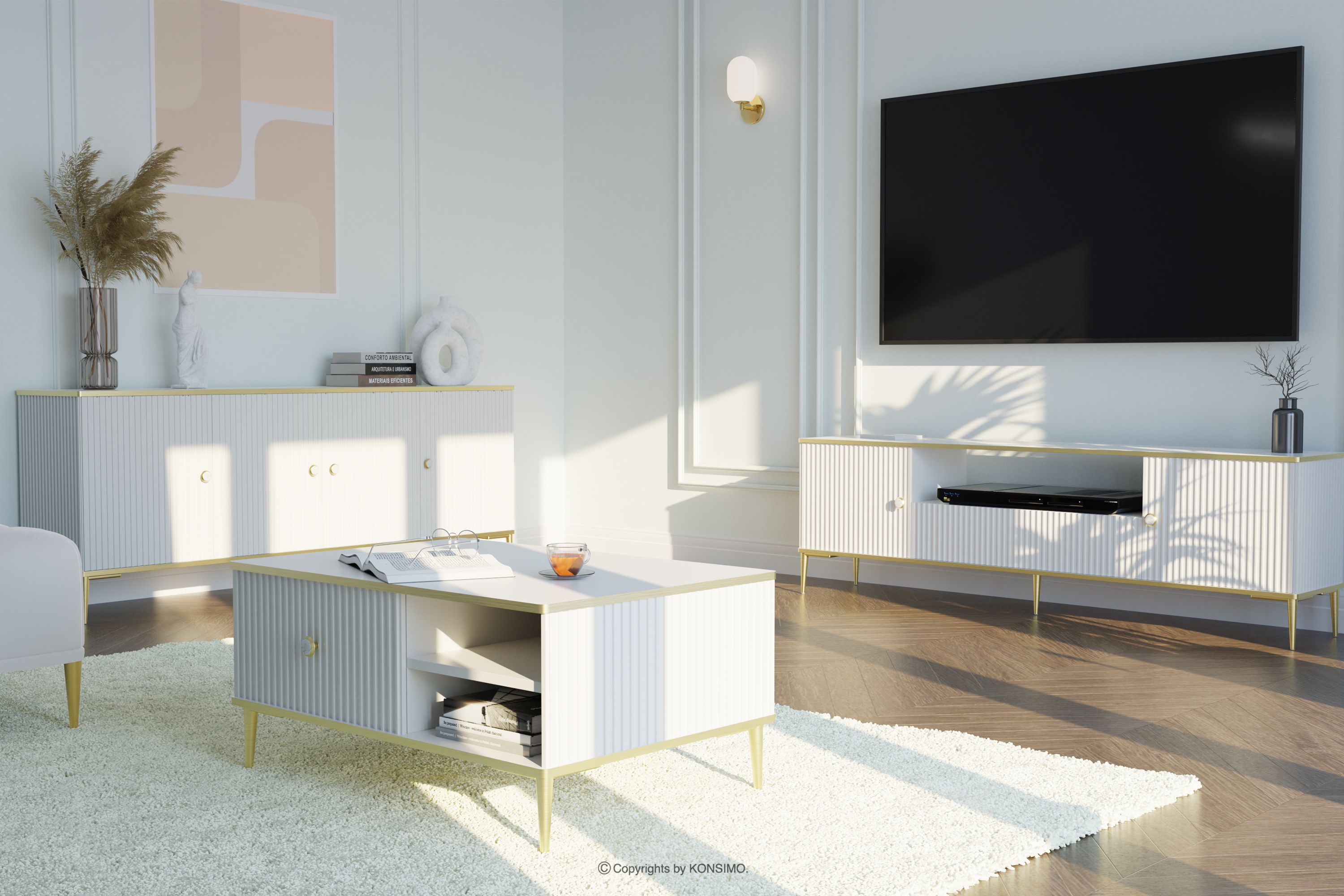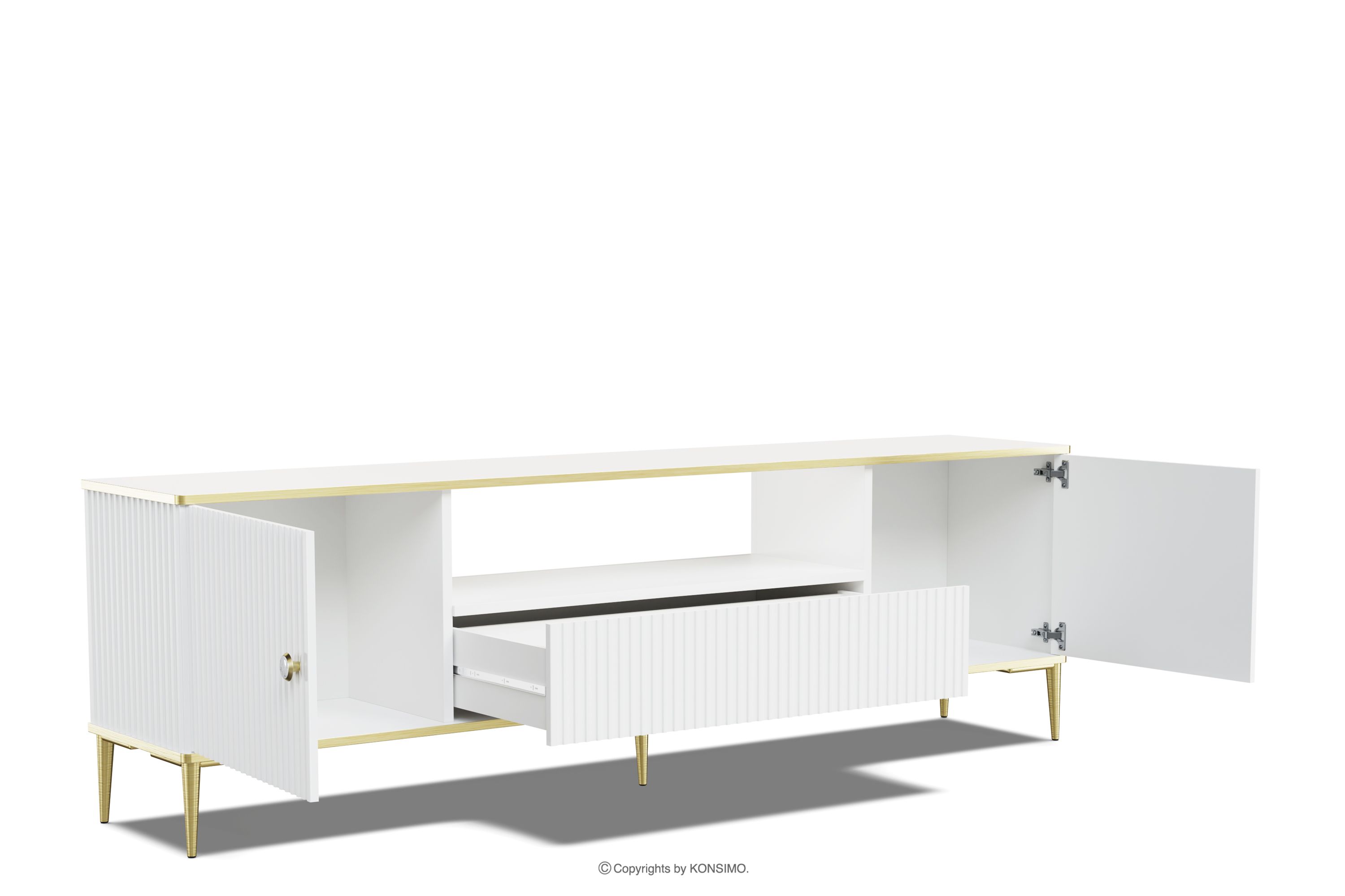 produktu RTV glamour skrinka na zlatých nožičkách biela