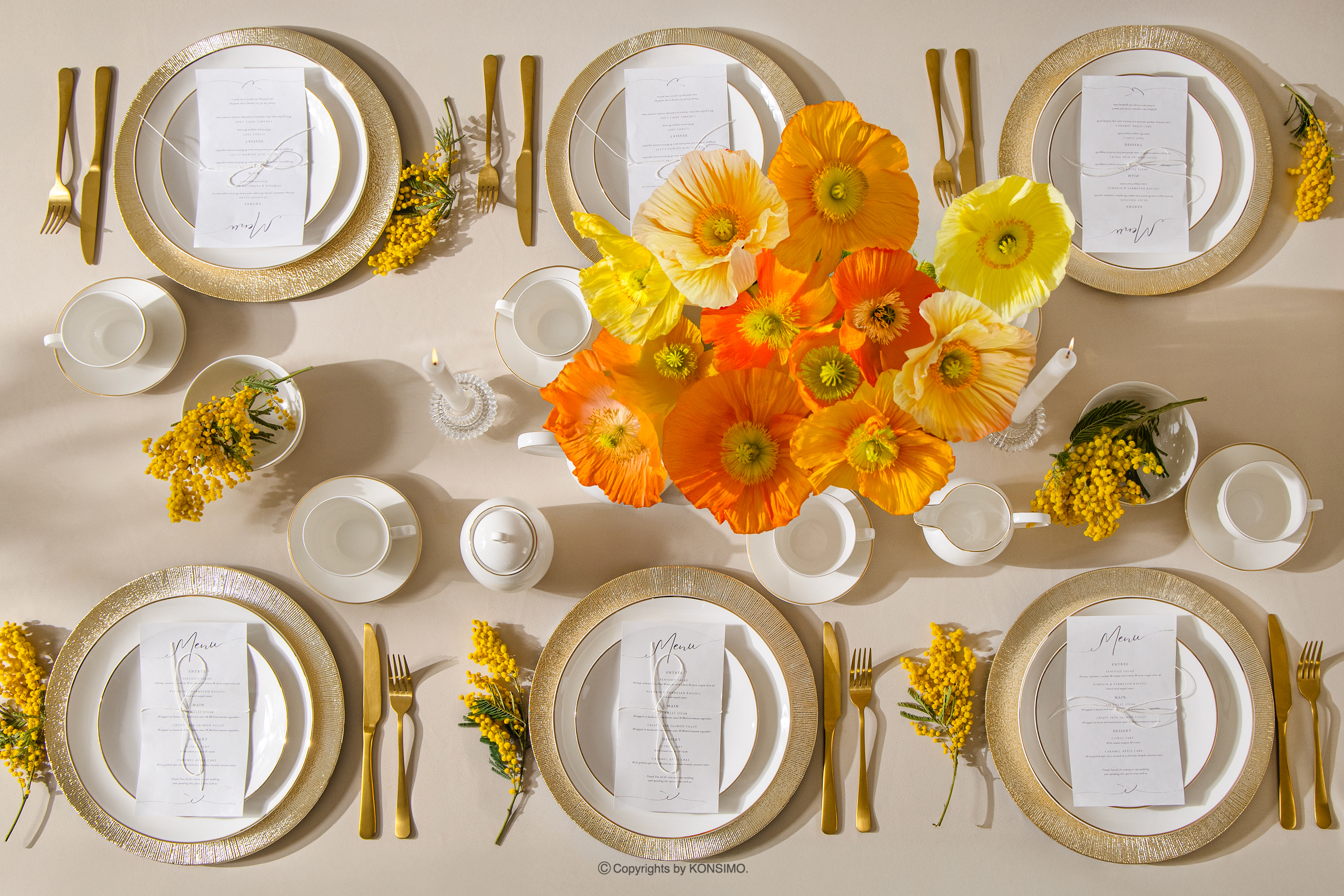 Jedálenský tanier z tvrdého porcelánu ecru/zlatá 6 ks. - klasika, elegancia a výnimočná odolnosť. Naša kolekcia je kombináciou klasickej elegancie, spoľahlivej odolnosti a špičkového spracovania. Je ideálnou voľbou pre tých, ktorí oceňujú krásu prestierania a funkčnosť pri každodennom používaní. Teplá, mierne krémová farba riadu sa dokonale kombinuje s rôznorodým stolovaním a hodí sa do klasických aj moderných interiérov.