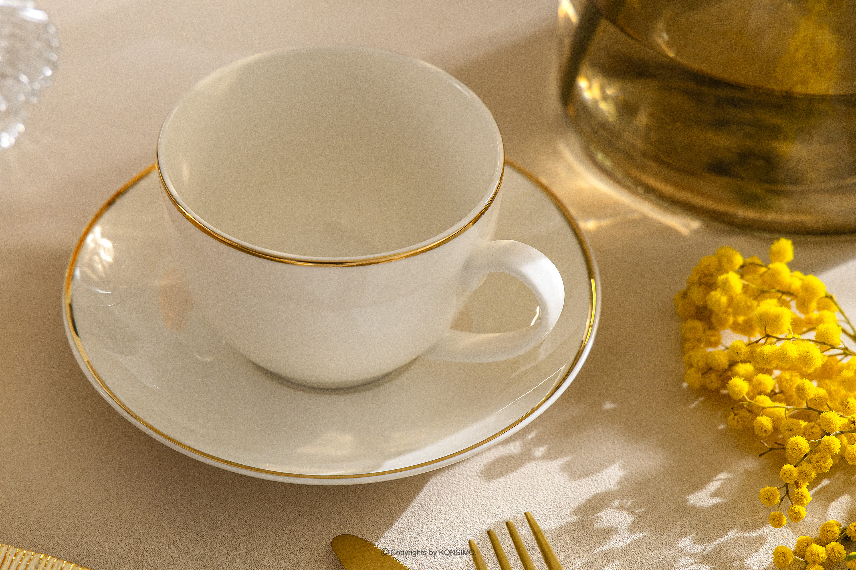 AD BELLA Objav celú kolekciu Šálka na kávu s podšálkem tvrdý porcelán ecru/zlatá 6 ks.- farba ecru/zlatá