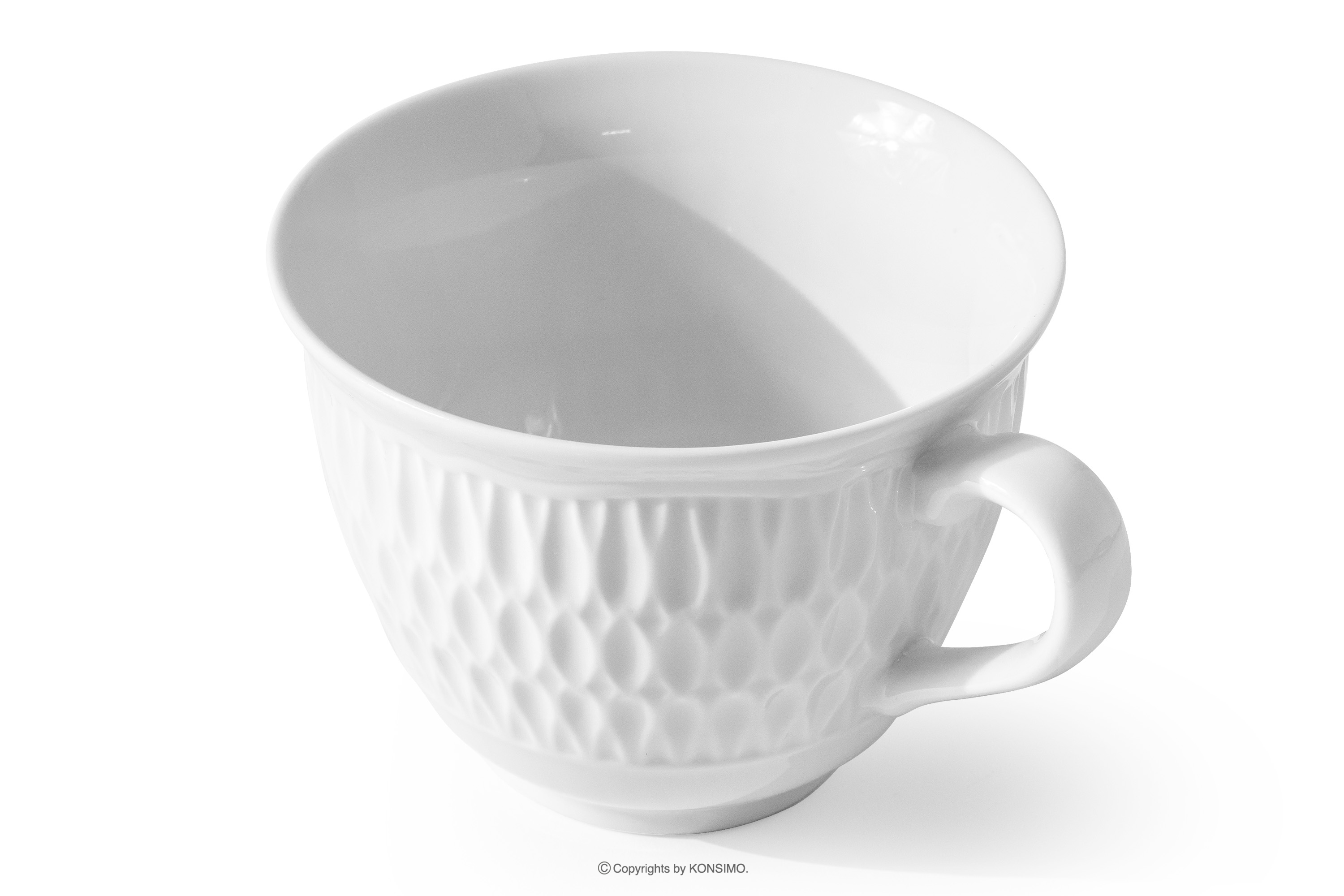 Porcelánový šálok biely - vynikajúce spracovanie pre najnáročnejších. Kolekcia prináša do vašej jedálne jemný nádych nadčasovej elegancie a spája sofistikovaný štýl, odolnosť a funkčnosť. Je ideálnou voľbou pre tých, ktorí oceňujú estetiku a kvalitu pri každodennom používaní aj pri výnimočných príležitostiach. Vyniká dokonalou povrchovou úpravou, ktorá podčiarkuje pozornosť venovanú detailom a vďaka ktorej riad vyzerá mimoriadne štýlovo na každom stole.