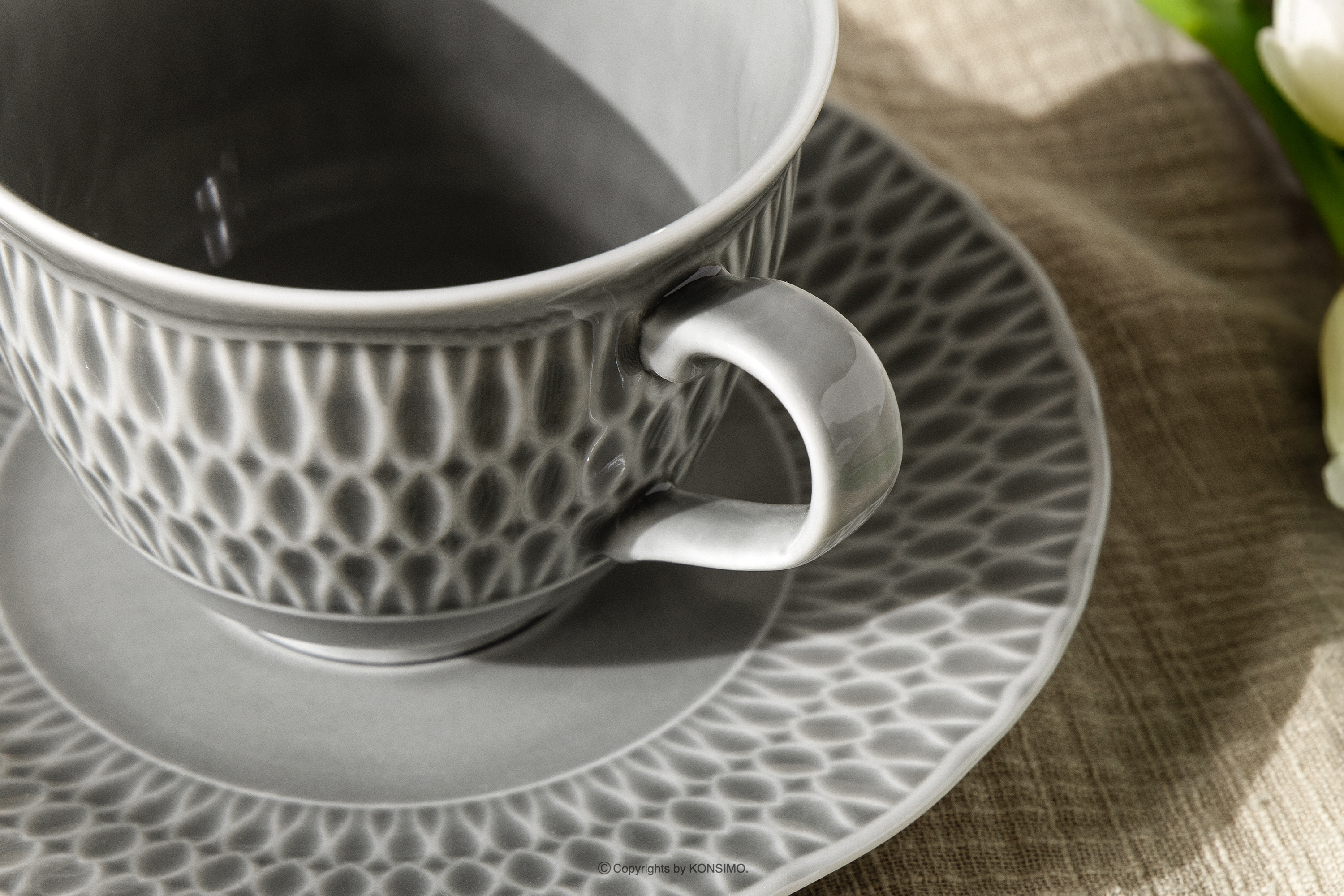 CMIELOW SOFIA Objav celú kolekciu Šálka a tanierik 2 ks z porcelánu sivej farby- farba šedá