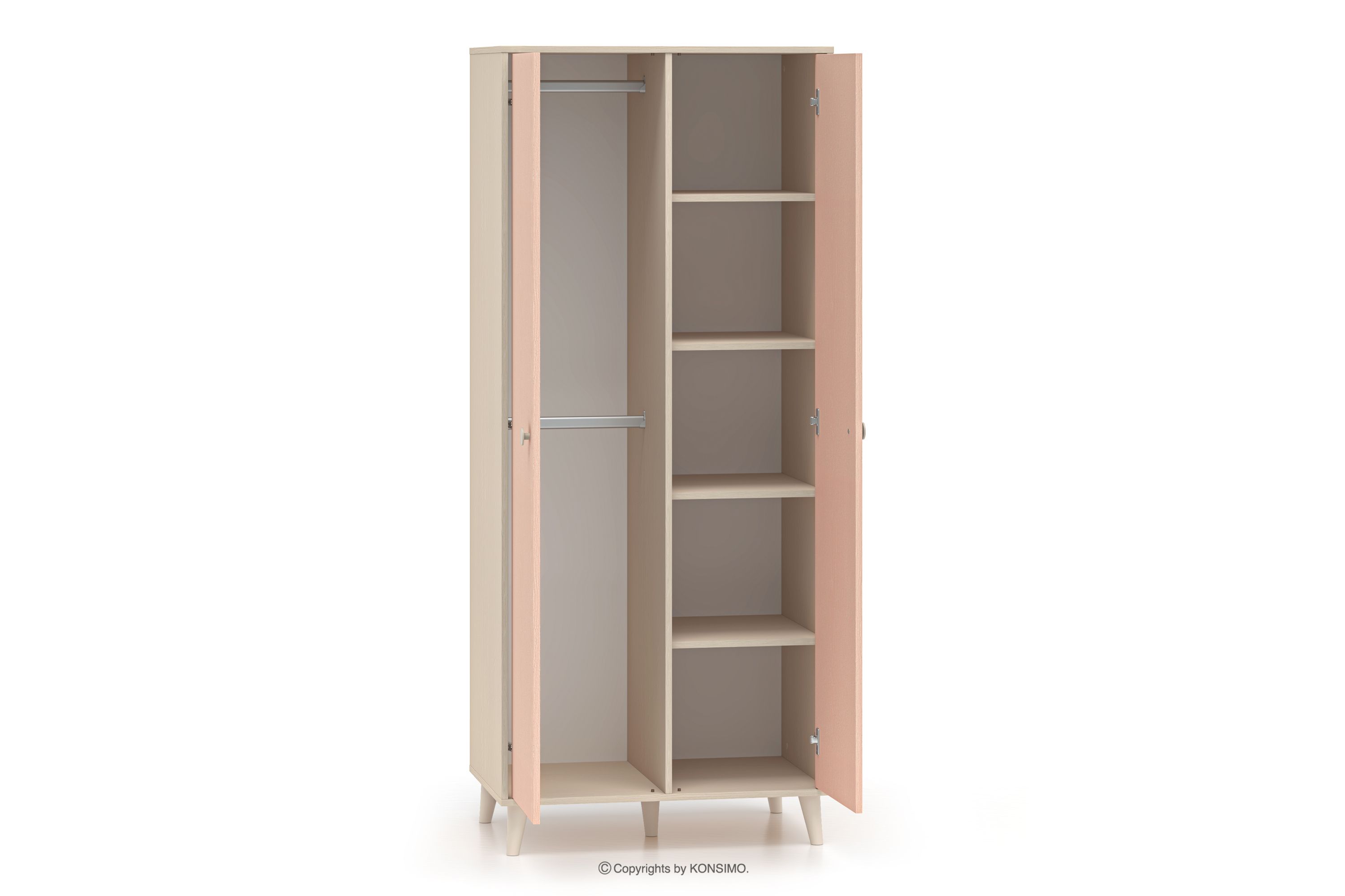 Šatníková skriňa do detskej izby ružová/béžová v sebe spája moderný dizajn s najvyššou kvalitou spracovania, čo zaručuje pohodlie a bezpečnosť používania. Vďaka pevným materiálom a prepracovaným detailom je nábytok odolný, funkčný a dokonale vyhovuje potrebám najmenších používateľov. Jemné pastelové farby dodávajú interiéru priateľský, harmonický charakter, vhodný na hru aj odpočinok.