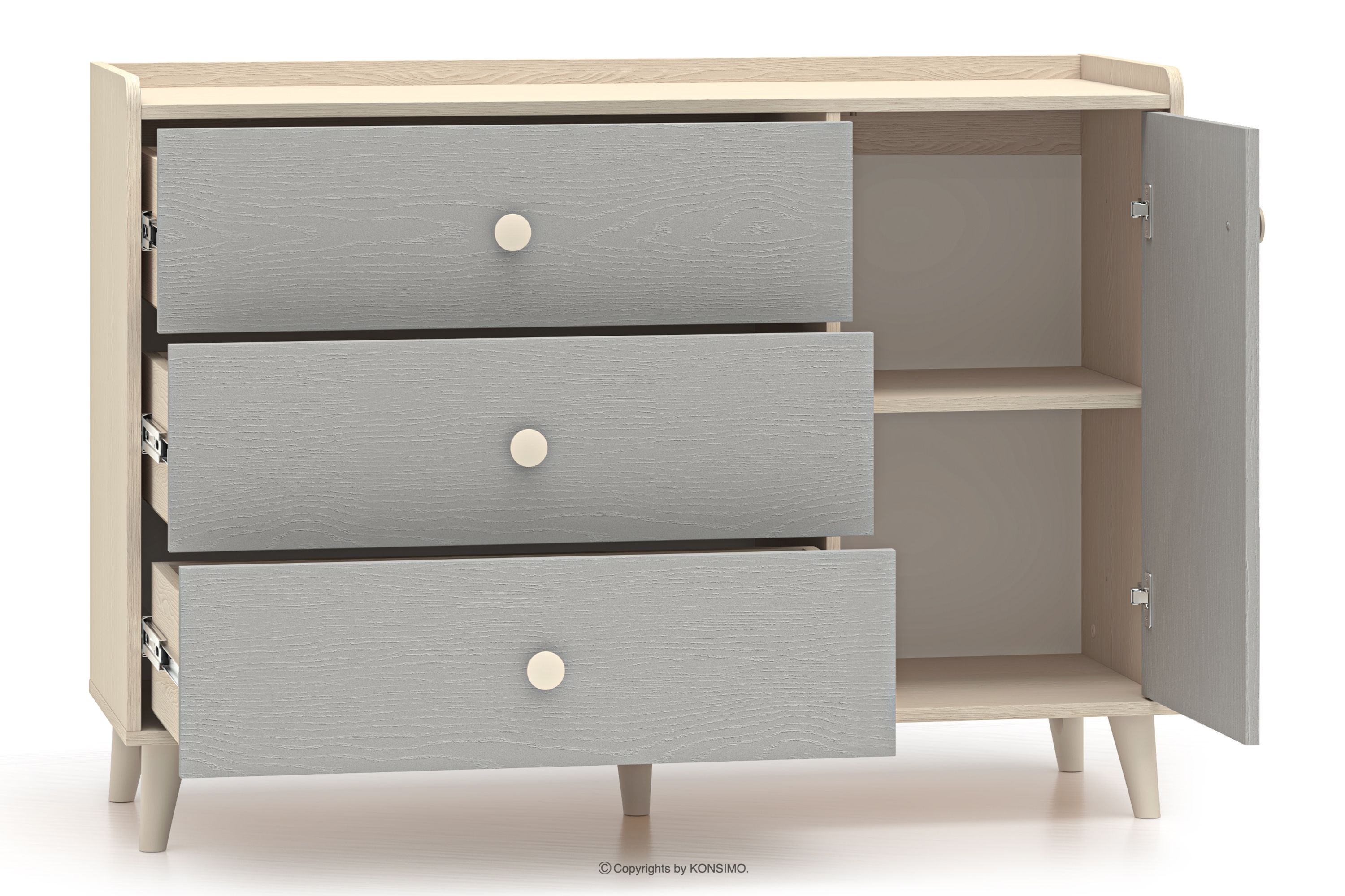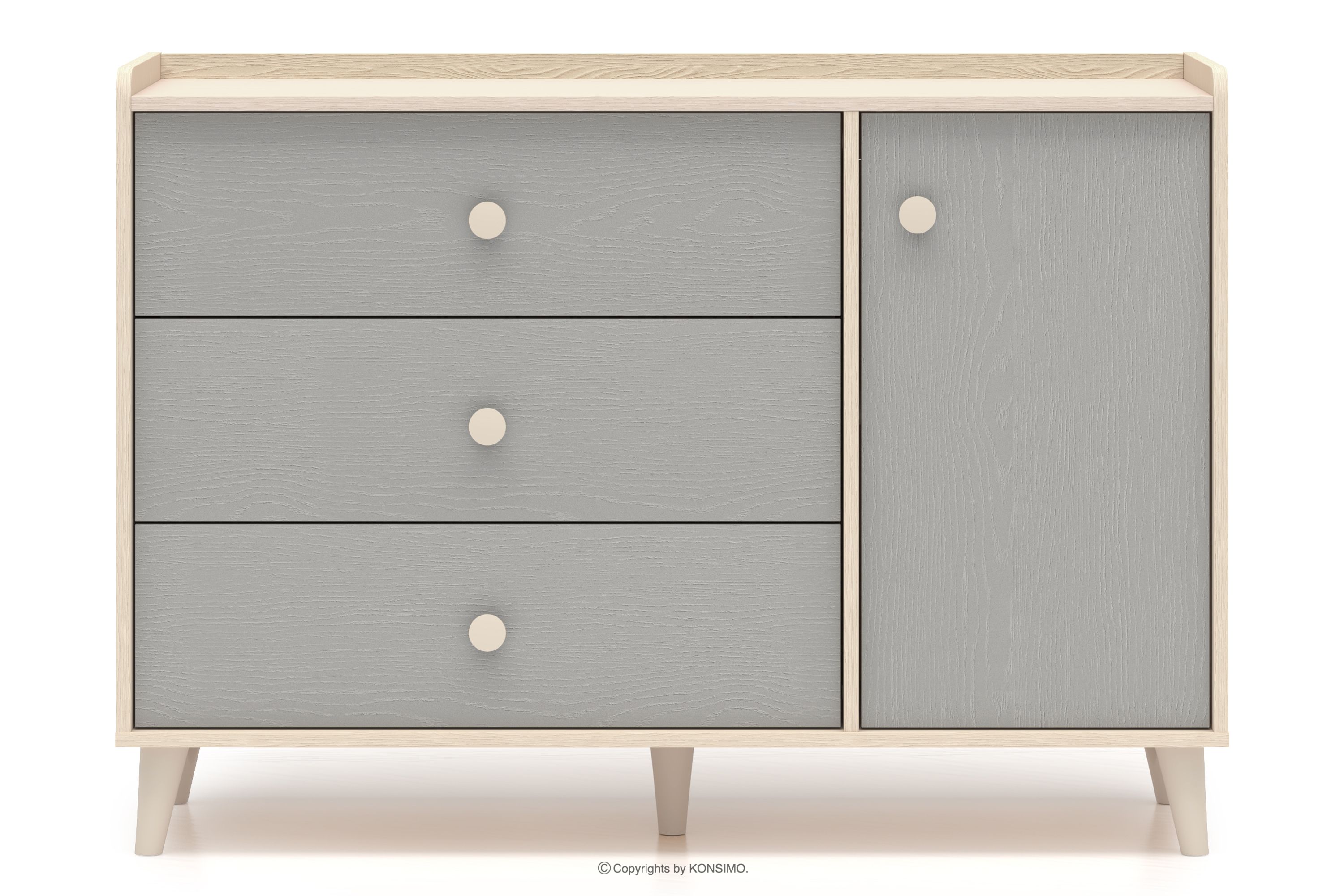 PUNGI Objav celú kolekciu Veľká komoda do detskej izby so zásuvkami a policou sivá/béžová- farba sivá/béžová