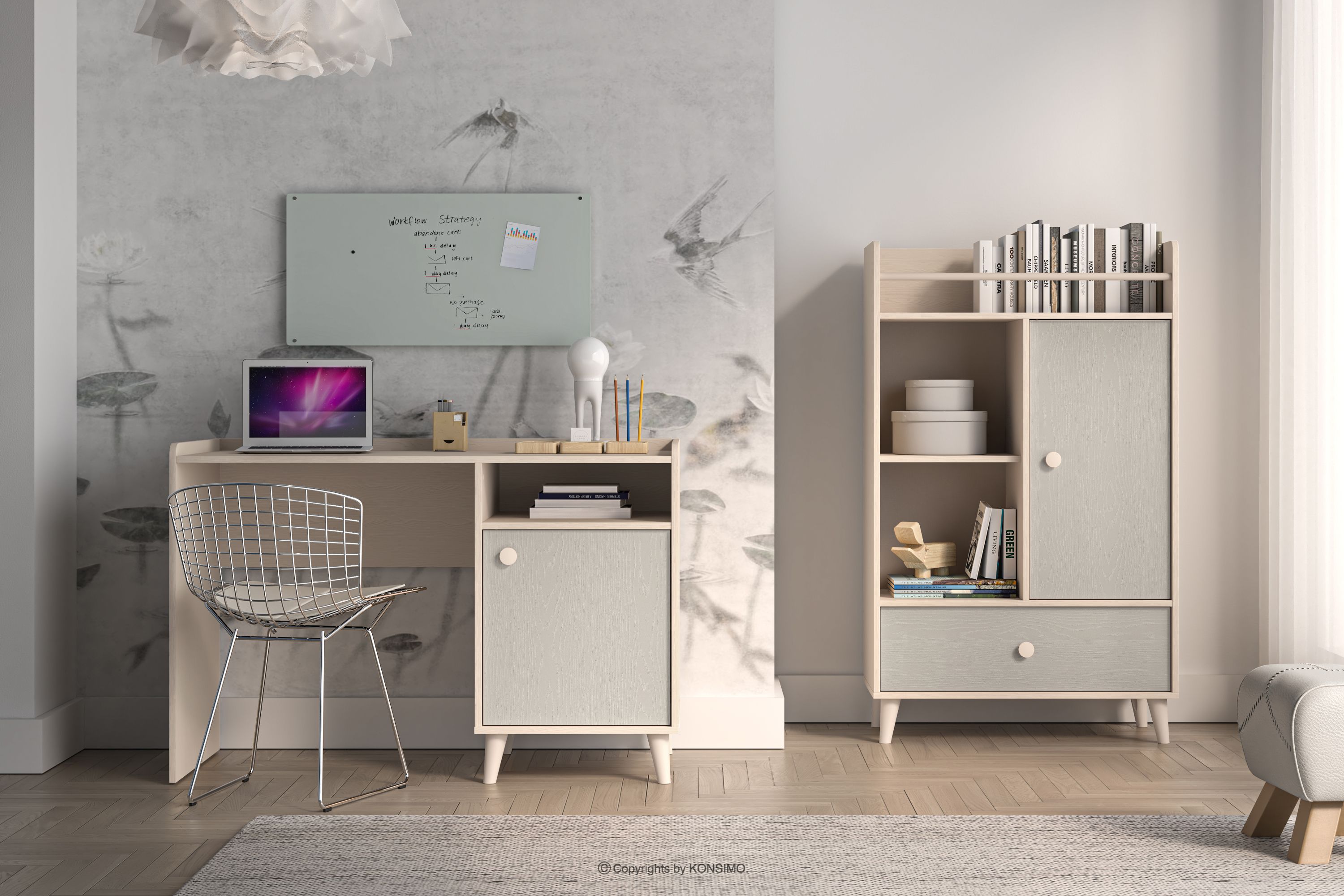 PUNGI Objav celú kolekciu Detský písací stôl s policami sivá/béžová- farba sivá/béžová