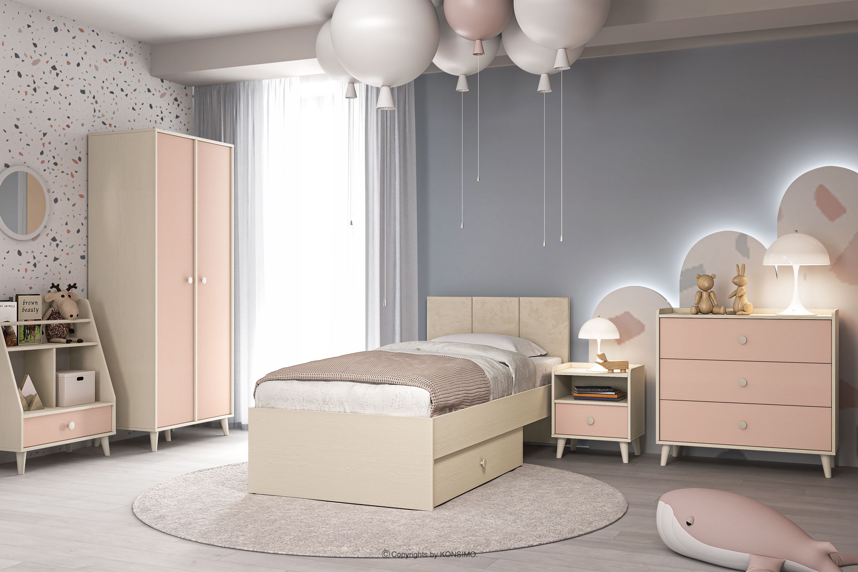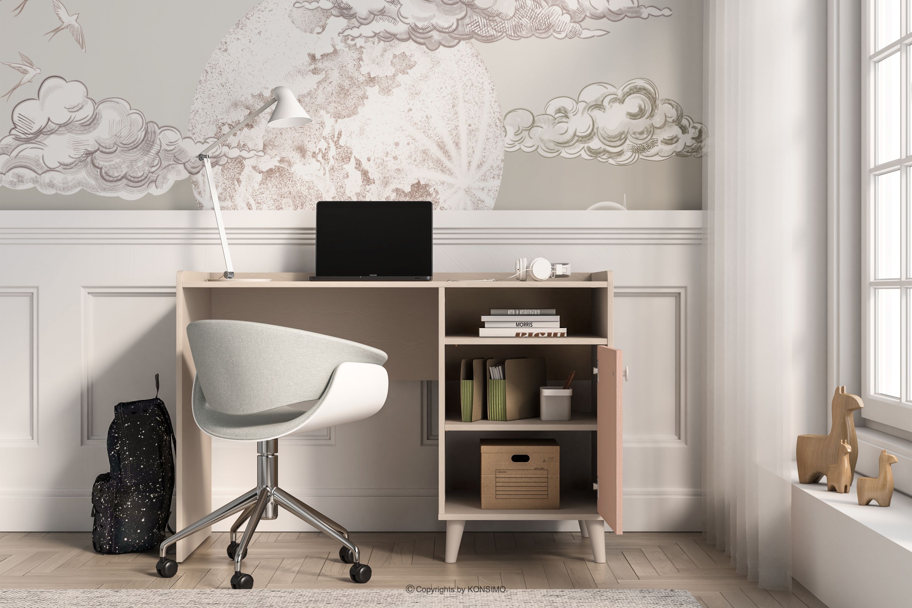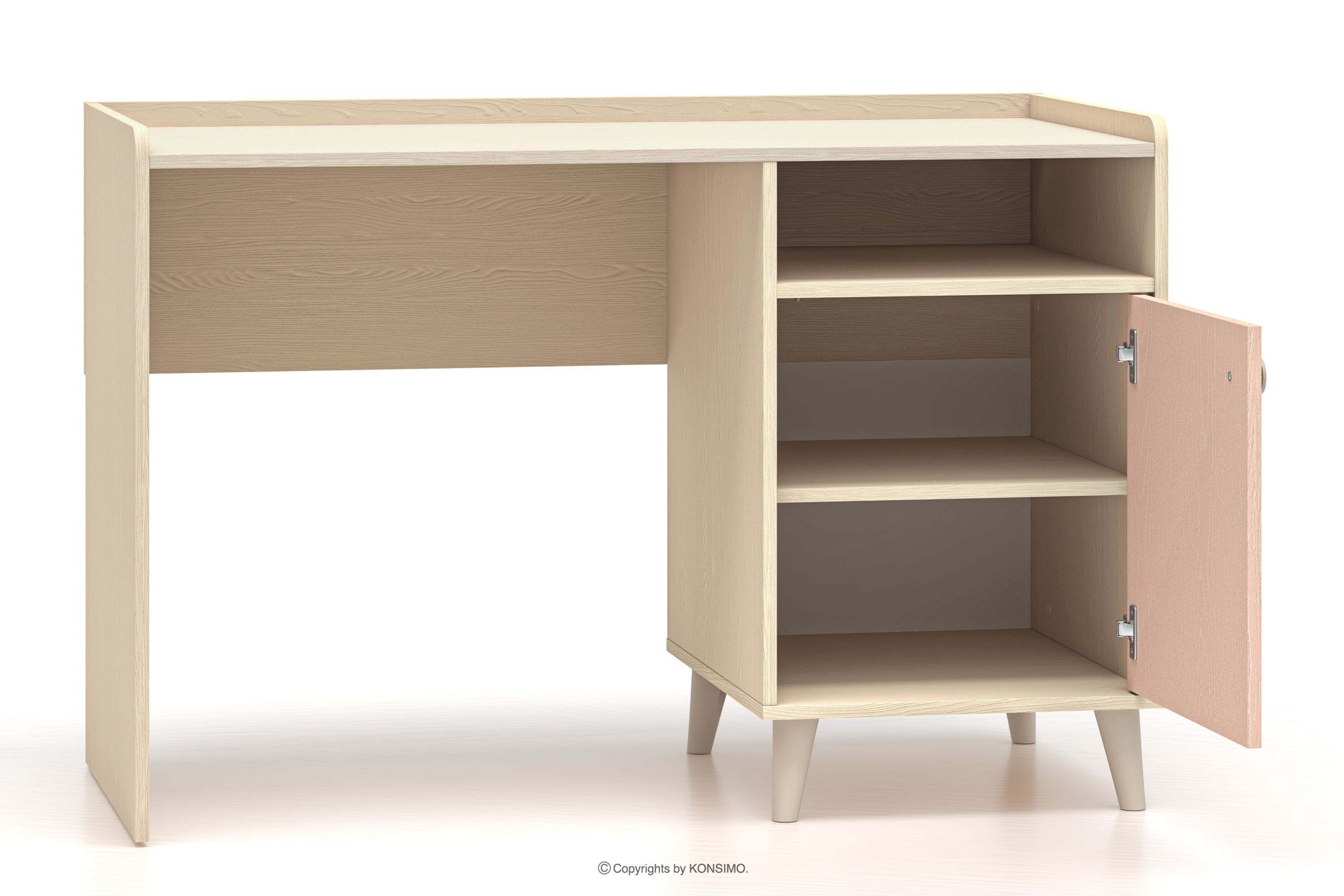 Písací stôl do detskej izby s policami ružovej/béžovej farby spája moderný dizajn s najvyššou kvalitou spracovania, čo zaručuje pohodlie a bezpečnosť pri používaní. Vďaka pevným materiálom a prepracovaným detailom je nábytok odolný, funkčný a dokonale prispôsobený potrebám najmenších používateľov. Jemné pastelové farby dodávajú interiéru priateľský, harmonický charakter, vhodný na hranie aj odpočinok.