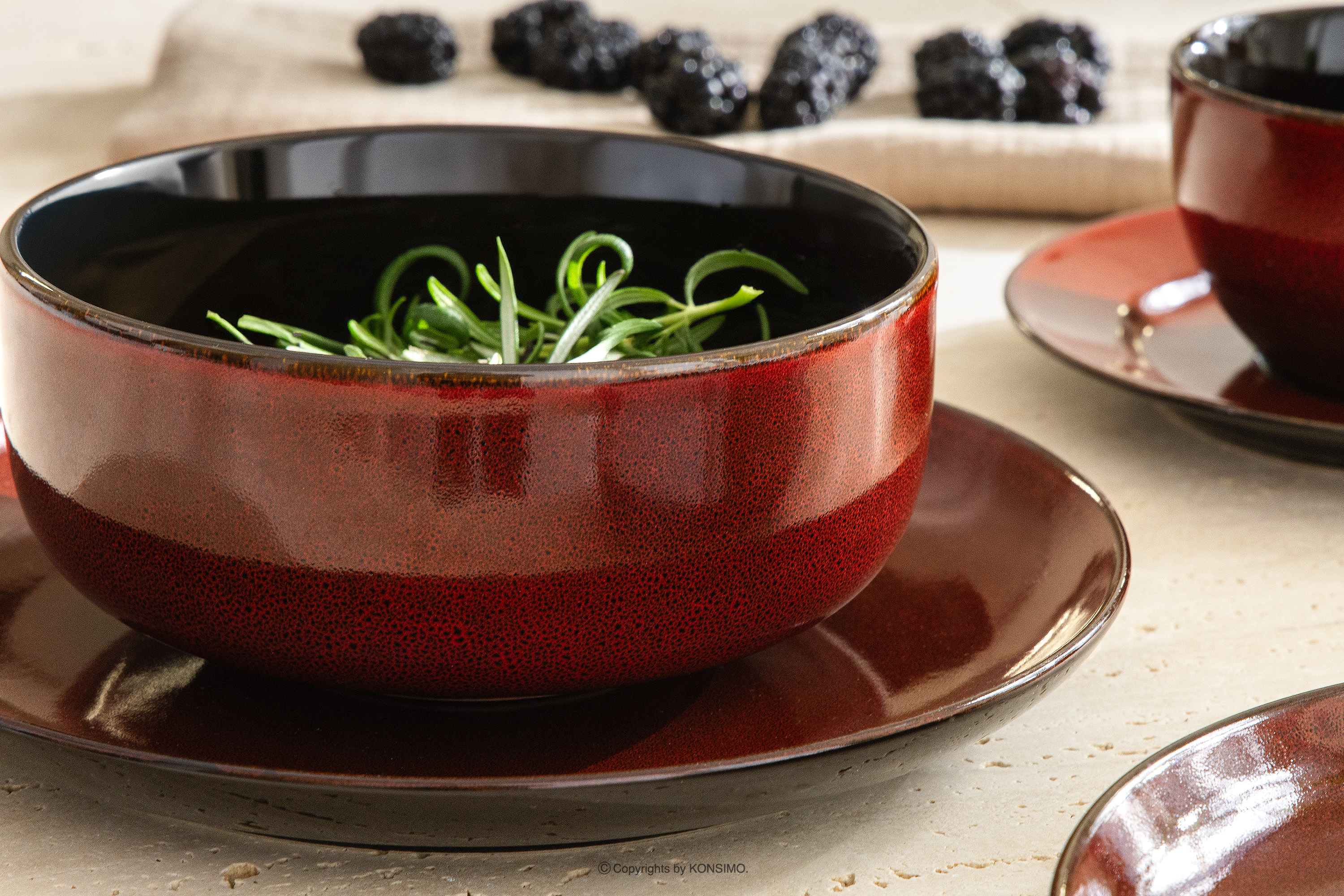 GAMBIA Objav celú kolekciu Veľká miska keramická / reaktívna glazúra červený/čierny lesk 6 ks.- farba červený/čierny lesk