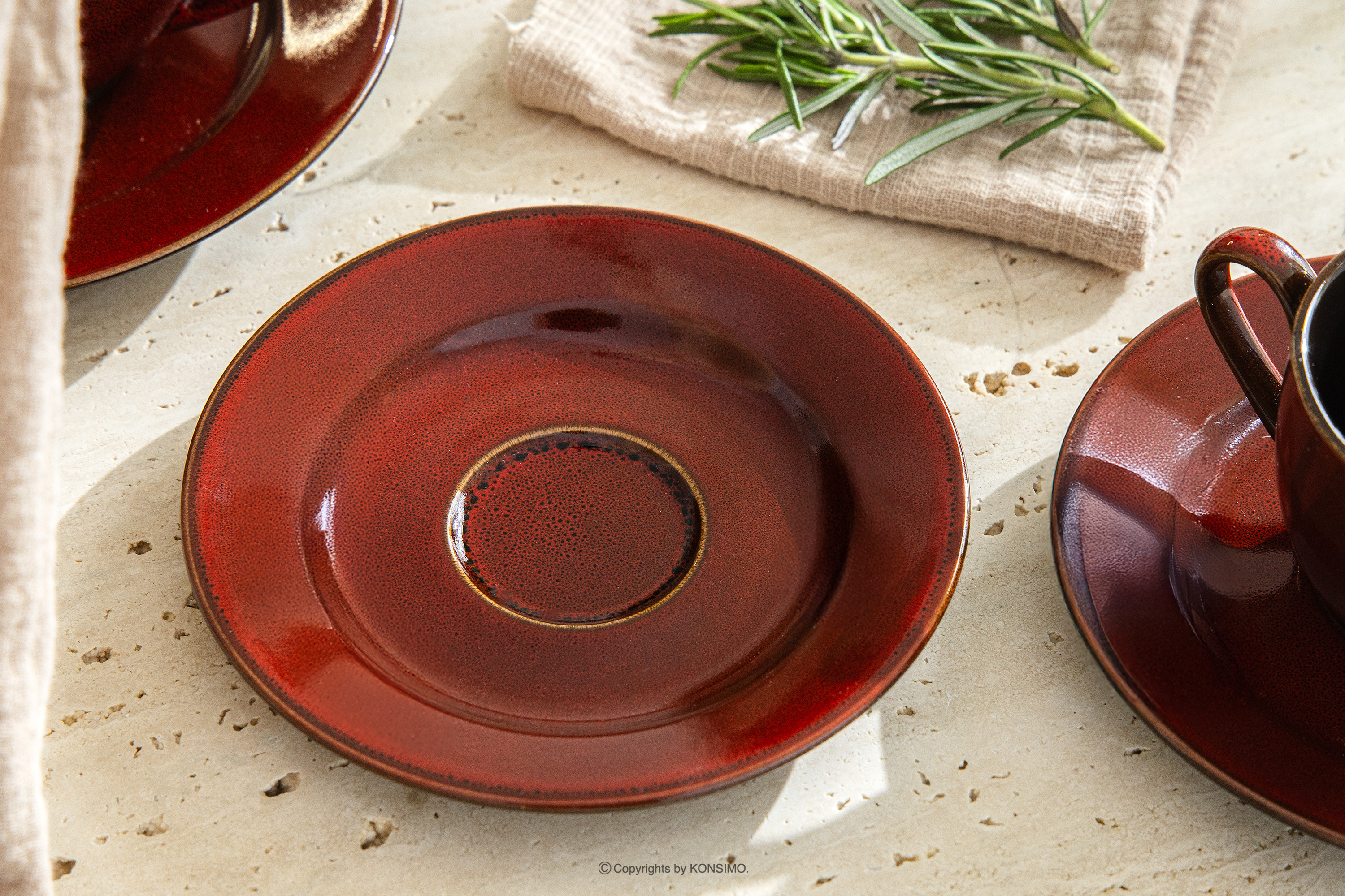 GAMBIA Kávová souprava espresso keramická / reaktívna glazúra červený/čierny lesk 6 osob (18 ks.)